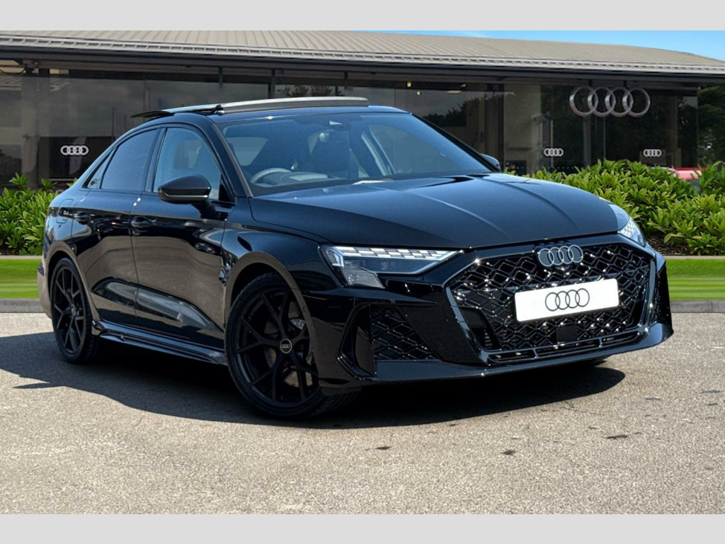 This vehicle will benefit from Manufacturer’s Warranty of 3-year warranty and 3 year’s roadside assistance at the point of purchase. Please contact Crewe Audi for more information or enquire online today. Technology Pack Pro, Fine Nappa Leather - RS Embossed Sports Seats - Honeycomb Pattern - Black with Micrommata Green Contrast Stitching, Audi Warranty 5 Years - 90000 Miles - Whichever Comes First, 12v Socket and Storage Compartment in Front Centre Console, 19in Alloy Wheels - 5-Y-Spoke-Matt Black, 3-Zone Deluxe Automatic Air Conditioning, 4-Way Lumbar Support for Front Seats, Airbags - Driver and Front Passenger with Passenger Airbag Deactivation, Ambient Lighting Package Pro, Anti Theft Locking Wheel Bolts, Anti-Theft Alarm, Audi App Store and Smartphone Interface, Audi Beam, Audi Connect Navigation and Infotainment Services Plus - 3 Year Subscription, Audi Drive Select, Audi Phone Box with Wireless Charging, Audi Pre-Sense Front, Audi Virtual Cockpit with RS Specific Design and 12.3in Display, Auto Dimming and Frameless Rear View Mirror, Automatic Start-Stop System with Recuperation, Black Styling Pack Plus, Camera Based Traffic Sign Recognition, Cloth Headlining in Black, Collision Avoidance Assistant, DAB Digital Radio, Distraction and Fatigue Warning, Door Mirrors - Electrically Adjustable - Heated - Folding - Automatically Dimming with Integrated LED Indicators and Kerb View Function for Passenger Side, Door Sill Trims with RS3 Logo, ESC - Electronic Stabilisation Control inc ABS - ASR and EDL, Electronically Operated Child Locks, Emergency Call - E-Call, First Aid Kit and Warning Triangle and 2 Safety Vests, Front Centre Armrest, Front Side Airbags with Head Airbags and Interaction Airbag, Front Sports Seats, Front and Rear Floor Mats, Gloss Black Tailgate Spoiler, Heated Front Seats, Hill Hold Assist, I-Size and Top Tether Child Seat Mounting for the Outer Rear Seats, Inlays - Dynamica Microfibre - Black, Interior Accents in Vanadium Look, LED Headlights with LED Rear Lights and Dynamic Rear Indicators, Lane Departure Warning, Light and Rain Sensor, MMI Navigation Plus with High Resolution 10.1in Touchscreen Colour Display, Manual Boot Compartment Lid, Model Badging - Exterior, Parking Assist with Parking System Plus, Pedals in Stainless Steel and Footrest in Black, Privacy Glass, Progressive Steering, RS Exterior Styling, RS Sport Exhaust System, RS Sports Suspension, RS Steel Brakes with Black Calipers with RS Logo, Remote Central Locking with Safelock, Seat Belt Monitoring, Speed Limiter - Adjustable, Split Folding Rear Seat Bench - 60-40 or Fully, Steering Wheel - Flat Top and Bottomed 3-Spoke Black Leather Multifunction with Shift Paddles in Vanadium Look - Rhombus RS Logo, Storage Package, Technology Pack, Tool Kit, Tyre Pressure Loss Indicator, Tyre Repair Kit, USB Ports with Charging Function in Rear