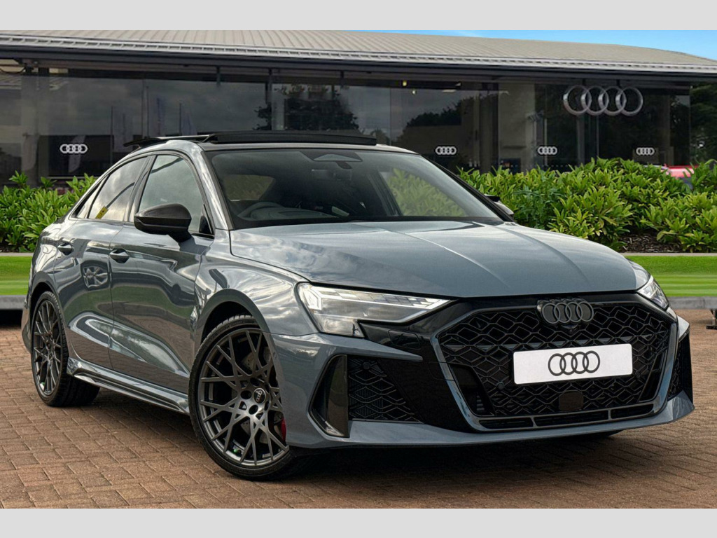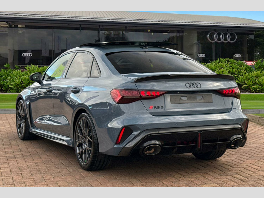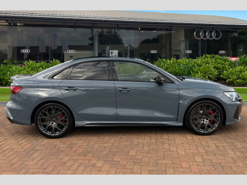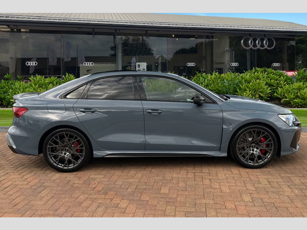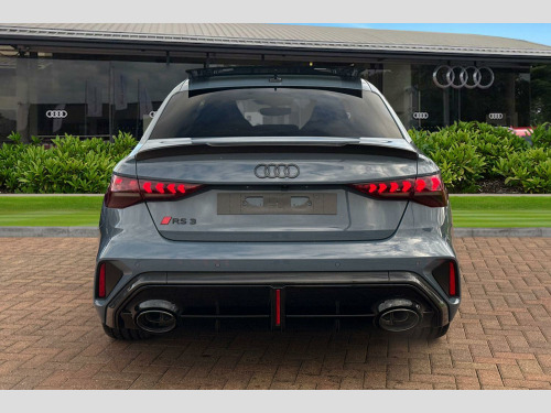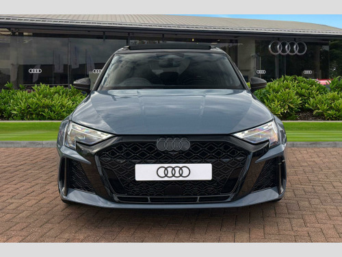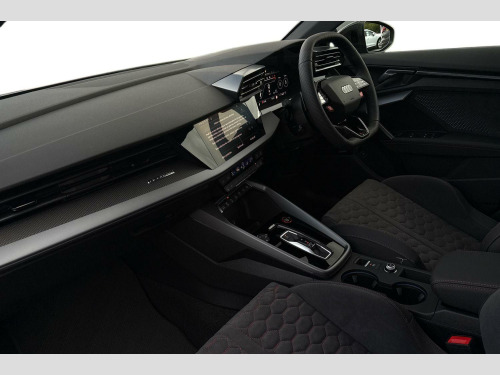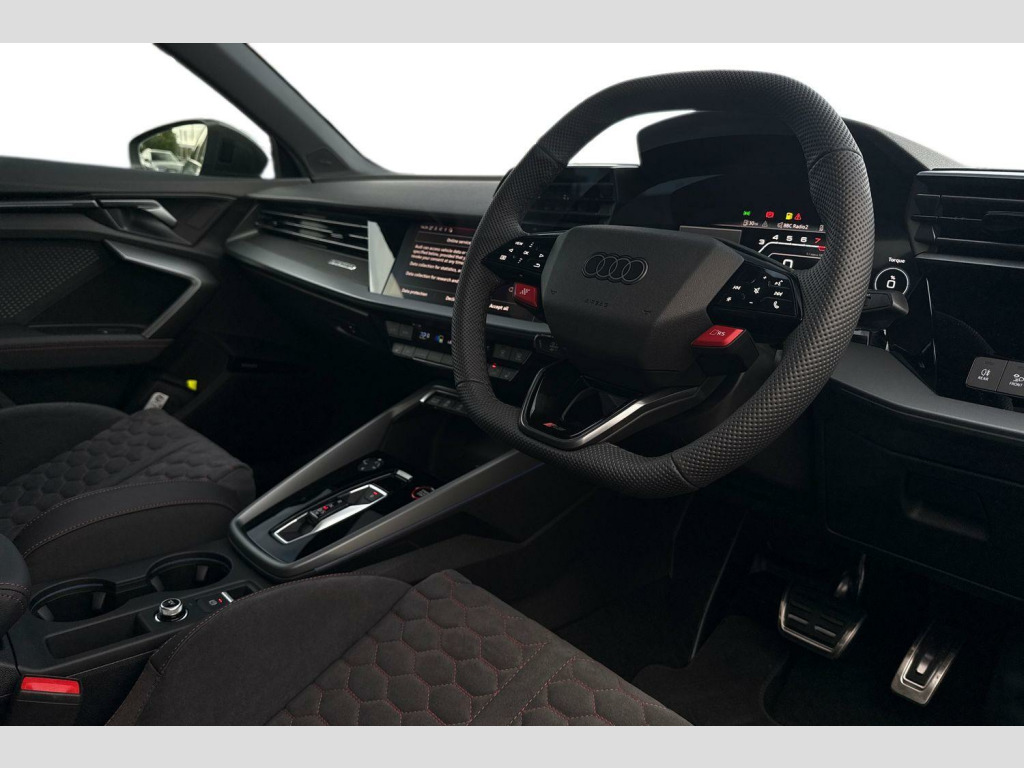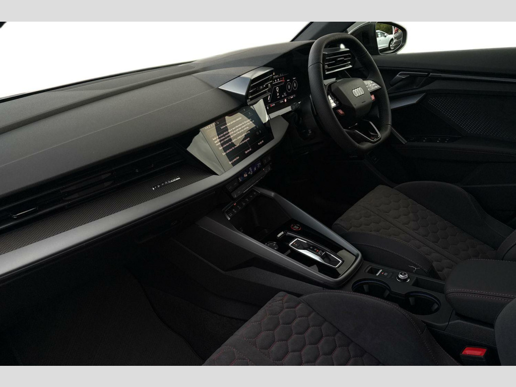 Dinamica Microfibre-Leather - RS Bucket Seats - Honeycomb Pattern - Black with Express Red Contrast Stitching, Brake Calipers - Red, 12v Socket and Storage Compartment in Front Centre Console, 19in Alloy Wheels - 10-Cross-Spoke Black Metallic, 3-Zone Deluxe Automatic Air Conditioning, 4-Way Lumbar Support for Front Seats, Adaptive Suspension with Audi Drive Select, Airbags - Driver and Front Passenger with Passenger Airbag Deactivation, Ambient Lighting Package Pro, Anti Theft Locking Wheel Bolts, Anti-Theft Alarm, Audi App Store and Smartphone Interface, Audi Beam, Audi Connect Navigation and Infotainment Services Plus (3 Year Subscription From New), Audi Phone Box with Wireless Charging, Audi Pre-Sense Front, Audi Virtual Cockpit with RS Specific Design and 12.3in Display, Auto Dimming and Frameless Rear View Mirror, Automatic Start-Stop System with Recuperation, Black Styling Pack Plus, Camera Based Traffic Sign Recognition, Carbon Door Mirrors, Carbon Tailgate Spoiler, Cloth Headlining in Black, Collision Avoidance Assistant, DAB Digital Radio, Distraction and Fatigue Warning, Door Mirrors - Electrically Adjustable - Heated - Folding - Automatically Dimming with Memory Function and Integrated LED Indicators with Kerb View Function for Passenger Side, Door Sill Trims with RS3 Logo, ESC - Electronic Stabilisation Control inc ABS - ASR and EDL, Electrically Adjustable Front Seats with Memory Function for Drivers Side, Electronically Operated Child Locks, Emergency Call - E-Call, Engine Compartment Cover with Carbon Trim, First Aid Kit and Warning Triangle and 2 Safety Vests, Front Centre Armrest, Front Side Airbags with Head Airbags and Interaction Airbag, Front Sports Seats, Front and Rear Floor Mats, Heated Front Seats, Hill Hold Assist, I-Size and Top Tether Child Seat Mounting for the Outer Rear Seats, Inlays - Carbon Atlas Structure, Interior Accents in Vanadium Look, Lane Departure Warning, Light and Rain Sensor, MMI Navigation Plus with High Resolution 10.1in Touchscreen Colour Display, Manual Boot Compartment Lid, Model Badging - Exterior, Panoramic Sunroof, Parking Assist with Parking System Plus, Pedals in Stainless Steel and Footrest in Black, Privacy Glass, Progressive Steering, RS Exterior Features in Carbon - Gloss Black, RS Sport Exhaust System, RS Steel Brakes with Black Calipers with RS Logo, Remote Central Locking with Safelock, Seat Belt Monitoring, Speed Limiter - Adjustable, Split Folding Rear Seat Bench - 60-40 or Fully, Steering Wheel - Flat Top and Bottomed 3-Spoke Black Leather Multifunction with Shift Paddles in Vanadium Look - Rhombus RS Logo, Storage Package, Technology Pack, Technology Pack Pro, Tool Kit, Top Speed Restriction Increase to 174mph, Tyre Pressure Loss Indicator, Tyre Repair Kit, USB Ports with Charging Function in Rear