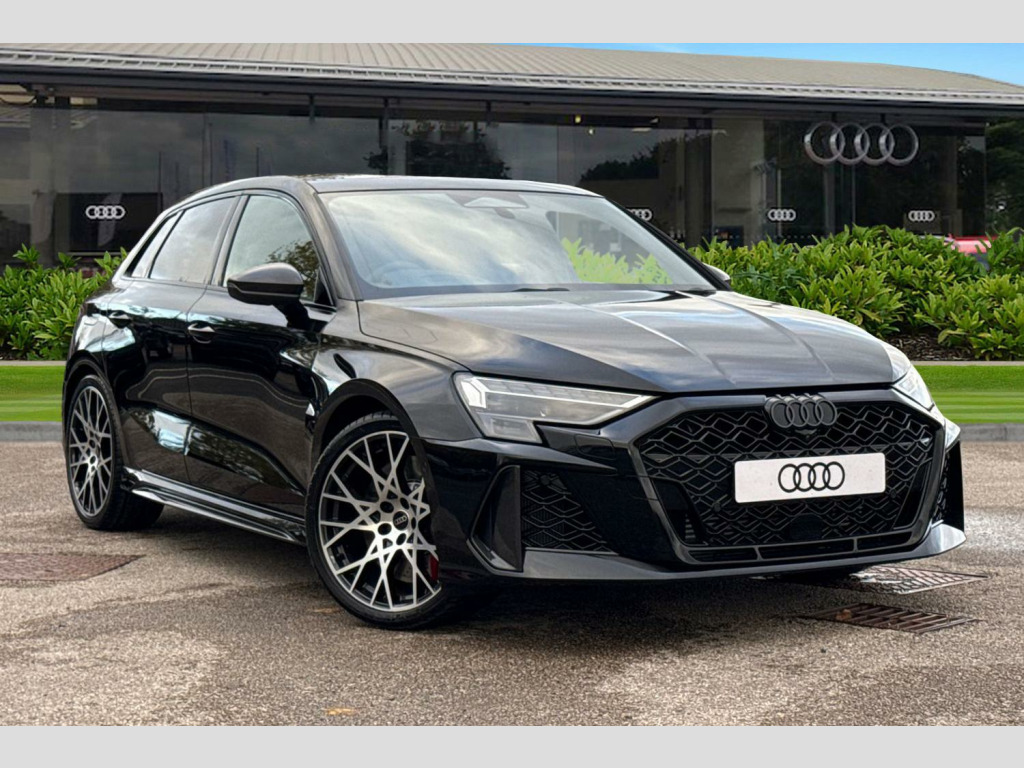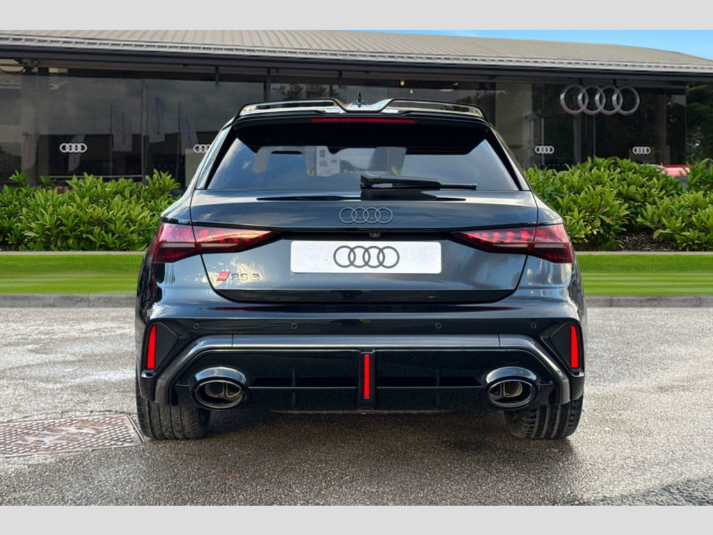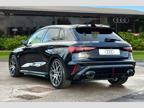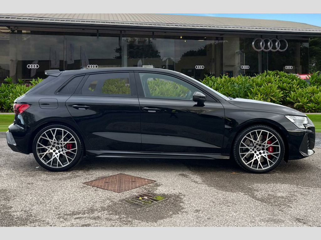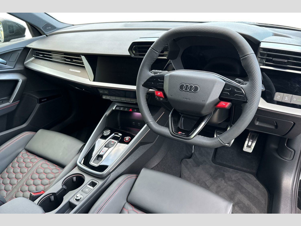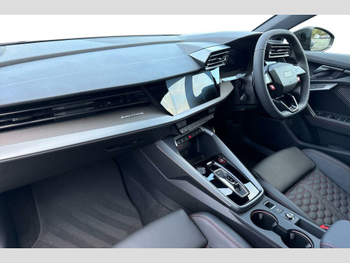 12v Socket and Storage Compartment in Front Centre Console, 19in Alloy Wheels - 10-Cross-Spoke Black Metallic, 3-Zone Deluxe Automatic Air Conditioning, 4-Way Lumbar Support for Front Seats, Adaptive Suspension with Audi Drive Select, Airbags - Driver and Front Passenger with Passenger Airbag Deactivation, Ambient Lighting Package Pro, Anti Theft Locking Wheel Bolts, Anti-Theft Alarm, Audi App Store and Smartphone Interface, Audi Beam, Audi Connect Navigation and Infotainment Services Plus (3 Year Subscription From New), Audi Phone Box with Wireless Charging, Audi Pre-Sense Front, Audi Virtual Cockpit with RS Specific Design and 12.3in Display, Auto Dimming and Frameless Rear View Mirror, Automatic Start-Stop System with Recuperation, Black Styling Pack Plus, Camera Based Traffic Sign Recognition, Carbon Door Mirrors, Carbon Roof Spoiler, Cloth Headlining in Black, Collision Avoidance Assistant, DAB Digital Radio, Distraction and Fatigue Warning, Door Mirrors - Electrically Adjustable - Heated - Folding - Automatically Dimming with Memory Function and Integrated LED Indicators with Kerb View Function for Passenger Side, Door Sill Trims with RS3 Logo, ESC - Electronic Stabilisation Control inc ABS - ASR and EDL, Electrically Adjustable Front Seats with Memory Function for Drivers Side, Electronically Operated Child Locks, Emergency Call - E-Call, Engine Compartment Cover with Carbon Trim, First Aid Kit and Warning Triangle and 2 Safety Vests, Front Centre Armrest, Front Side Airbags with Head Airbags and Interaction Airbag, Front Sports Seats, Front and Rear Floor Mats, Heated Front Seats, Hill Hold Assist, I-Size and Top Tether Child Seat Mounting for the Outer Rear Seats, Inlays - Carbon Atlas Structure, Interior Accents in Vanadium Look, Lane Departure Warning, Light and Rain Sensor, MMI Navigation Plus with High Resolution 10.1in Touchscreen Colour Display, Manual Boot Compartment Lid, Model Badging - Exterior, Panoramic Sunroof, Parking Assist with Parking System Plus, Pedals in Stainless Steel and Footrest in Black, Privacy Glass, Progressive Steering, RS Exterior Features in Carbon - Gloss Black, RS Sport Exhaust System, RS Steel Brakes with Black Calipers with RS Logo, Remote Central Locking with Safelock, Seat Belt Monitoring, Speed Limiter - Adjustable, Split Folding Rear Seat Bench - 60-40 or Fully, Steering Wheel - Flat Top and Bottomed 3-Spoke Black Leather Multifunction with Shift Paddles in Vanadium Look - Rhombus RS Logo, Storage Package, Technology Pack, Technology Pack Pro, Tool Kit, Top Speed Restriction Increase to 174mph, Tyre Pressure Loss Indicator, Tyre Repair Kit, USB Ports with Charging Function in Rear, Attention and Fatigue Detection, Audi Phone Box Light with Wireless Charging, Door Mirrors - Electrically Adjustable - Heated - Folding - Automatically Dimming with Integrated LED Indicators and Kerb View Function for Passenger Side, Intersection Assist, Rear View Camera, RS Steel Brakes with Black Calipers with RS Logo on the Front Calipers