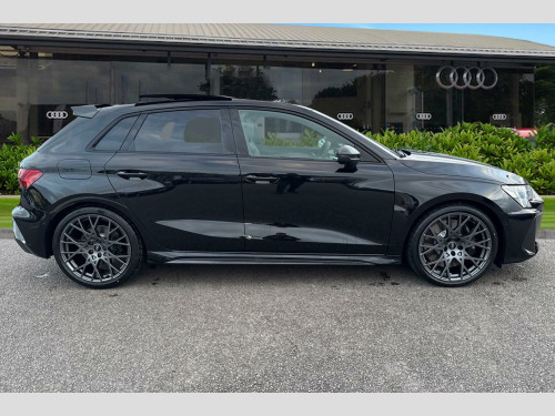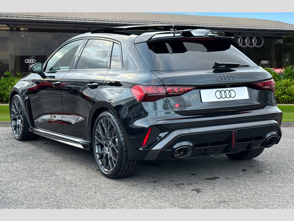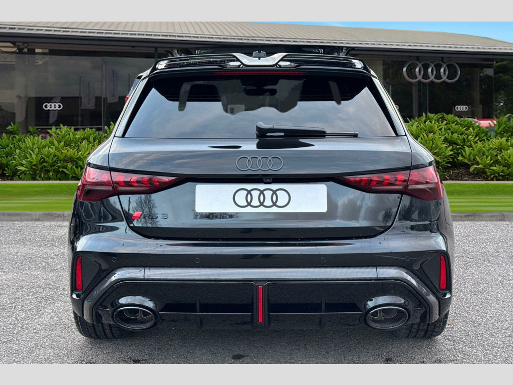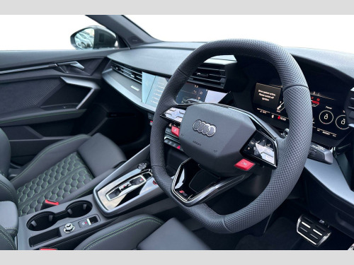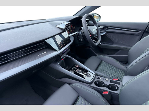 19in Alloy Wheels - 10-Cross-Spoke Silk Matt Grey, Fine Nappa Leather - RS Embossed Sports Seats - Honeycomb Pattern - Black with Micrommata Green Contrast Stitching, 12v Socket and Storage Compartment in Front Centre Console, 19in Alloy Wheels - 10-Cross-Spoke Black Metallic, 3-Zone Deluxe Automatic Air Conditioning, 4-Way Lumbar Support for Front Seats, Adaptive Suspension with Audi Drive Select, Airbags - Driver and Front Passenger with Passenger Airbag Deactivation, Ambient Lighting Package Pro, Anti Theft Locking Wheel Bolts, Anti-Theft Alarm, Audi App Store and Smartphone Interface, Audi Beam, Audi Connect Navigation and Infotainment Services Plus (3 Year Subscription From New), Audi Phone Box with Wireless Charging, Audi Pre-Sense Front, Audi Virtual Cockpit with RS Specific Design and 12.3in Display, Auto Dimming and Frameless Rear View Mirror, Automatic Start-Stop System with Recuperation, Black Styling Pack Plus, Camera Based Traffic Sign Recognition, Carbon Door Mirrors, Carbon Roof Spoiler, Cloth Headlining in Black, Collision Avoidance Assistant, DAB Digital Radio, Distraction and Fatigue Warning, Door Mirrors - Electrically Adjustable - Heated - Folding - Automatically Dimming with Memory Function and Integrated LED Indicators with Kerb View Function for Passenger Side, Door Sill Trims with RS3 Logo, ESC - Electronic Stabilisation Control inc ABS - ASR and EDL, Electrically Adjustable Front Seats with Memory Function for Drivers Side, Electronically Operated Child Locks, Emergency Call - E-Call, Engine Compartment Cover with Carbon Trim, First Aid Kit and Warning Triangle and 2 Safety Vests, Front Centre Armrest, Front Side Airbags with Head Airbags and Interaction Airbag, Front Sports Seats, Front and Rear Floor Mats, Heated Front Seats, Hill Hold Assist, I-Size and Top Tether Child Seat Mounting for the Outer Rear Seats, Inlays - Carbon Atlas Structure, Interior Accents in Vanadium Look, Lane Departure Warning, Light and Rain Sensor, MMI Navigation Plus with High Resolution 10.1in Touchscreen Colour Display, Manual Boot Compartment Lid, Model Badging - Exterior, Panoramic Sunroof, Parking Assist with Parking System Plus, Pedals in Stainless Steel and Footrest in Black, Privacy Glass, Progressive Steering, RS Exterior Features in Carbon - Gloss Black, RS Sport Exhaust System, RS Steel Brakes with Black Calipers with RS Logo, Remote Central Locking with Safelock, Seat Belt Monitoring, Speed Limiter - Adjustable, Split Folding Rear Seat Bench - 60-40 or Fully, Steering Wheel - Flat Top and Bottomed 3-Spoke Black Leather Multifunction with Shift Paddles in Vanadium Look - Rhombus RS Logo, Storage Package, Technology Pack, Technology Pack Pro, Tool Kit, Top Speed Restriction Increase to 174mph, Tyre Pressure Loss Indicator, Tyre Repair Kit, USB Ports with Charging Function in Rear