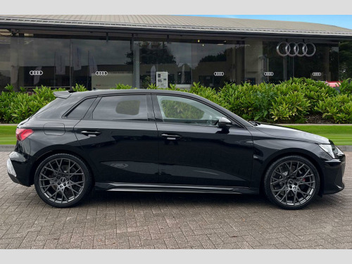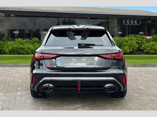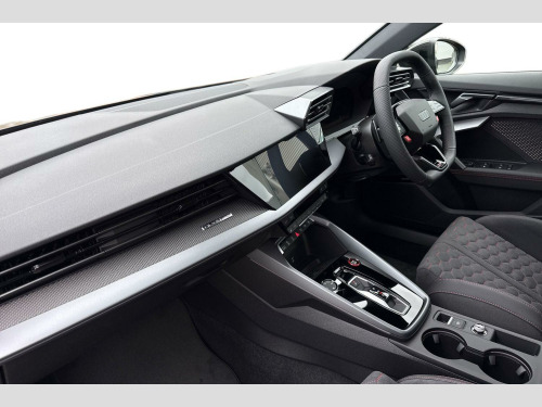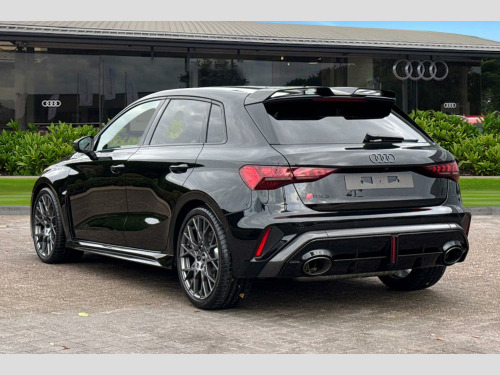 Price shown includes a deposit contribution of £3475 when purchased on finance by 31/12/25. Solutions Personal Contract Plan. 8.9% APR Representative. Audi Financial Services. Terms and Conditions apply. 19in Alloy Wheels - 10-Cross-Spoke Silk Matt Grey, Dinamica Microfibre-Leather - RS Bucket Seats - Honeycomb Pattern - Black with Express Red Contrast Stitching, 12v Socket and Storage Compartment in Front Centre Console, 19in Alloy Wheels - 10-Cross-Spoke Black Metallic, 3-Zone Deluxe Automatic Air Conditioning, 4-Way Lumbar Support for Front Seats, Adaptive Suspension with Audi Drive Select, Airbags - Driver and Front Passenger with Passenger Airbag Deactivation, Ambient Lighting Package Pro, Anti Theft Locking Wheel Bolts, Anti-Theft Alarm, Audi App Store and Smartphone Interface, Audi Beam, Audi Connect Navigation and Infotainment Services Plus (3 Year Subscription From New), Audi Phone Box with Wireless Charging, Audi Pre-Sense Front, Audi Virtual Cockpit with RS Specific Design and 12.3in Display, Auto Dimming and Frameless Rear View Mirror, Automatic Start-Stop System with Recuperation, Black Styling Pack Plus, Camera Based Traffic Sign Recognition, Carbon Door Mirrors, Carbon Roof Spoiler, Cloth Headlining in Black, Collision Avoidance Assistant, DAB Digital Radio, Distraction and Fatigue Warning, Door Mirrors - Electrically Adjustable - Heated - Folding - Automatically Dimming with Memory Function and Integrated LED Indicators with Kerb View Function for Passenger Side, Door Sill Trims with RS3 Logo, ESC - Electronic Stabilisation Control inc ABS - ASR and EDL, Electrically Adjustable Front Seats with Memory Function for Drivers Side, Electronically Operated Child Locks, Emergency Call - E-Call, Engine Compartment Cover with Carbon Trim, First Aid Kit and Warning Triangle and 2 Safety Vests, Front Centre Armrest, Front Side Airbags with Head Airbags and Interaction Airbag, Front Sports Seats, Front and Rear Floor Mats, Heated Front Seats, Hill Hold Assist, I-Size and Top Tether Child Seat Mounting for the Outer Rear Seats, Inlays - Carbon Atlas Structure, Interior Accents in Vanadium Look, Lane Departure Warning, Light and Rain Sensor, MMI Navigation Plus with High Resolution 10.1in Touchscreen Colour Display, Manual Boot Compartment Lid, Model Badging - Exterior, Panoramic Sunroof, Parking Assist with Parking System Plus, Pedals in Stainless Steel and Footrest in Black, Privacy Glass, Progressive Steering, RS Exterior Features in Carbon - Gloss Black, RS Sport Exhaust System, RS Steel Brakes with Black Calipers with RS Logo, Remote Central Locking with Safelock, Seat Belt Monitoring, Speed Limiter - Adjustable, Split Folding Rear Seat Bench - 60-40 or Fully, Steering Wheel - Flat Top and Bottomed 3-Spoke Black Leather Multifunction with Shift Paddles in Vanadium Look - Rhombus RS Logo, Storage Package, Technology Pack, Technology Pack Pro, Tool Kit, Top Speed Restriction Increase to 174mph, Tyre Pressure Loss Indicator, Tyre Repair Kit, USB Ports with Charging Function in Rear