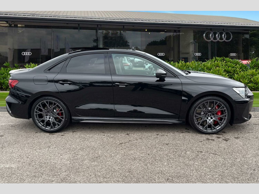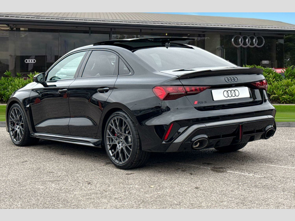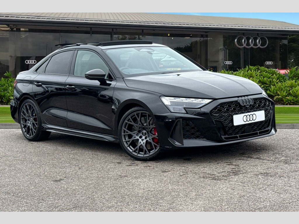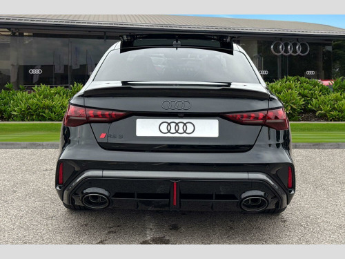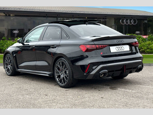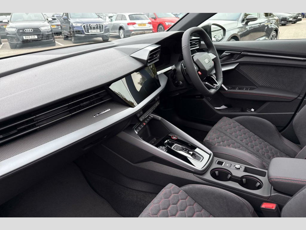 19in Alloy Wheels - 10-Cross-Spoke Silk Matt Grey, Brake Calipers - Red, Dinamica Microfibre-Leather - RS Bucket Seats - Honeycomb Pattern - Black with Express Red Contrast Stitching, 12v Socket and Storage Compartment in Front Centre Console, 19in Alloy Wheels - 10-Cross-Spoke Black Metallic, 3-Zone Deluxe Automatic Air Conditioning, 4-Way Lumbar Support for Front Seats, Adaptive Suspension with Audi Drive Select, Airbags - Driver and Front Passenger with Passenger Airbag Deactivation, Ambient Lighting Package Pro, Anti Theft Locking Wheel Bolts, Anti-Theft Alarm, Audi App Store and Smartphone Interface, Audi Beam, Audi Connect Navigation and Infotainment Services Plus (3 Year Subscription From New), Audi Phone Box with Wireless Charging, Audi Pre-Sense Front, Audi Virtual Cockpit with RS Specific Design and 12.3in Display, Auto Dimming and Frameless Rear View Mirror, Automatic Start-Stop System with Recuperation, Black Styling Pack Plus, Camera Based Traffic Sign Recognition, Carbon Door Mirrors, Carbon Tailgate Spoiler, Cloth Headlining in Black, Collision Avoidance Assistant, DAB Digital Radio, Distraction and Fatigue Warning, Door Mirrors - Electrically Adjustable - Heated - Folding - Automatically Dimming with Memory Function and Integrated LED Indicators with Kerb View Function for Passenger Side, Door Sill Trims with RS3 Logo, ESC - Electronic Stabilisation Control inc ABS - ASR and EDL, Electrically Adjustable Front Seats with Memory Function for Drivers Side, Electronically Operated Child Locks, Emergency Call - E-Call, Engine Compartment Cover with Carbon Trim, First Aid Kit and Warning Triangle and 2 Safety Vests, Front Centre Armrest, Front Side Airbags with Head Airbags and Interaction Airbag, Front Sports Seats, Front and Rear Floor Mats, Heated Front Seats, Hill Hold Assist, I-Size and Top Tether Child Seat Mounting for the Outer Rear Seats, Inlays - Carbon Atlas Structure, Interior Accents in Vanadium Look, Lane Departure Warning, Light and Rain Sensor, MMI Navigation Plus with High Resolution 10.1in Touchscreen Colour Display, Manual Boot Compartment Lid, Model Badging - Exterior, Panoramic Sunroof, Parking Assist with Parking System Plus, Pedals in Stainless Steel and Footrest in Black, Privacy Glass, Progressive Steering, RS Exterior Features in Carbon - Gloss Black, RS Sport Exhaust System, RS Steel Brakes with Black Calipers with RS Logo, Remote Central Locking with Safelock, Seat Belt Monitoring, Speed Limiter - Adjustable, Split Folding Rear Seat Bench - 60-40 or Fully, Steering Wheel - Flat Top and Bottomed 3-Spoke Black Leather Multifunction with Shift Paddles in Vanadium Look - Rhombus RS Logo, Storage Package, Technology Pack, Technology Pack Pro, Tool Kit, Top Speed Restriction Increase to 174mph, Tyre Pressure Loss Indicator, Tyre Repair Kit, USB Ports with Charging Function in Rear