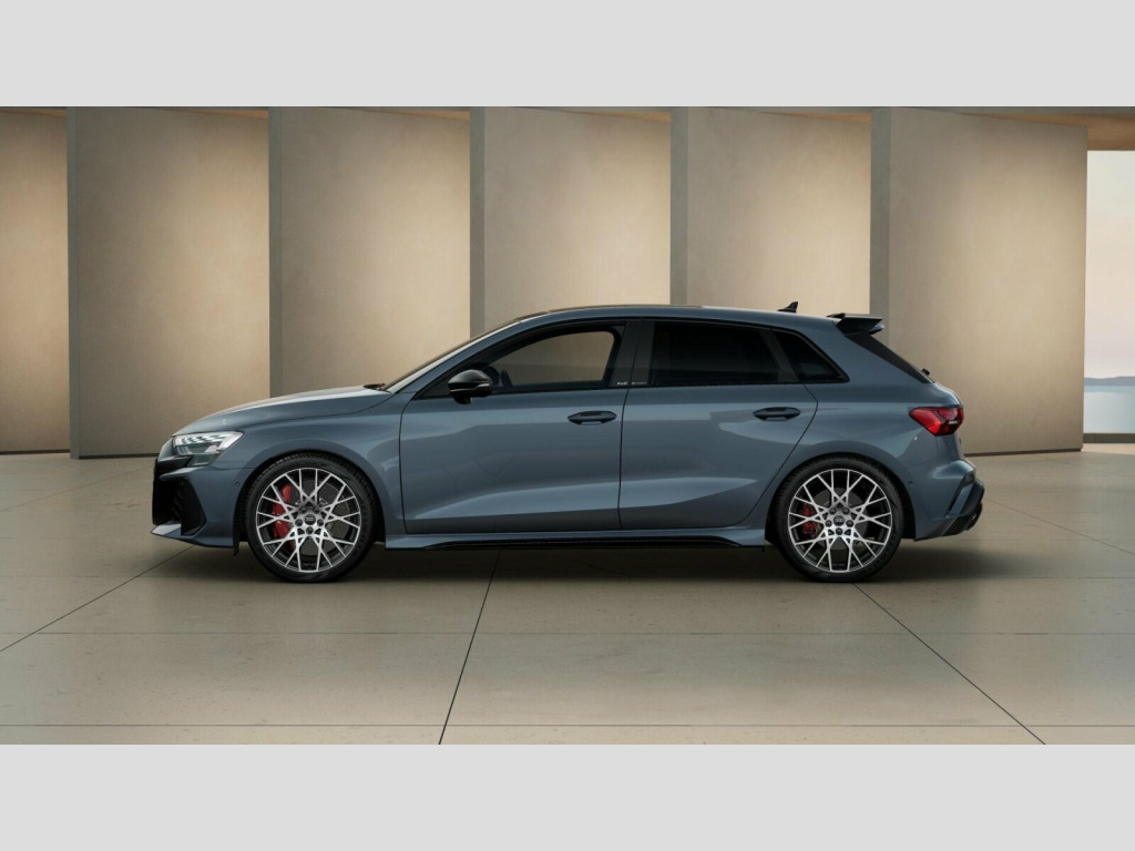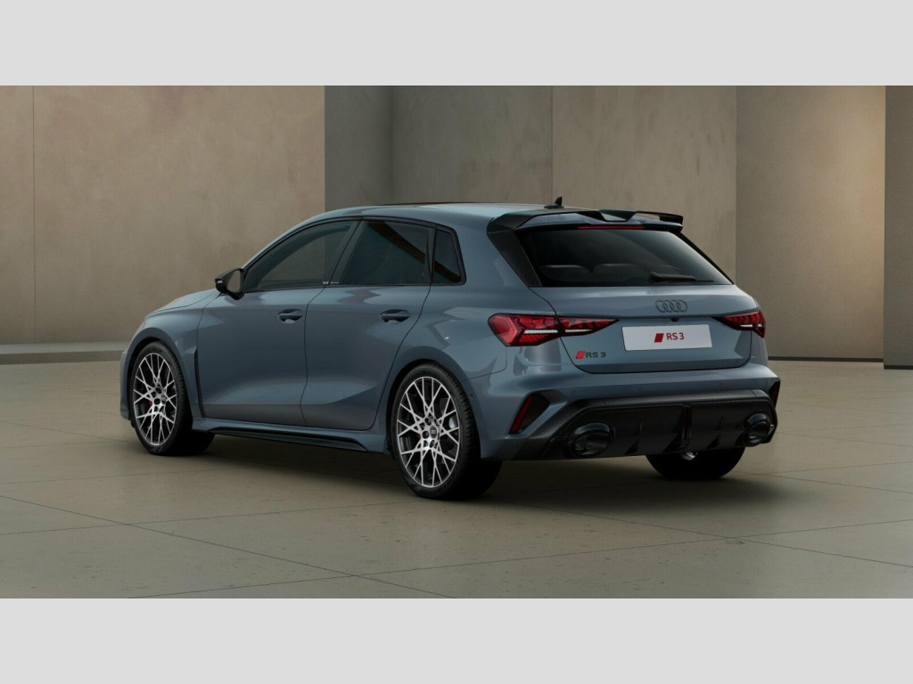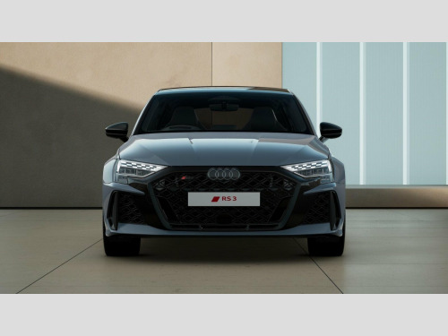 Price shown includes a deposit contribution of £3475 when purchased on finance by 31/12/25. Solutions Personal Contract Plan. 8.9% APR Representative. Audi Financial Services. Terms and Conditions apply. Brake Calipers - Red, Dinamica Microfibre-Leather - RS Bucket Seats - Honeycomb Pattern - Black with Express Red Contrast Stitching, 12v Socket and Storage Compartment in Front Centre Console, 19in Alloy Wheels - 10-Cross-Spoke Black Metallic, 3-Zone Deluxe Automatic Air Conditioning, 4-Way Lumbar Support for Front Seats, Adaptive Suspension with Audi Drive Select, Airbags - Driver and Front Passenger with Passenger Airbag Deactivation, Ambient Lighting Package Pro, Anti Theft Locking Wheel Bolts, Anti-Theft Alarm, Audi App Store and Smartphone Interface, Audi Beam, Audi Connect Navigation and Infotainment Services Plus (3 Year Subscription From New), Audi Phone Box with Wireless Charging, Audi Pre-Sense Front, Audi Virtual Cockpit with RS Specific Design and 12.3in Display, Auto Dimming and Frameless Rear View Mirror, Automatic Start-Stop System with Recuperation, Black Styling Pack Plus, Camera Based Traffic Sign Recognition, Carbon Door Mirrors, Carbon Roof Spoiler, Cloth Headlining in Black, Collision Avoidance Assistant, DAB Digital Radio, Distraction and Fatigue Warning, Door Mirrors - Electrically Adjustable - Heated - Folding - Automatically Dimming with Memory Function and Integrated LED Indicators with Kerb View Function for Passenger Side, Door Sill Trims with RS3 Logo, ESC - Electronic Stabilisation Control inc ABS - ASR and EDL, Electrically Adjustable Front Seats with Memory Function for Drivers Side, Electronically Operated Child Locks, Emergency Call - E-Call, Engine Compartment Cover with Carbon Trim, First Aid Kit and Warning Triangle and 2 Safety Vests, Front Centre Armrest, Front Side Airbags with Head Airbags and Interaction Airbag, Front Sports Seats, Front and Rear Floor Mats, Heated Front Seats, Hill Hold Assist, I-Size and Top Tether Child Seat Mounting for the Outer Rear Seats, Inlays - Carbon Atlas Structure, Interior Accents in Vanadium Look, Lane Departure Warning, Light and Rain Sensor, MMI Navigation Plus with High Resolution 10.1in Touchscreen Colour Display, Manual Boot Compartment Lid, Model Badging - Exterior, Panoramic Sunroof, Parking Assist with Parking System Plus, Pedals in Stainless Steel and Footrest in Black, Privacy Glass, Progressive Steering, RS Exterior Features in Carbon - Gloss Black, RS Sport Exhaust System, RS Steel Brakes with Black Calipers with RS Logo, Remote Central Locking with Safelock, Seat Belt Monitoring, Speed Limiter - Adjustable, Split Folding Rear Seat Bench - 60-40 or Fully, Steering Wheel - Flat Top and Bottomed 3-Spoke Black Leather Multifunction with Shift Paddles in Vanadium Look - Rhombus RS Logo, Storage Package, Technology Pack, Technology Pack Pro, Tool Kit, Top Speed Restriction Increase to 174mph, Tyre Pressure Loss Indicator, Tyre Repair Kit, USB Ports with Charging Function in Rear