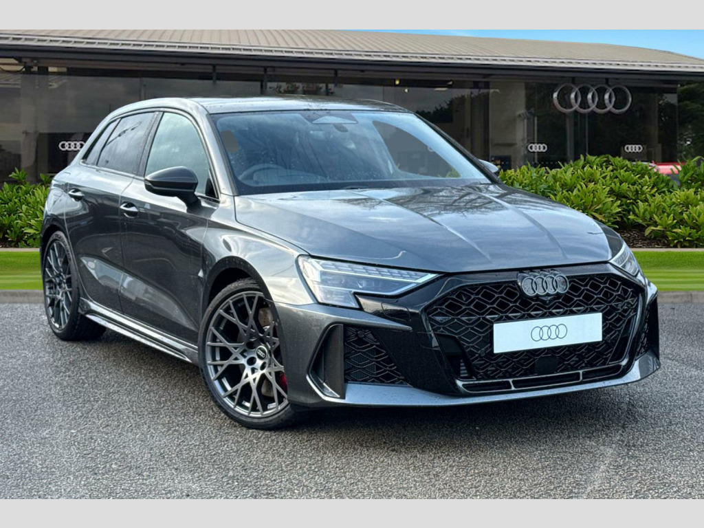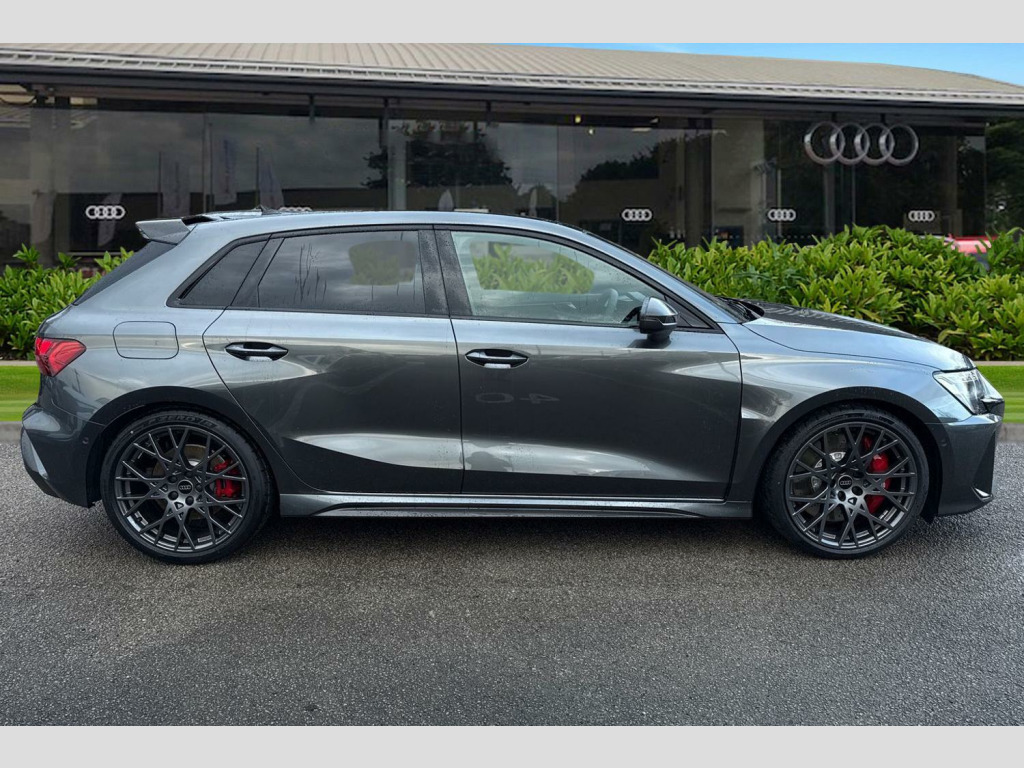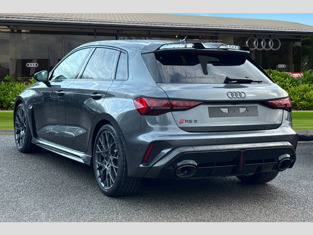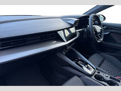Brake Calipers - Red, Technology Pack Pro, 12v Socket and Storage Compartment in Front Centre Console, 19in Alloy Wheels - 10-Cross-Spoke Silk Matt Grey, 3-Zone Deluxe Automatic Air Conditioning, 4-Way Lumbar Support for Front Seats, Airbags - Driver and Front Passenger with Passenger Airbag Deactivation, Ambient Lighting Package Pro, Anti Theft Locking Wheel Bolts, Anti-Theft Alarm, Audi App Store and Smartphone Interface, Audi Beam, Audi Connect Navigation and Infotainment Services Plus (3 Year Subscription From New), Audi Drive Select, Audi Matrix LED Headlights with LED Rear Lights - Dynamic Front and Rear Indicators - Headlight Cleaning System, Audi Phone Box with Wireless Charging, Audi Pre-Sense Front, Audi Virtual Cockpit with RS Specific Design and 12.3in Display, Auto Dimming and Frameless Rear View Mirror, Automatic Start-Stop System with Recuperation, Black Styling Pack Plus, Camera Based Traffic Sign Recognition, Carbon Door Mirrors, Carbon Roof Spoiler, Cloth Headlining in Black, Collision Avoidance Assistant, DAB Digital Radio, Distraction and Fatigue Warning, Door Mirrors - Electrically Adjustable - Heated - Folding - Automatically Dimming with Integrated LED Indicators and Kerb View Function for Passenger Side, Door Sill Trims with RS3 Logo, ESC - Electronic Stabilisation Control inc ABS - ASR and EDL, Electronically Operated Child Locks, Emergency Call - E-Call, Engine Compartment Cover with Carbon Trim, First Aid Kit and Warning Triangle and 2 Safety Vests, Front Centre Armrest, Front Side Airbags with Head Airbags and Interaction Airbag, Front Sports Seats, Front and Rear Floor Mats, Heated Front Seats, Hill Hold Assist, I-Size and Top Tether Child Seat Mounting for the Outer Rear Seats, Inlays - Carbon Atlas Structure, Interior Accents in Vanadium Look, Lane Departure Warning, Light and Rain Sensor, MMI Navigation Plus with High Resolution 10.1in Touchscreen Colour Display, Manual Boot Compartment Lid, Model Badging - Exterior, Parking Assist with Parking System Plus, Pedals in Stainless Steel and Footrest in Black, Privacy Glass, Progressive Steering, RS Exterior Features in Carbon - Gloss Black, RS Sport Exhaust System, RS Sports Suspension, RS Steel Brakes with Black Calipers with RS Logo, Remote Central Locking with Safelock, Seat Belt Monitoring, Speed Limiter - Adjustable, Split Folding Rear Seat Bench - 60-40 or Fully, Steering Wheel - Flat Top and Bottomed 3-Spoke Black Leather Multifunction with Shift Paddles in Vanadium Look - Rhombus RS Logo, Storage Package, Technology Pack, Tool Kit, Tyre Pressure Loss Indicator, Tyre Repair Kit, USB Ports with Charging Function in Rear