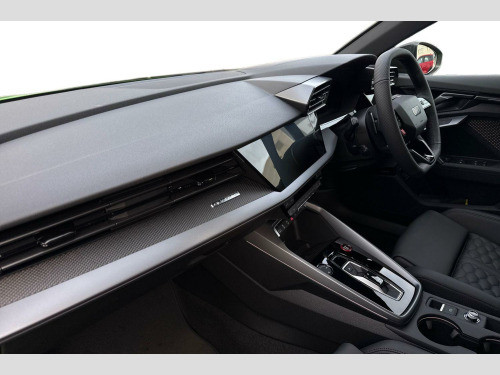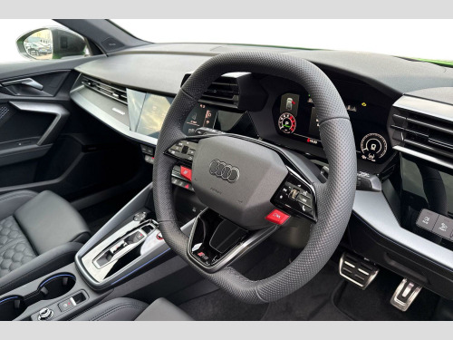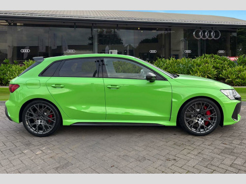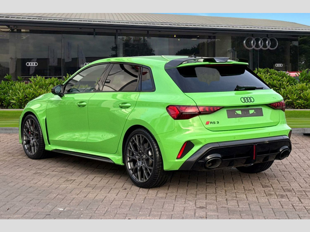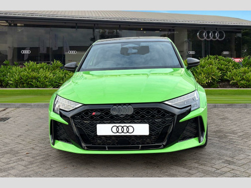 Price shown includes a deposit contribution of £4000 when purchased on finance by 31/03/26. Solutions Personal Contract Plan. 7.9% APR Representative. Audi Financial Services. Terms and Conditions apply. Brake Calipers - Red, Technology Pack Pro, 12v Socket and Storage Compartment in Front Centre Console, 19in Alloy Wheels - 10-Cross-Spoke Silk Matt Grey, 3-Zone Deluxe Automatic Air Conditioning, 4-Way Lumbar Support for Front Seats, Airbags - Driver and Front Passenger with Passenger Airbag Deactivation, Ambient Lighting Package Pro, Anti Theft Locking Wheel Bolts, Anti-Theft Alarm, Audi App Store and Smartphone Interface, Audi Beam, Audi Connect Navigation and Infotainment Services Plus (3 Year Subscription From New), Audi Drive Select, Audi Matrix LED Headlights with LED Rear Lights - Dynamic Front and Rear Indicators - Headlight Cleaning System, Audi Phone Box with Wireless Charging, Audi Pre-Sense Front, Audi Virtual Cockpit with RS Specific Design and 12.3in Display, Auto Dimming and Frameless Rear View Mirror, Automatic Start-Stop System with Recuperation, Black Styling Pack Plus, Camera Based Traffic Sign Recognition, Carbon Door Mirrors, Carbon Roof Spoiler, Cloth Headlining in Black, Collision Avoidance Assistant, DAB Digital Radio, Distraction and Fatigue Warning, Door Mirrors - Electrically Adjustable - Heated - Folding - Automatically Dimming with Integrated LED Indicators and Kerb View Function for Passenger Side, Door Sill Trims with RS3 Logo, ESC - Electronic Stabilisation Control inc ABS - ASR and EDL, Electronically Operated Child Locks, Emergency Call - E-Call, Engine Compartment Cover with Carbon Trim, First Aid Kit and Warning Triangle and 2 Safety Vests, Front Centre Armrest, Front Side Airbags with Head Airbags and Interaction Airbag, Front Sports Seats, Front and Rear Floor Mats, Heated Front Seats, Hill Hold Assist, I-Size and Top Tether Child Seat Mounting for the Outer Rear Seats, Inlays - Carbon Atlas Structure, Interior Accents in Vanadium Look, Lane Departure Warning, Light and Rain Sensor, MMI Navigation Plus with High Resolution 10.1in Touchscreen Colour Display, Manual Boot Compartment Lid, Model Badging - Exterior, Parking Assist with Parking System Plus, Pedals in Stainless Steel and Footrest in Black, Privacy Glass, Progressive Steering, RS Exterior Features in Carbon - Gloss Black, RS Sport Exhaust System, RS Sports Suspension, RS Steel Brakes with Black Calipers with RS Logo, Remote Central Locking with Safelock, Seat Belt Monitoring, Speed Limiter - Adjustable, Split Folding Rear Seat Bench - 60-40 or Fully, Steering Wheel - Flat Top and Bottomed 3-Spoke Black Leather Multifunction with Shift Paddles in Vanadium Look - Rhombus RS Logo, Storage Package, Technology Pack, Tool Kit, Tyre Pressure Loss Indicator, Tyre Repair Kit, USB Ports with Charging Function in Rear
