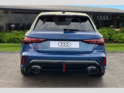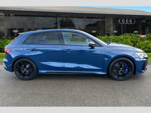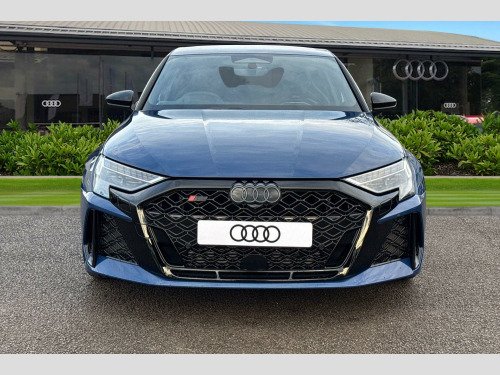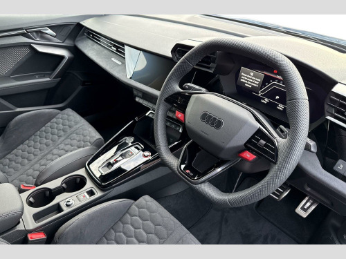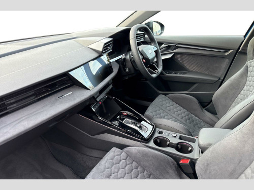 Dinamica Microfibre-Leather - RS Bucket Seats - Honeycomb Pattern - Black with Black Contrast Stitching, RS Ceramic Brakes with Brake Calipers in Blue, 12v Socket and Storage Compartment in Front Centre Console, 19in Alloy Wheels - 5-Y-Spoke-Matt Black, 3-Zone Deluxe Automatic Air Conditioning, 4-Way Lumbar Support for Front Seats, Airbags - Driver and Front Passenger with Passenger Airbag Deactivation, Ambient Lighting Package Pro, Anti Theft Locking Wheel Bolts, Anti-Theft Alarm, Audi App Store and Smartphone Interface, Audi Beam, Audi Connect Navigation and Infotainment Services Plus (3 Year Subscription From New), Audi Drive Select, Audi Phone Box with Wireless Charging, Audi Pre-Sense Front, Audi Virtual Cockpit with RS Specific Design and 12.3in Display, Auto Dimming and Frameless Rear View Mirror, Automatic Start-Stop System with Recuperation, Black Styling Pack Plus, Camera Based Traffic Sign Recognition, Cloth Headlining in Black, Collision Avoidance Assistant, DAB Digital Radio, Distraction and Fatigue Warning, Door Mirrors - Electrically Adjustable - Heated - Folding - Automatically Dimming with Integrated LED Indicators and Kerb View Function for Passenger Side, Door Sill Trims with RS3 Logo, ESC - Electronic Stabilisation Control inc ABS - ASR and EDL, Electronically Operated Child Locks, Emergency Call - E-Call, First Aid Kit and Warning Triangle and 2 Safety Vests, Front Centre Armrest, Front Side Airbags with Head Airbags and Interaction Airbag, Front Sports Seats, Front and Rear Floor Mats, Heated Front Seats, Hill Hold Assist, I-Size and Top Tether Child Seat Mounting for the Outer Rear Seats, Inlays - Dynamica Microfibre - Black, Interior Accents in Vanadium Look, LED Headlights with LED Rear Lights and Dynamic Rear Indicators, Lane Departure Warning, Light and Rain Sensor, MMI Navigation Plus with High Resolution 10.1in Touchscreen Colour Display, Manual Boot Compartment Lid, Model Badging - Exterior, Parking Assist with Parking System Plus, Pedals in Stainless Steel and Footrest in Black, Privacy Glass, Progressive Steering, RS Exterior Styling, RS Sport Exhaust System, RS Sports Suspension, RS Steel Brakes with Black Calipers with RS Logo, Remote Central Locking with Safelock, Roof Spoiler in Body Colour, Seat Belt Monitoring, Speed Limiter - Adjustable, Split Folding Rear Seat Bench - 60-40 or Fully, Steering Wheel - Flat Top and Bottomed 3-Spoke Black Leather Multifunction with Shift Paddles in Vanadium Look - Rhombus RS Logo, Storage Package, Technology Pack, Tool Kit, Tyre Pressure Loss Indicator, Tyre Repair Kit, USB Ports with Charging Function in Rear