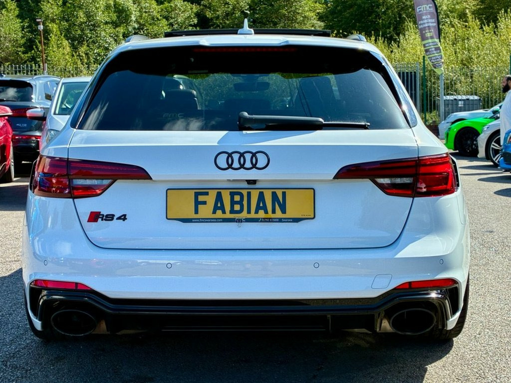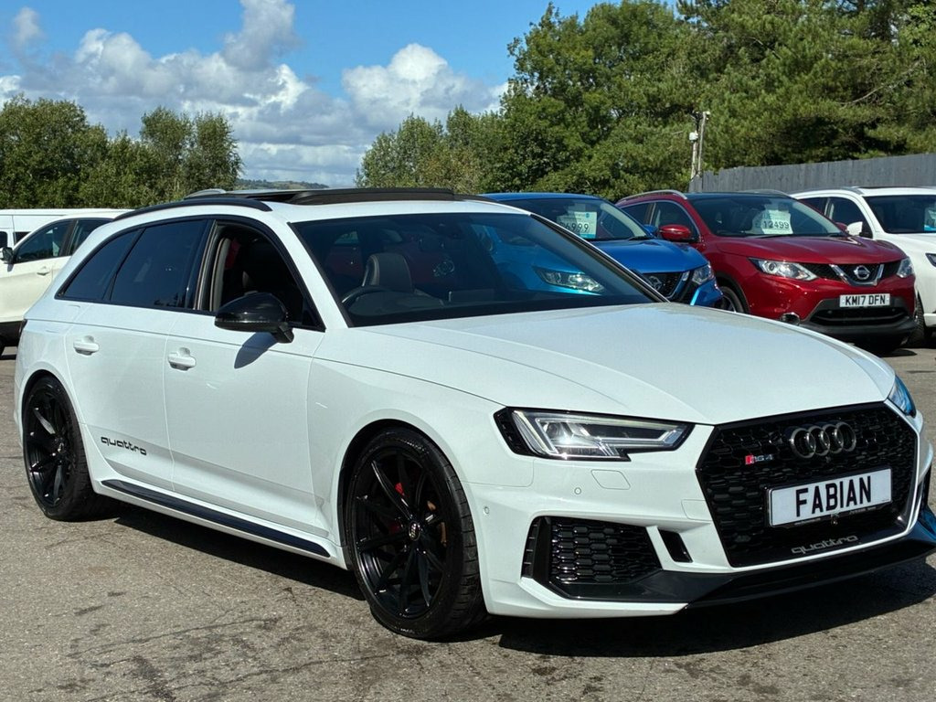 Head-Up Display Rear View Camera Black Styling Pack Brake Calipers - Red Parking Assistance Pack Advanced Door Mirrors - Folding with Auto-Dimming and Memory Function Panoramic Glass Sunroof Electrically Adjustable Front Seats with Memory Function for Drivers Side Inlays - Piano Finish - Black Extended LED Interior Lighting Package - Multi-Coloured 19in Alloy Wheels - 10-Spoke Star Design - Silver 6-Airbag System Anti Theft Locking Wheel Bolts Anti-Theft Alarm Audi Beam Audi Connect Infotainment Services - 36 Month Trial Audi Connect Safety and Service - e-call Audi Side Assist Audi Smartphone Interface Audi Sound System Audi Virtual Cockpit with RS Specific Display Auto-Dimming Rear-View Mirror Cloth Headlining in Black DAB Digital Radio Reception Deluxe 3-Zone Climate Control Door Mirrors - Heated-Electrically Adjustable-Folding Door Mirrors - Matt Aluminium Look Housings Door Sill Trims - Illuminated with RS4 Logo Driver and Front Passenger Airbag ESC - Electronic Stabilisation Control inc ABS - ASR and EDL Electric Load Area Cover Electric Windows - Front Electrically Adjustable Front Seats Email - Calendar and Text Messages can be Displayed on your Vehicles MMI First Aid Kit and Warning Triangle Flat-Bottomed High Multi-function 3-Spoke Leather Sport Steering Wheel with RS Badging Front Centre Armrest Front and Rear Floor Mats Headlights - High-Beam Assist Hill Hold Assist Inlays - Aluminium Race Design LED Headlights with LED Rear Lights and Dynamic Rear Indi 19in Alloy Wheels - 10-Spoke Star Design, 6-Airbag System, Anti Theft Locking Wheel Bolts, Anti-Theft Alarm, Audi Beam, Audi Connect Infotainment Services - 36 , Audi Connect Safety and Service - e-call, Audi Side Assist, Audi Smartphone Interface, Audi Sound System, Audi Virtual Cockpit with RS Specific Di, Auto-Dimming Rear-View Mirror, Cloth Headlining in Black, DAB Digital Radio Reception, Deluxe 3-Zone Climate Control, Door Mirrors - Heated-Electrically Adjus, Door Mirrors - Matt Aluminium Look Housi, Door Sill Trims - Illuminated with RS4 L, Driver and Front Passenger Airbag, ESC - Electronic Stabilisation Control i, Electric Load Area Cover, Electric Windows - Front, Electrically Adju