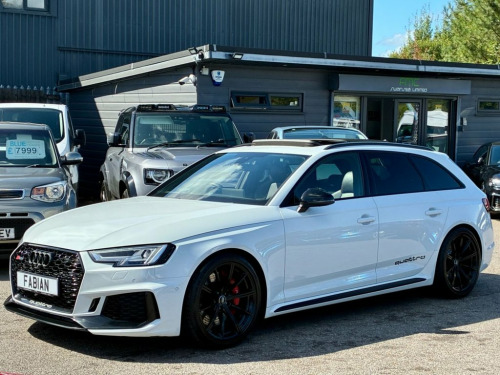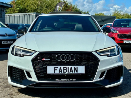 Head-Up Display Rear View Camera Black Styling Pack Brake Calipers - Red Parking Assistance Pack Advanced Door Mirrors - Folding with Auto-Dimming and Memory Function Panoramic Glass Sunroof Electrically Adjustable Front Seats with Memory Function for Drivers Side Inlays - Piano Finish - Black Extended LED Interior Lighting Package - Multi-Coloured 19in Alloy Wheels - 10-Spoke Star Design - Silver 6-Airbag System Anti Theft Locking Wheel Bolts Anti-Theft Alarm Audi Beam Audi Connect Infotainment Services - 36 Month Trial Audi Connect Safety and Service - e-call Audi Side Assist Audi Smartphone Interface Audi Sound System Audi Virtual Cockpit with RS Specific Display Auto-Dimming Rear-View Mirror Cloth Headlining in Black DAB Digital Radio Reception Deluxe 3-Zone Climate Control Door Mirrors - Heated-Electrically Adjustable-Folding Door Mirrors - Matt Aluminium Look Housings Door Sill Trims - Illuminated with RS4 Logo Driver and Front Passenger Airbag ESC - Electronic Stabilisation Control inc ABS - ASR and EDL Electric Load Area Cover Electric Windows - Front Electrically Adjustable Front Seats Email - Calendar and Text Messages can be Displayed on your Vehicles MMI First Aid Kit and Warning Triangle Flat-Bottomed High Multi-function 3-Spoke Leather Sport Steering Wheel with RS Badging Front Centre Armrest Front and Rear Floor Mats Headlights - High-Beam Assist Hill Hold Assist Inlays - Aluminium Race Design LED Headlights with LED Rear Lights and Dynamic Rear Indi 19in Alloy Wheels - 10-Spoke Star Design, 6-Airbag System, Anti Theft Locking Wheel Bolts, Anti-Theft Alarm, Audi Beam, Audi Connect Infotainment Services - 36 , Audi Connect Safety and Service - e-call, Audi Side Assist, Audi Smartphone Interface, Audi Sound System, Audi Virtual Cockpit with RS Specific Di, Auto-Dimming Rear-View Mirror, Cloth Headlining in Black, DAB Digital Radio Reception, Deluxe 3-Zone Climate Control, Door Mirrors - Heated-Electrically Adjus, Door Mirrors - Matt Aluminium Look Housi, Door Sill Trims - Illuminated with RS4 L, Driver and Front Passenger Airbag, ESC - Electronic Stabilisation Control i, Electric Load Area Cover, Electric Windows - Front, Electrically Adju