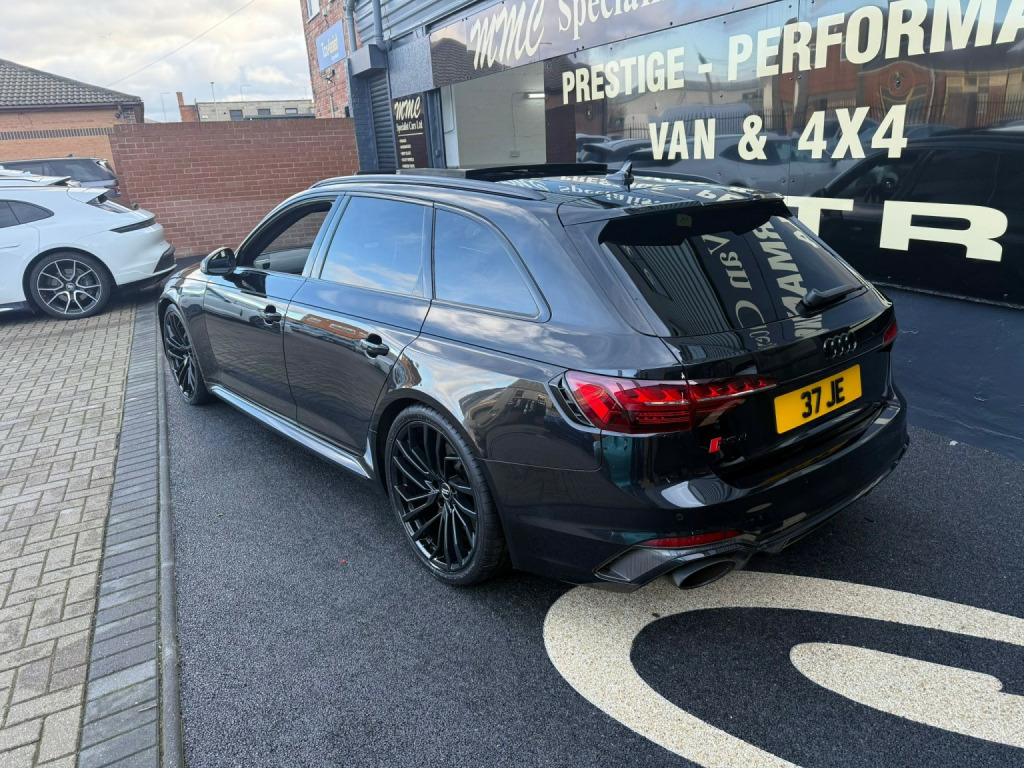 AUDI RS4 AVANT 2.9 TFSI V6 CARBON BLACK Tiptronic quattro Euro 6 (s/s) 5dr 2020 (70 reg), *RESERVE NOW WITH A FULLY REFUNDABLE DEPOSIT* , MMC SPECIALIST CARS LIMITED ARE PROUD TO OFFER A STUNNING 2 OWNER 2020 70 REG AUDI RS4 AVANT 2.9 TFSi CARBON BLACK 4WD AUTO FINISHED IN METALLIC MYTHOS BLACK WITH CONTRASTING BLACK LEATHER TRIM HAVING COVERED 64,587 MILES WITH 7 X AUDI SERVICES AND SPARE KEY, THIS CAR ALSO HAS ADDITIONAL FACTORY UPGRADES, WE ARE AN FCA REGISTERED DEALER , LOW RATE NO DEPOSIT FINANCE AVAILABLE , COMPETITIVE FINANCE OPTIONS ARE AVAILABLE (subject to status). ALL MAJOR CARDS ACCEPTED TO RESERVE ANY OF OUR VEHICLES. A NATION-WIDE DELIVERY SERVICE ANY WHERE IN THE UK IS AVAILABLE. FLEXIBLE VIEWING TIMES ARE AVAILABLE TO SUIT OUR CUSTOMERS IN OUR INDOOR SHOWROOMS. CALL US FOR FURTHER DETAILS OR TO ARRANGE A VIEWING. OPENING HOURS MONDAY TO SATURDAY 9AM - 5PM. SUNDAY BY APPOINTMENTS ONLY. ALL OUR VEHICLES ARE READY TO DRIVE AWAY THE SAME DAY. READ ALL OUR 5* REVIEWS BY GOOGLING MMC SPECIALIST CARS LIMITED WHERE YOU WILL BE REST ASSURED THAT YOU ARE PURCHASING FROM A REPUTABLE FAMILY BUSINESS ESTABLISHED 34+ YEARS WHO TAKE PRIDE IN WHAT THEY DO. All our vehicles receive an Oil Service and Pre-Sale Inspection. We supply a HPi And National Mileage Certificate with each vehicle. BUY WITH PEACE OF MIND. WE HAVE BEEN ESTABLISHED FOR OVER 34 YEARS IN THE SAME LOCATION, Next MOT due 04/02/2027, Full service history, Excellent bodywork, Black Full leather interior - Excellent Condition, Tyre condition New, Four wheel-drive, 5 seats, Metallic Black, 3 owners, Upgrades - Panoramic Glass Sunroof, Comfort and Sound Package, RS Sport Exhaust System, Mythos Black Metallic, Red Brake Calipers in High-gloss Finish with RS Logo at the Front, Fine Nappa Leather - RS Super Sports with Pneumatic Massage Function - Black with Rock Grey Honeycomb Contrast Stitching, Standard Features - 2 USB Charging Ports, 20in Alloy Wheels - 5-Segment-Spoke Evo Style Design in Glossy Black, 6-Airbag System, Anti Theft Locking Wheel Bolts, Anti-Theft Alarm, Audi Beam - Exterior Puddle Lighting with Audi Rings Logo, Audi Connect Infotainment Services (36 Month Subscription From New), Audi Connect Safety and Service - e-call, Audi Phone Box with Wireless Charging, Audi Pre-Sense City, Audi Rings and Lettering - Glossy Black, Audi Side Assist, Audi Smartphone Interface, Audi Sound System, Audi Virtual Cockpit with RS Specific Display, Auto-Dimming Rear-View Mirror, Black Cloth Headlining, Black Roof Rails, Brake Calipers Painted in Black with RS 4 Logo at the Front, Carbon Black Styling Pack, Cruise Control System with Speed Limiter, DAB Digital Radio Reception, Deluxe 3-Zone Electronic Climate Control, Door Handles - Body Coloured, Door Mirrors - Heated-Electrically Adjustable-Folding and Auto Dimming with Built-in LED Side Indicators and Kerb-view on Passenger Side, Door Mirrors - High-Gloss Black, Door Sill Trims - Illuminated with RS4 Logo, ESC - Electronic Stabilisation Control inc ABS - ASR and EDL, Electric Load Area Cover, Electric Windows - Front and Rear, Electrically Adjustable Front Seats, Electromechanical Power Steering, Email - Calendar and Text Messages can be Displayed on your Vehicles MMI, First Aid Kit and Warning Triangle, Flat-Bottomed High Multi-function 3-Spoke Leather Sport Steering Wheel with RS Badging, Front Centre Armrest, Front and Rear Floor Mats, Heated Front Seats, Hill Hold Assist, ISOFIX Child Seat Mounting and Top Tether, Inlays - Carbon Twill, Keyless Go, LED Interior Lighting Pack, Leather Door Armrests and Knee Pad, Light and Rain Sensor, MMI Navigation Plus including MMI Touch, Matrix LED Headlights with LED Rear Lights and Dynamic Front and Rear Indicators, Multi Collision Brake Assist, Parking System Plus - Front and Rear Sensors, Pedals in Stainless Steel, Pneumatic Massage Function, Pop-up Bonnet, Power Operated Tailgate, Privacy Glass with Rear Acoustic Glazing, Quattro Sports Differential, RS 4 Badges on Grille - Front Wing Panels and Rear, RS 4 Dual-branch Chrome Tailpipes with Large Oval Pipes Each on Left and Right, RS Audi Drive Select, RS Body Styling, RS Exhaust System, RS Model Enhanced Braking System, RS Sports Suspension, RS-Specific Gear Lever Knob in Perforated Leather with Contrast Stitching, Rear View Camera, Remote Control Key with RS Emblem, Seat Belt Monitoring, Split-folding Three-seater Rear Seat Bench with 3-part - 40-20-40 Design and Rear Centre Armrest, Tool Kit, Tyre Repair Kit, Voice Control, Windscreen with Acoustic Glazing, DRIVE AWAY THE SAME DAY, £44,999
