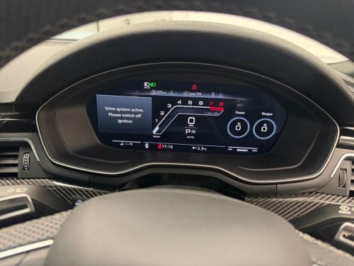 2 USB Charging Ports, 20in Alloy Wheels - 9.0J 5-Segment-Spoke, 6-Airbag System, Anti Theft Locking Wheel Bolts, Anti-Theft Alarm, Audi Beam, Audi Connect Infotainment Services (36 M, Audi Connect with Amazon Alexa Integrati, Audi Pre-Sense City, Audi Rings and Lettering - Glossy Black, Audi Side Assist, Audi Smartphone Interface, Audi Sound System, Audi Virtual Cockpit with RS Specific Di, Auto-Dimming Rear-View Mirror, Black Cloth Headlining, Black Roof Rails, Bluetooth Interface, Brake Calipers Painted in Black with RS , Carbon Black Styling Pack, Cruise Control System with Speed Limiter, DAB Digital Radio Reception, Deluxe 3-Zone Electronic Climate Control, Door Handles - Body Coloured,
