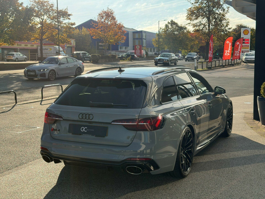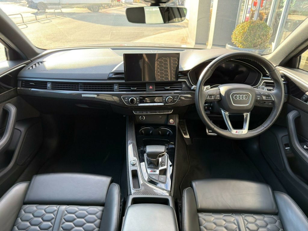 RS4 Avant 2.9 TFSI V6 Carbon BlackFactory Options: Black Fine Nappa Leather Interior with Rock Grey Contrast Honeycomb Stitching.Standard Specification: Carbon Black Styling Pack, Pneumatic Massage Function, Reversing Camera, 20“ Glossy Black 5-Segment-Spoke Evo Style Design Alloys, Black Roof Rails, Carbon Twill Inlays, Privacy Glass, RS Sports Suspension, RS Enhanced Braking System, Apple CarPlay, Android Auto, Keyless Go, Multi-Function Leather RS Sport Steering Wheel, Electric Front Seats, Heated Front Seats, Parking System Plus (Front & Rear Parking Aid), Cruise Control with Speed Limiter, Audi Pre-Sense City, Audi Side Assist, Deluxe 3-Zone Climate Control, RS Audi Drive Select, Matrix LED Headlights, Audi Virtual Cockpit with RS Specific Display, MMI Navigation Plus including MMI Touch, DAB Radio, Bluetooth, Voice Control, Illuminated RS4 Door Sill Trims, High Gloss Black Heated Electric Folding Auto Dimming Door Mirrors, Power Operated Tailgate, Glossy Black Audi Rings & Lettering, Stainless Steel Pedals, RS-Specific Gear Lever Knob in Perforated Leather, Black Calipers, Oval Tailpipes.Finished in Nardo Grey Paint. Audi Warranty Until 11/2025This car does not have a panoramic roof.Proudly No.1 in the UK for customer service in 2024, as awarded by AutoTrader. All our cars are HPI clear. Please contact us for your own personal video presentation of this particular car. We offer competitive finance rates with our in-house team from PCP, lease purchase and HP. Whilst we make every effort to ensure that the specification and technical information for the cars on our website is correct, some of it is supplied by third party providers and we cannot guarantee its accuracy. It is therefore important that you do not solely rely on this information.. Finished in Nardo Grey Paint, Carbon Black Styling Pack, Pneumatic Massage Function, Reversing Camera, 20” Glossy Black 5-Segment-Spoke Evo Style Design Alloys, Black Roof Rails, Carbon Twill Inlays, Privacy Glass, RS Sports Suspension, RS Enhanced Braking System, Apple CarPlay, Android Auto, Keyless Go, Multi-Function Leather RS Sport Steering Wheel, Electric Front Seats, Heated Front Seats, Parking System Plus (Front & Rear Parking Aid), Cruise Control with Speed Limiter, Audi Pre-Sense City, Audi Side Assist, Deluxe 3-Zone Climate Control, RS Audi Drive Select, Matrix LED Headlights, Audi Virtual Cockpit with RS Specific Display, MMI Navigation Plus including MMI Touch, DAB Radio, Bluetooth, Voice Control, Illuminated RS4 Door Sill Trims, High Gloss Black Heated Electric Folding Auto Dimming Door Mirrors, Power Operated Tailgate, Glossy Black Audi Rings & Lettering, Stainless Steel Pedals, RS-Specific Gear Lever Knob in Perforated Leather, Black Calipers, Oval Tailpipes, Fine Nappa Leather - RS Super Sports with Pneumatic Massage Function - Black with Rock Grey Honeycomb Contrast Stitching.