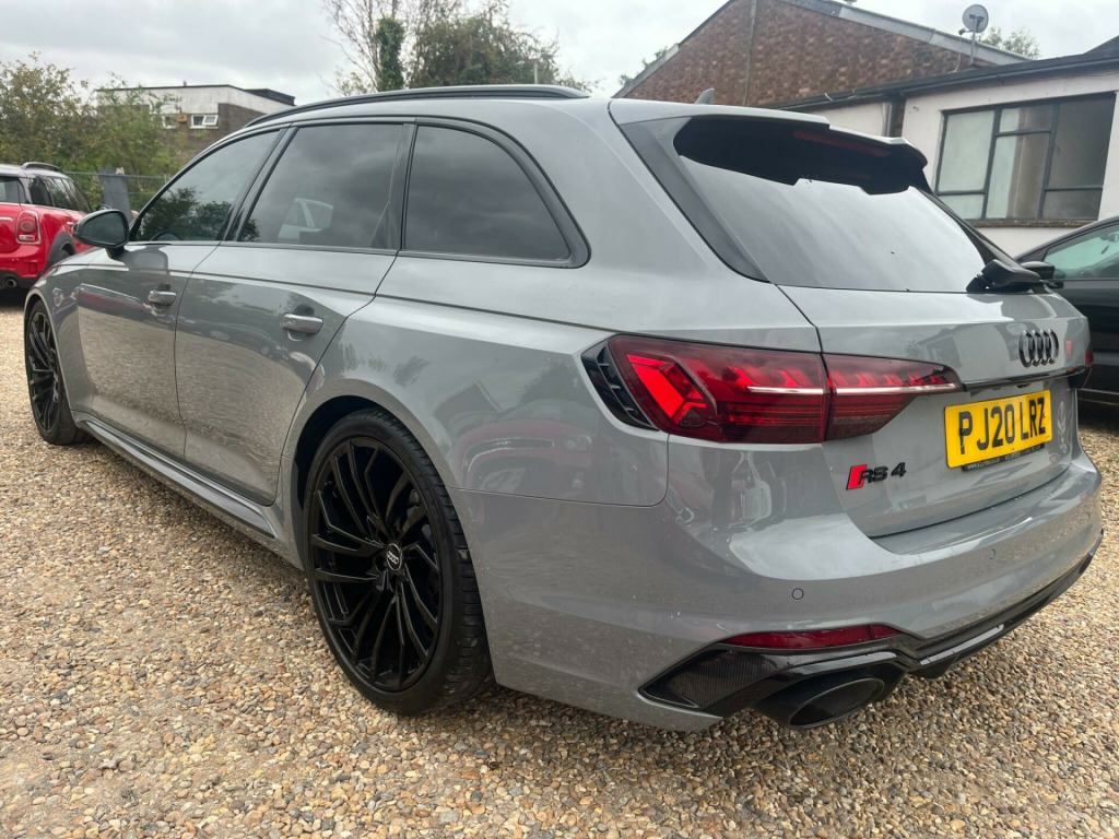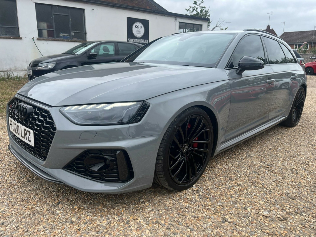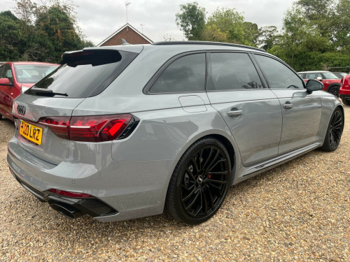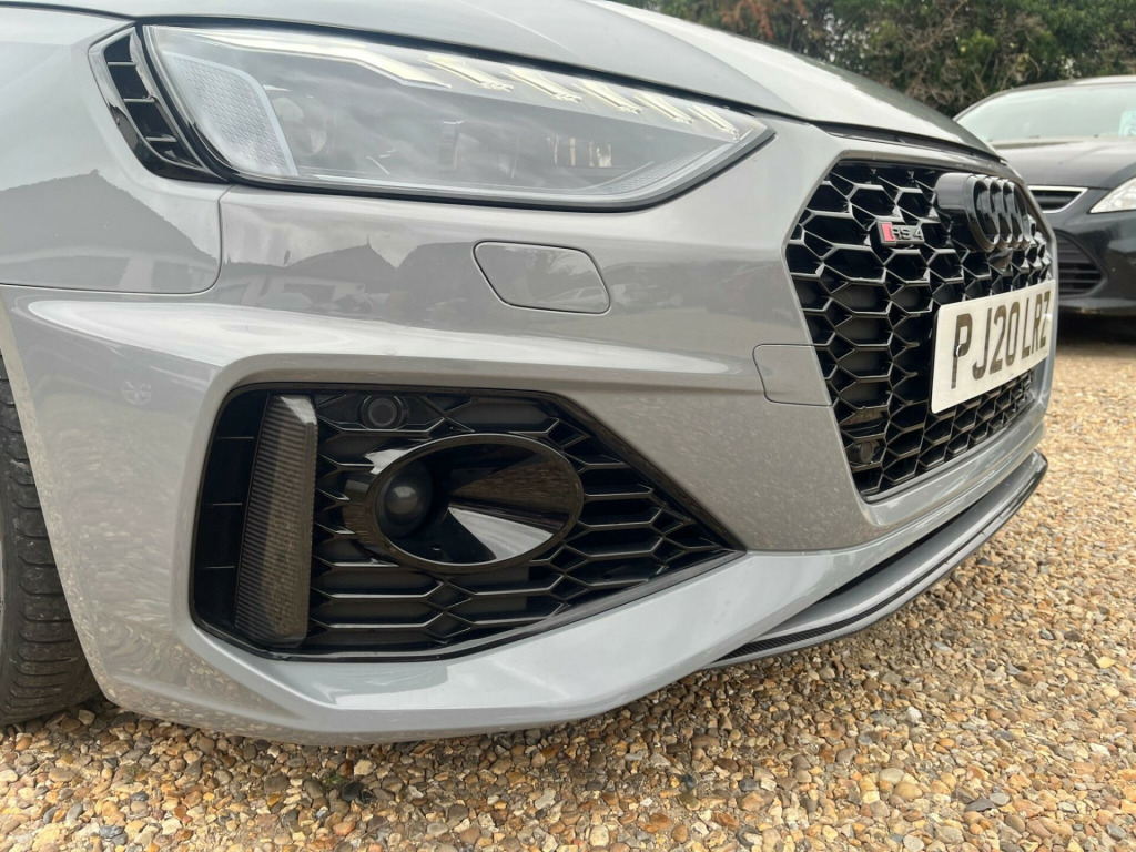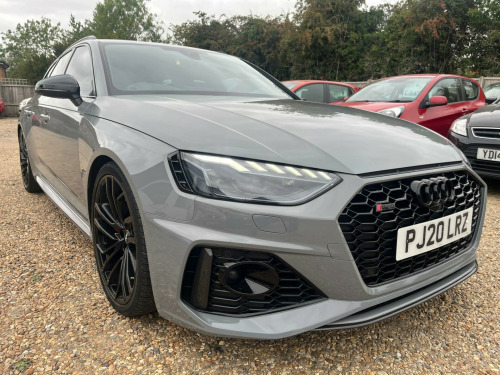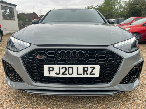 Audi Service History, Audi Service History, Panoramic Glass Sunroof, Suede Steering Wheel and Gearnob, Bang & Olufsen Sound System, Warraned Mileage, HPi Clear, Spare KeyThis 2020 Audi RS4 Avant TFSI V6 Carbon Black is a remarkable example with exceptionally low mileage for its age, having covered just 30,000 miles. Finished in the sought after Carbon Black trim, this powerful estate car boasts a 2.9 litre petrol engine and Audi's renowned four wheel drive system, ensuring superb performance and handling. It meets Euro 6 emissions standards and comes equipped with desirable features such as heated front seats for added comfort, a rear view camera and front and rear parking sensors for effortless manoeuvring. Stay connected and powered up with the Audi Phone Box featuring wireless charging, while the striking Matrix LED headlights with dynamic indicators provide excellent visibility and a distinctive look.The performance of this RS4 Avant is truly impressive, capable of accelerating from 0 to 62 miles per hour in a mere 4.1 seconds, a figure that highlights its dynamic capabilities. This rapid acceleration, combined with its advanced four wheel drive system, sets it apart from many other vehicles in its class, offering a truly engaging driving experience. The inclusion of features like the advanced lighting system and integrated wireless charging further enhance its appeal, demonstrating a thoughtful specification that prioritises both performance and everyday usability. noramic glass sunroof, red brake calipers in high-gloss finish with rs logo at the front, rs sport exhaust system, comfort and sound package, 2 usb charging ports, 20in alloy wheels - 5-segment-spoke evo style design in glossy black, 6-airbag system, anti theft locking wheel bolts, anti-theft alarm, audi beam - exterior puddle lighting with audi rings logo, audi connect infotainment services (36 month subscription from new), audi connect safety and service - e-call, audi phone box with wireless charging, audi pre-sense city, audi rings and lettering - glossy black, audi side assist, audi smartphone interface, audi sound system, audi virtual cockpit with rs specific display, auto-dimming rear-view mirror, black cloth headlining, black roof rails, brake calipers painted in black with rs 4 logo at the front, carbon black styling pack, cruise control system with speed limiter, dab digital radio reception, deluxe 3-zone electronic climate control, door handles - body coloured, door mirrors - heated-electrically adjustable-folding and auto dimming with built-in led side indicators and kerb-view on passenger side, door mirrors - high-gloss black, door sill trims - illuminated with rs4 logo, esc - electronic stabilisation control inc abs - asr and edl, electric load area cover, electric windows - front and rear, electrically adjustable front seats, electromechanical power steering, email - calendar and text messages can be displayed on your vehicles mmi, first aid kit and warning triangle, flat-bottomed high multi-function 3-spoke leather sport steering wheel with rs badging, front centre armrest, front and rear floor mats, heated front seats, hill hold assist, isofix child seat mounting and top tether, inlays - carbon twill, keyless go, led interior lighting pack, leather door armrests and knee pad, light and rain sensor, mmi navigation plus including mmi touch, matrix led headlights with led rear lights and dynamic front and rear indicators, multi collision brake assist, parking system plus - front and rear sensors, pedals in stainless steel, pneumatic massage function, pop-up bonnet, power operated tailgate, privacy glass with rear acoustic glazing, quattro sports differential, rs 4 badges on grille - front wing panels and rear, rs 4 dual-branch chrome tailpipes with large oval pipes each on left and right, rs audi drive select, rs body styling, rs exhaust system, rs model enhanced braking system, rs sports suspension, rs-specific gear lever knob in perforated leather with contrast stitching, rear view camera, remote control key with rs emblem, seat belt monitoring, split-folding three-seater rear seat bench with 3-part - 40-20-40 design and rear centre armrest, tool kit, tyre repair kit, voice control, windscreen with acoustic glazing