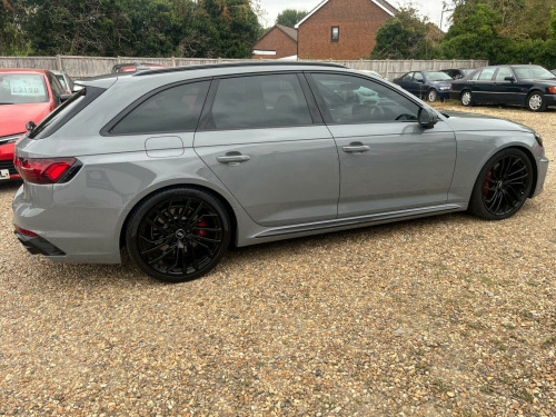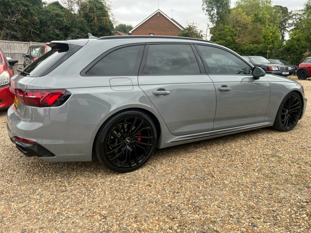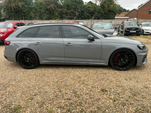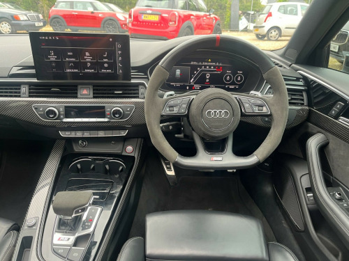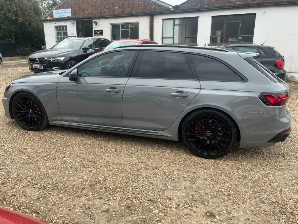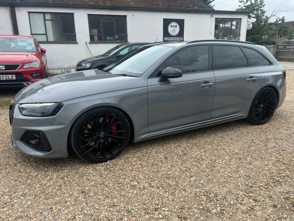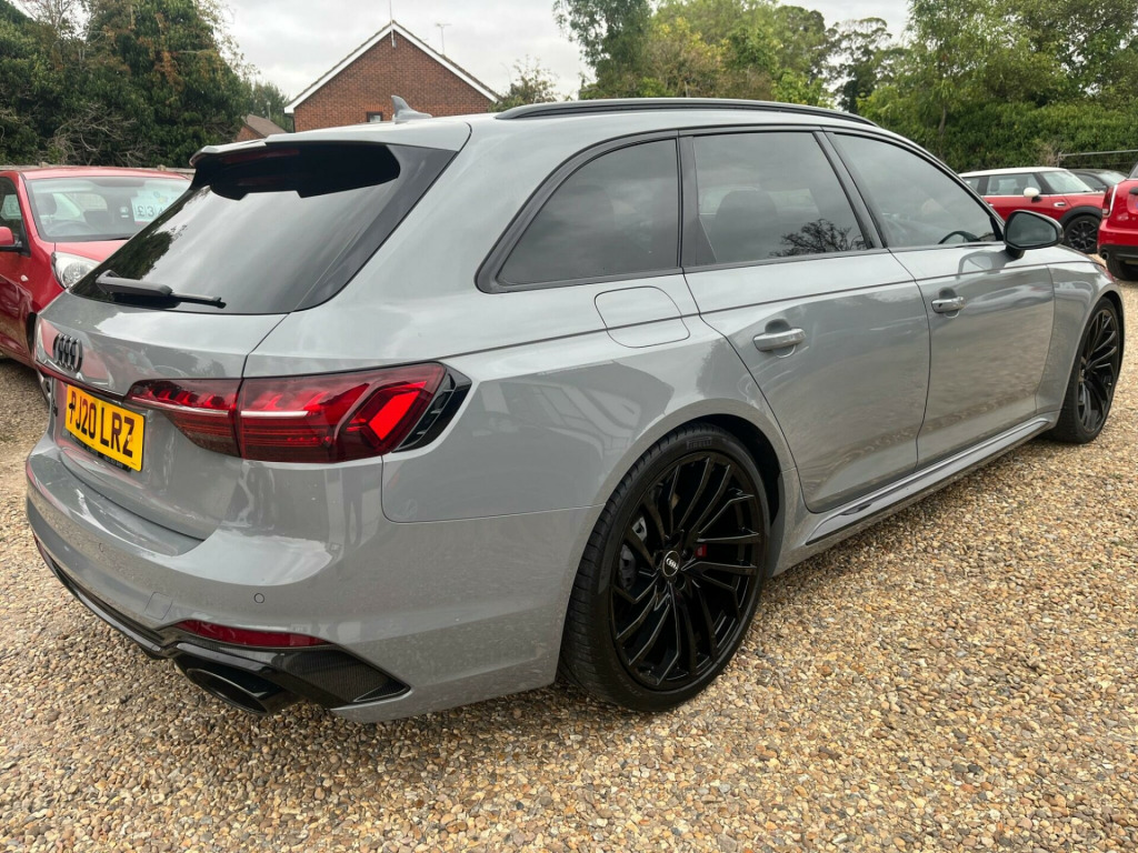 Audi Service History, Audi Service History, Panoramic Glass Sunroof, Suede Steering Wheel and Gearnob, Bang & Olufsen Sound System, Warraned Mileage, HPi Clear, Spare KeyThis 2020 Audi RS4 Avant TFSI V6 Carbon Black is a remarkable example with exceptionally low mileage for its age, having covered just 30,000 miles. Finished in the sought after Carbon Black trim, this powerful estate car boasts a 2.9 litre petrol engine and Audi's renowned four wheel drive system, ensuring superb performance and handling. It meets Euro 6 emissions standards and comes equipped with desirable features such as heated front seats for added comfort, a rear view camera and front and rear parking sensors for effortless manoeuvring. Stay connected and powered up with the Audi Phone Box featuring wireless charging, while the striking Matrix LED headlights with dynamic indicators provide excellent visibility and a distinctive look.The performance of this RS4 Avant is truly impressive, capable of accelerating from 0 to 62 miles per hour in a mere 4.1 seconds, a figure that highlights its dynamic capabilities. This rapid acceleration, combined with its advanced four wheel drive system, sets it apart from many other vehicles in its class, offering a truly engaging driving experience. The inclusion of features like the advanced lighting system and integrated wireless charging further enhance its appeal, demonstrating a thoughtful specification that prioritises both performance and everyday usability. noramic glass sunroof, red brake calipers in high-gloss finish with rs logo at the front, rs sport exhaust system, comfort and sound package, 2 usb charging ports, 20in alloy wheels - 5-segment-spoke evo style design in glossy black, 6-airbag system, anti theft locking wheel bolts, anti-theft alarm, audi beam - exterior puddle lighting with audi rings logo, audi connect infotainment services (36 month subscription from new), audi connect safety and service - e-call, audi phone box with wireless charging, audi pre-sense city, audi rings and lettering - glossy black, audi side assist, audi smartphone interface, audi sound system, audi virtual cockpit with rs specific display, auto-dimming rear-view mirror, black cloth headlining, black roof rails, brake calipers painted in black with rs 4 logo at the front, carbon black styling pack, cruise control system with speed limiter, dab digital radio reception, deluxe 3-zone electronic climate control, door handles - body coloured, door mirrors - heated-electrically adjustable-folding and auto dimming with built-in led side indicators and kerb-view on passenger side, door mirrors - high-gloss black, door sill trims - illuminated with rs4 logo, esc - electronic stabilisation control inc abs - asr and edl, electric load area cover, electric windows - front and rear, electrically adjustable front seats, electromechanical power steering, email - calendar and text messages can be displayed on your vehicles mmi, first aid kit and warning triangle, flat-bottomed high multi-function 3-spoke leather sport steering wheel with rs badging, front centre armrest, front and rear floor mats, heated front seats, hill hold assist, isofix child seat mounting and top tether, inlays - carbon twill, keyless go, led interior lighting pack, leather door armrests and knee pad, light and rain sensor, mmi navigation plus including mmi touch, matrix led headlights with led rear lights and dynamic front and rear indicators, multi collision brake assist, parking system plus - front and rear sensors, pedals in stainless steel, pneumatic massage function, pop-up bonnet, power operated tailgate, privacy glass with rear acoustic glazing, quattro sports differential, rs 4 badges on grille - front wing panels and rear, rs 4 dual-branch chrome tailpipes with large oval pipes each on left and right, rs audi drive select, rs body styling, rs exhaust system, rs model enhanced braking system, rs sports suspension, rs-specific gear lever knob in perforated leather with contrast stitching, rear view camera, remote control key with rs emblem, seat belt monitoring, split-folding three-seater rear seat bench with 3-part - 40-20-40 design and rear centre armrest, tool kit, tyre repair kit, voice control, windscreen with acoustic glazing