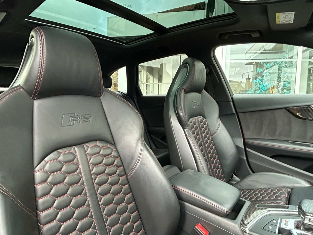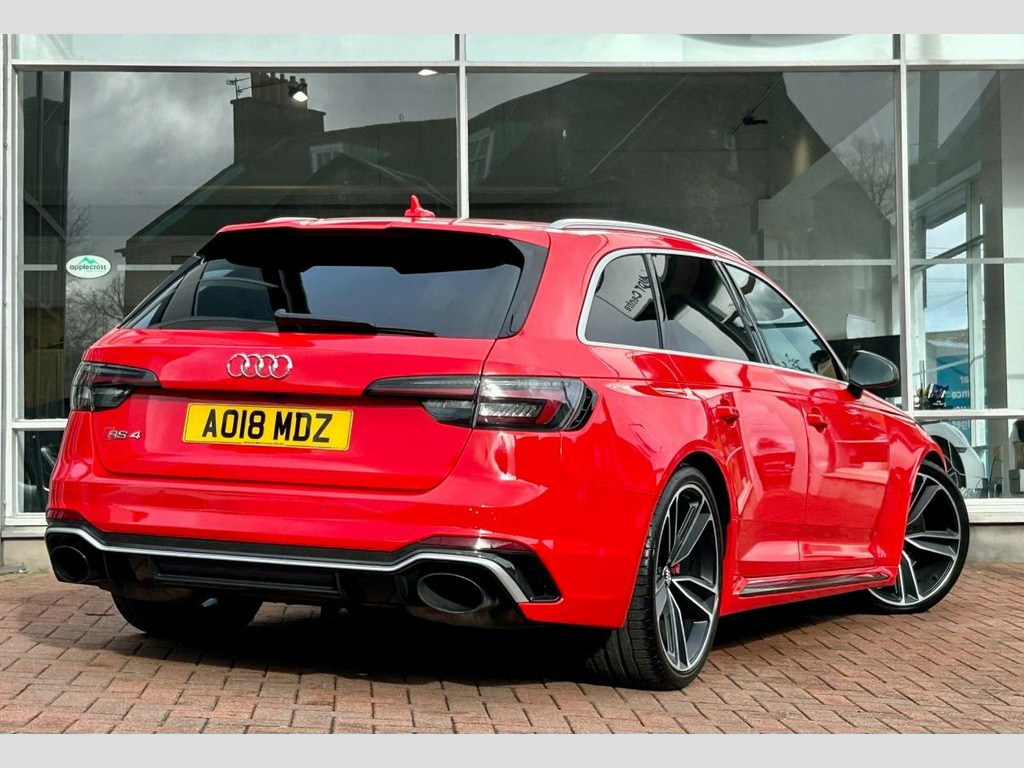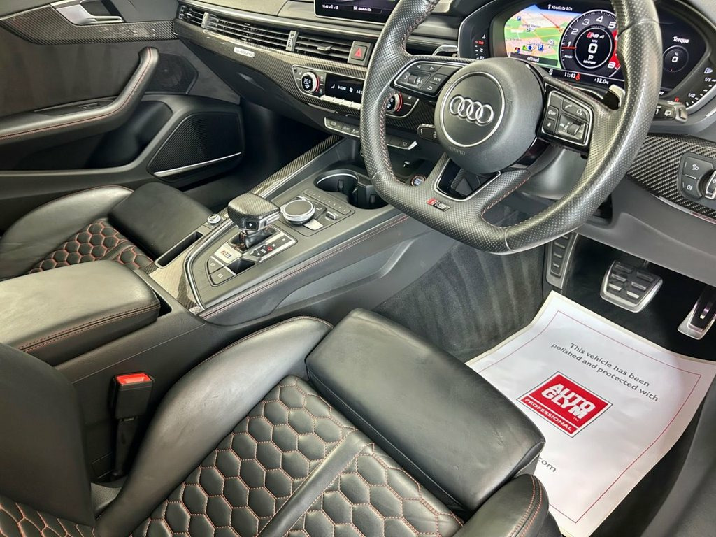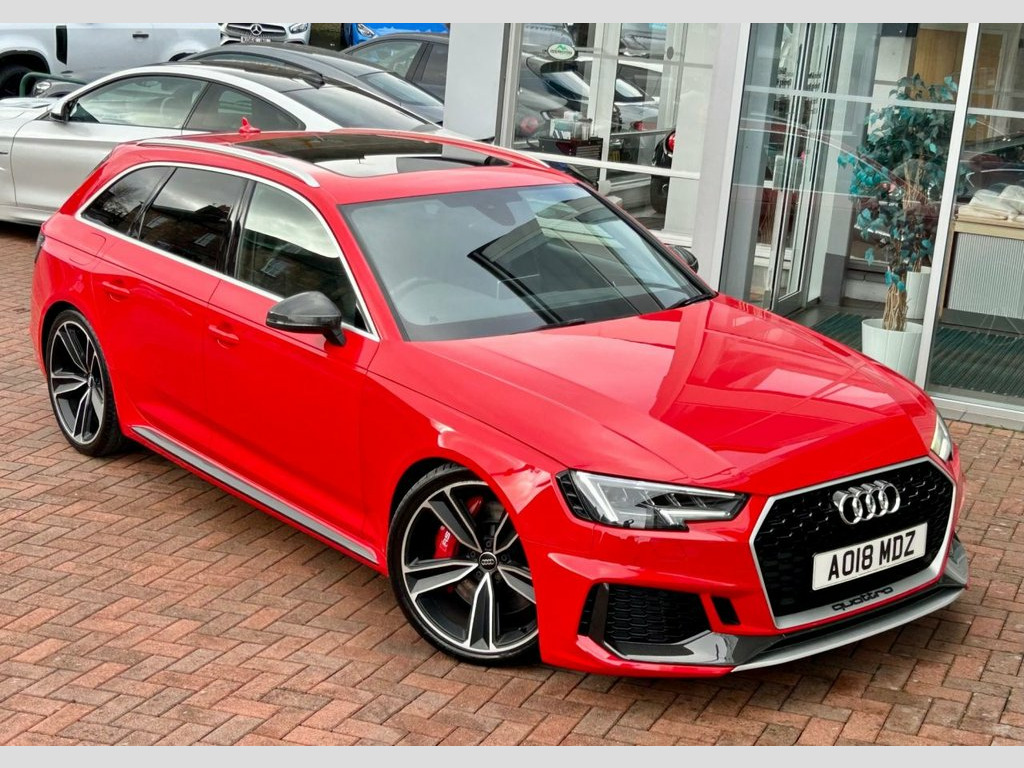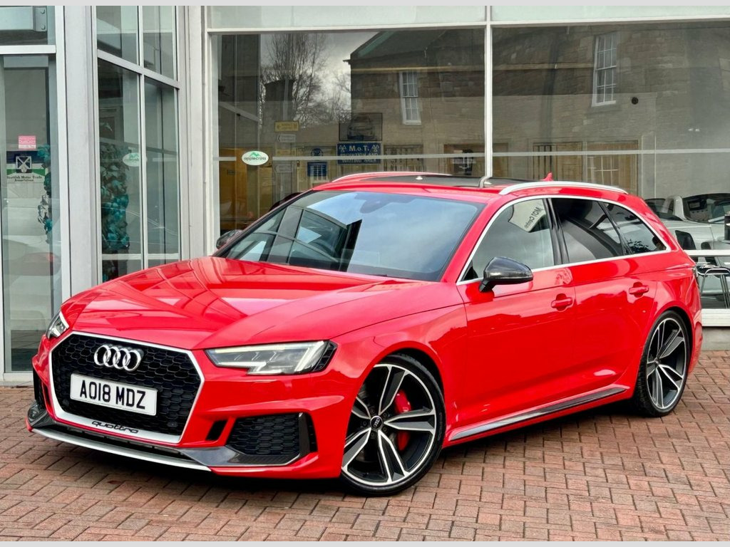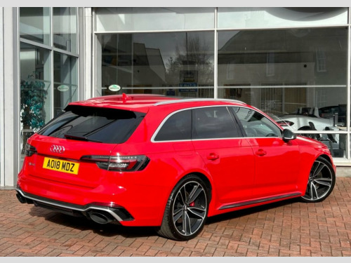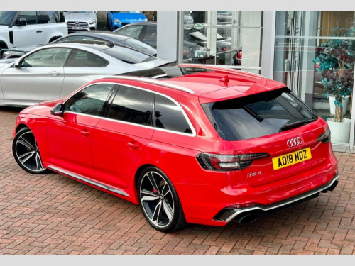 Stunning and just Incredible to Drive...... Misano Red Metallic with Ebony Black Quilted Leather Upholstery and 20 Inch Double Spoke Alloy Wheels. A Gorgeous car from any angle, and our RS4 has a fabulous specification too...... Trim level Features Interior and Exterior Carbon Accents, a Powered Panoramic Roof, Virtual Cockpit, a Comfort and Sound Pack, Electric Seat Adjustment with Massage Function, a Bang & Olufsen Music System, Bluetooth and Multi-media Connectivity, Satellite Navigation, Apple Car Play and Android Auto, Cruise Control, 3 zone Climate control, Ambient lighting, 3 Stage Seat Heating, Electric, Heated and Power-folding Mirrors, Factory Privacy Glass, a Power Operated Tailgate, Front and Rear Parking Sensors, a Reverse Angle Camera and Switchable Drive Modes via Audi's Drive Select System. Supplied with original Handbook Pack, 2 Keys and Audi Main Dealer service confirmation at 19397m, 37508m, 59815m, 68472m, 78919m and 86954 miles. A GHOST Immobiliser is also fitted....... Comfort and Sound Package, Panoramic Glass Sunroof