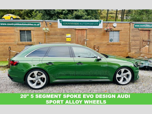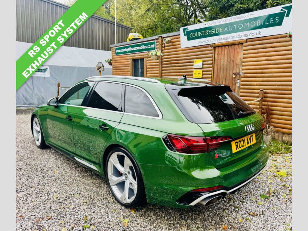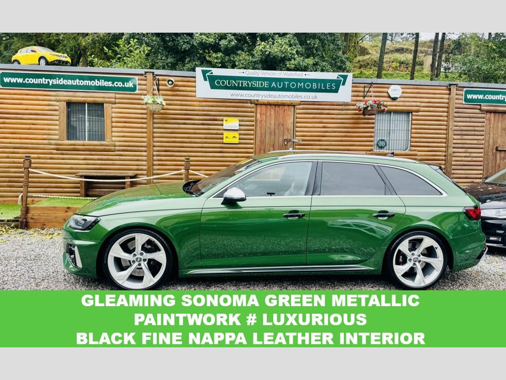 This 2021 Audi RS4 Avant TFSI V6 boasts a full dealership service history, ensuring its provenance is as impressive as its performance. Gleaming Sonoma Green Metallic Paintwork. Powered by a potent 2.9 litre petrol engine, That has had top speed restriction increased to 174mph and featuring a sophisticated four wheel drive system, this Euro 6 compliant model offers exhilarating acceleration, reaching 0-62mph in a mere 4.1 seconds. It comes equipped with the desirable RS Sport Suspension Plus with Dynamic Ride Control, red brake calipers in a high gloss finish with an RS logo at the front, and the comprehensive Driver Assistance Pack Tour. Further enhancing its practicality and comfort are the Storage and Luggage Compartment Package and a rear view camera with parking assistance. A 12 month warranty provides added peace of mind. The Audi RS4 Avant TFSI V6 stands out from other vehicles in its class thanks to its exceptional engineering and thoughtful features. The RS Sport Suspension Plus with Dynamic Ride Control actively adapts to driving conditions, offering a superior blend of agility and comfort. The inclusion of the Driver Assistance Pack Tour signifies advanced safety and convenience technologies, making every journey more relaxed. Combined with its rapid acceleration and robust four wheel drive, this RS4 Avant delivers a driving experience that is both thrilling and refined, all backed by a full dealership service history and a 12 month warranty. Fine Nappa Leather - RS Super Sports wit, RS Sport Suspension Plus with Dynamic Ri, Audi Exclusive, Sonoma Green, Driver Assistance Pack - Tour, Storage and Luggage Compartment Package, Comfort and Sound Package, Red Brake Calipers in High-gloss Finish , RS Sport Exhaust System, 19in Alloy Wheels - 10-Spoke-Star Design, 2 USB Charging Ports, 6-Airbag System, Anti Theft Locking Wheel Bolts, Anti-Theft Alarm, Audi Beam, Audi Connect Infotainment Services (36 M, Audi Connect Safety and Service - e-call, Audi Phone Box with Wireless Charging, Audi Pre-Sense City, Audi Side Assist, Audi Smartphone Interface, Audi Sound System, Audi Virtual Cockpit with RS Specific Di, Auto-Dimming Rear-View Mirro