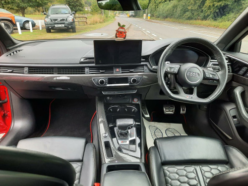 This 2021 Audi RS4 Avant TFSI V6 offers an exceptional blend of performance and practicality, boasting a powerful 2.9 litre petrol engine and a sophisticated four wheel drive system. As a Euro 6 compliant vehicle, it meets stringent emission standards. This RS4 Avant is equipped with a suite of advanced features designed to enhance your driving experience, including a helpful rear view camera with parking assistance, Audi Side Assist for improved blind spot awareness, and striking Matrix LED headlights complemented by LED rear lights and dynamic indicators. Inside, you'll find the comfort of heated front seats and the convenience of Parking System Plus, which includes front and rear sensors for effortless manoeuvring.Experience exhilarating performance with this Audi RS4 Avant, capable of accelerating from 0 to 62 miles per hour in a rapid 4.1 seconds. This impressive acceleration highlights how the RS4 Avant surpasses many other vehicles in its class, offering a truly dynamic driving sensation. The combination of its potent engine, advanced drivetrain, and comprehensive safety and convenience features makes this 2021 Audi RS4 Avant TFSI V6 a compelling choice for those seeking a premium estate car that excels in both everyday usability and thrilling performance. in alloy wheels - 10-spoke-star design forged in silver, 2 usb charging ports, 6-airbag system, anti theft locking wheel bolts, anti-theft alarm, audi beam - exterior puddle lighting with audi rings logo, audi connect infotainment services (36 month subscription from new), audi connect safety and service - e-call, audi phone box with wireless charging, audi pre-sense city, audi side assist, audi smartphone interface, audi sound system, audi virtual cockpit with rs specific display, auto-dimming rear-view mirror, black cloth headlining, brake calipers painted in black with rs 4 logo at the front, cruise control system with speed limiter, dab digital radio reception, deluxe 3-zone electronic climate control, door handles - body coloured, door mirrors - heated-electrically adjustable-folding and auto dimming with built-in led side indicators and kerb-view on passenger side, door mirrors - matt aluminium look housings, door sill trims - illuminated with rs4 logo, esc - electronic stabilisation control inc abs - asr and edl, electric load area cover, electric windows - front and rear, electrically adjustable front seats, electromechanical power steering, email - calendar and text messages can be displayed on your vehicles mmi, first aid kit and warning triangle, flat-bottomed high multi-function 3-spoke leather sport steering wheel with rs badging, front centre armrest, front and rear floor mats, heated front seats, hill hold assist, isofix child seat mounting and top tether, inlays - aluminium race, keyless go, led interior lighting pack, leather door armrests and knee pad, light and rain sensor, mmi navigation plus including mmi touch, matrix led headlights with led rear lights and dynamic front and rear indicators, multi collision brake assist, parking system plus - front and rear sensors, pedals in stainless steel, pneumatic massage function, pop-up bonnet, power operated tailgate, privacy glass with rear acoustic glazing, quattro sports differential, rs 4 badges on grille - front wing panels and rear, rs 4 dual-branch chrome tailpipes with large oval pipes each on left and right, rs audi drive select, rs body styling, rs exhaust system, rs model enhanced braking system, rs sports suspension, rs-specific gear lever knob in perforated leather with contrast stitching, rear view camera, remote control key with rs emblem, seat belt monitoring, split-folding three-seater rear seat bench with 3-part - 40-20-40 design and rear centre armrest, tool kit, tyre repair kit, voice control, windscreen with acoustic glazing