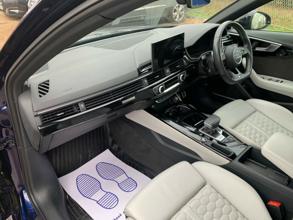 PADS & DISCS RECENTLY CHANGED AUDI GENUINE PARTSFREE UK DELIVERY - FINANCE AVAILABLE, CONTACT US NOW FOR A NO OBLIGATION QUOTE - CALL NOW TO ARRANGE A TEST DRIVE - PART EXCHANGE WELCOME - ONE YEAR WARRANTY MINIMUM, EXTENDED AVAILABLE, WARRANTY CAN BE REDEEMED AT VAT REGISETERED GARAGE - NO ADMIN FEES - ALL VEHICLES HPI CHECKED - FULL USED CAR INSPECTION MECHANICAL APPRAISAL CARRIED OUT ON ALL VEHICLES BEFORE LEAVING OURSELVES - YOU CAN REST ASSURED YOU'RE MAKING THE RIGHT DECISION WHEN PURCHASING YOUR NEW VEHICLE FROM US - OVER 100 VEHICLES IN STOCK - RIVERSIDE AUTOS LTD FAMILY RUN BUSINESS ESTABLISHED SINCE 2005 -This 2020 Audi RS4 Avant TFSI V6 Vorsprung is a remarkable example of performance and practicality. Featuring a potent 2.9L V6 petrol engine and Audi's renowned four wheel drive system, this Euro 6 compliant model offers exhilarating acceleration, reaching 0-62mph in a swift 4.1 seconds. The Vorsprung trim level ensures a wealth of premium features, including the comprehensive Driver Assistance Pack with adaptive cruise control, and the convenience of the Audi Phone Box with wireless charging.Further enhancing the driving experience are the advanced Matrix LED headlights paired with dynamic front and rear indicators, ensuring excellent visibility and a distinctive presence. For added comfort and ease, this RS4 Avant is equipped with heated front and outer rear seats, and a rear view camera for effortless parking. These features collectively demonstrate how this Audi RS4 Avant stands out, offering a superior blend of dynamic capability, cutting edge technology, and refined comfort for any journey.. 2 USB Charging Ports, 20in Alloy Wheels - 5-Segment-Spoke Evo Style Design in Matt Titanium Look, 6-Airbag System, Anti Theft Locking Wheel Bolts, Anti-Theft Alarm, Audi Beam - Exterior Puddle Lighting with Audi Rings Logo, Audi Connect Infotainment Services (36 Month Subscription From New), Audi Connect Safety and Service - e-call, Audi Phone Box with Wireless Charging, Audi Pre-Sense City, Audi Rings and Lettering - Glossy Black, Audi Side Assist, Audi Smartphone Interface, Audi Virtual Cockpit with RS Specific Display, Auto-Dimming Rear-View Mirror, Black Cloth Headlining, Black Roof Rails, Black Styling Package, Brake Calipers Painted in Black with RS 4 Logo at the Front, Comfort and Sound Package, Cruise Control System with Speed Limiter, DAB Digital Radio Reception, Deluxe 3-Zone Electronic Climate Control, Door Handles - Body Coloured, Door Mirrors - Heated-Electrically Adjustable-Folding and Auto Dimming with Built-in LED Side Indicators and Kerb-view on Passenger Side, Door Mirrors - High-Gloss Black, Door Sill Trims - Illuminated with RS4 Logo, Driver Assistance Pack - Tour, Dynamic Steering, ESC - Electronic Stabilisation Control inc ABS - ASR and EDL, Electric Load Area Cover, Electric Windows - Front and Rear, Electrically Adjustable Front Seats, Electromechanical Power Steering, Email - Calendar and Text Messages can be Displayed on your Vehicles MMI, First Aid Kit and Warning Triangle, Flat-Bottomed High Multi-function 3-Spoke Leather Sport Steering Wheel with RS Badging, Front Centre Armrest, Front and Rear Floor Mats, Head-Up Display, Heated Front and Outer Rear Seats, Hill Hold Assist, ISOFIX Child Seat Mounting and Top Tether, Inlays - Piano Black, Keyless Go, Leather Door Armrests and Knee Pad, Light and Rain Sensor, MMI Navigation Plus including MMI Touch, Matrix LED Headlights with LED Rear Lights and Dynamic Front and Rear Indicators, Multi Collision Brake Assist, Panoramic Glass Sunroof, Parking Assistance Pack Advanced, Parking System Plus - Front and Rear Sensors, Pedals in Stainless Steel, Pneumatic Massage Function, Pop-up Bonnet, Power Operated Tailgate, Privacy Glass with Rear Acoustic Glazing, Quattro Sports Differential, RS 4 Badges on Grille - Front Wing Panels and Rear, RS 4 Dual-branch Chrome Tailpipes with Large Oval Pipes Each on Left and Right, RS Audi Drive Select, RS Body Styling, RS Exhaust System, RS Model Enhanced Braking System, RS Sport Exhaust System, RS Sport Suspension Plus with Dynamic Ride Control - DRC, RS Sports Suspension, RS-Specific Gear Lever Knob in Perforated Leather with Contrast Stitching, Rear View Camera, Remote Control Key with RS Emblem, Seat Belt Monitoring, Split-folding Three-seater Rear Seat Bench with 3-part - 40-20-40 Design and Rear Centre Armrest, Tool Kit, Top Speed Restriction Increase to 174mph, Two Additional USB Ports for Rear Passengers in the Rear Centre Console, Tyre Repair Kit, Voice Control, Windscreen with Acoustic Glazing, Bluetooth Interface, Matrix Beam Headlamps, Multifunction Camera, 2 Services left on Audi service plan.