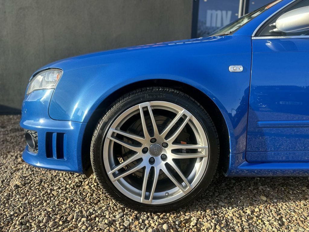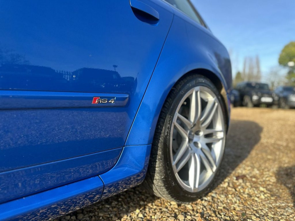 Black Valcona Leather Recaro Wing Back seats + BOSE sound system + 19-inch 7 Arm Double Spoke design alloy wheels + Sprint Blue Pearl Effect paintwork + 4.2L V8 Petrol Engine (415 bhp) + 6-speed manual transmission + Quattro permanent all-wheel drive + Cruise control + Valved Milltek exhaust system + A truly exceptional B7 RS4 — enthusiast owned, beautifully presented and mechanically maintained to a very high standard. Rarely seen in this condition, representing an outstanding opportunity to acquire one of the most iconic manual RS models produced. Adjustable Steering Column/Wheel, Air Bag Driver, Air Bag Passenger, Air Bag Side, Alarm, Alloy Wheels (19in), Anti-Lock Brakes, Body Coloured Bumpers, Central Door Locking, Centre Rear Seat Belt, Climate Control, Computer (Driver Information System), Cruise Control, Electric Windows (Front/Rear), Electronic Stability Programme, Front Fog Lights, Head Air Bags, Head Restraints, Immobiliser, In Car Entertainment (Radio/CD), Mirrors External, Parking Aid (Front/Rear), Power Socket, Power-Assisted Steering, Roof Rails, Seat - ISOFIX Anchorage Point (Three Sea, Seat Height Adjustment, Seat Lumbar Support (Driver/Passenger El, Seats Heated (Driver/Passenger), Side Protection Mouldings, Speakers,