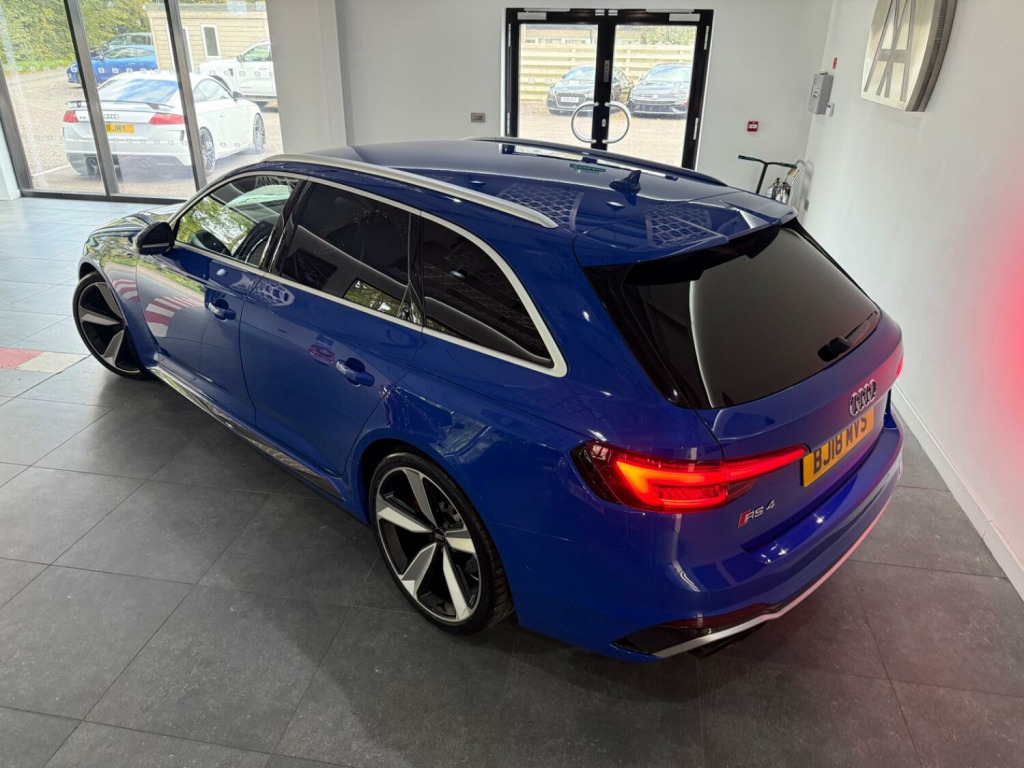 B9 RS4 Carbon Edition, RARE Audi Exclusive Nogaro Blue, Very rare red stitched interior, Mileage is ~40,000 miles, Itemised and detailed service history folder. MOT until April 2026, the car has been fully maintained under Comprehensive Audi Warranty package, Also currently has an Audi Service Pack on it. , Just serviced at Audi and DRC system checked and in perfect order, , Factory Fitted Extras:, RS Sport Suspension Plus with Dynamic Ride Control (DRC), Comfort & Sound Package, Audi Sports Exhaust, Parking Assitance Pack Advanced, Dynamic Steering, TPMS, Folding/Dimming Mirrors, Heated Front & Rear Seats, Electric Memory Seats (Drivers inc memory), Front Seats Also Have Massage Function, Storage Package, Heated Steering Wheel, Audi Phonebox
