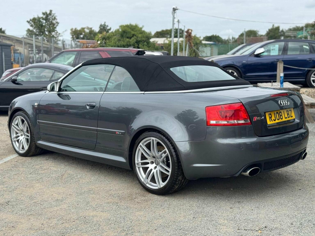 This is an Audi RS4 Cabriolet, registered in 2008. It features a powerful 4.2L petrol engine and a four-wheel-drive system, ensuring a dynamic and engaging driving experience. This car has had only three owners from new and comes with a clear vehicle history check, providing peace of mind. The Audi RS4 Cabriolet stands out with its impressive acceleration, reaching 0-60mph in just 4.9 seconds. This rapid acceleration demonstrates its superior performance capabilities when compared to similar vehicles, offering an exhilarating driving experience.