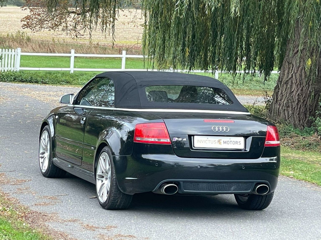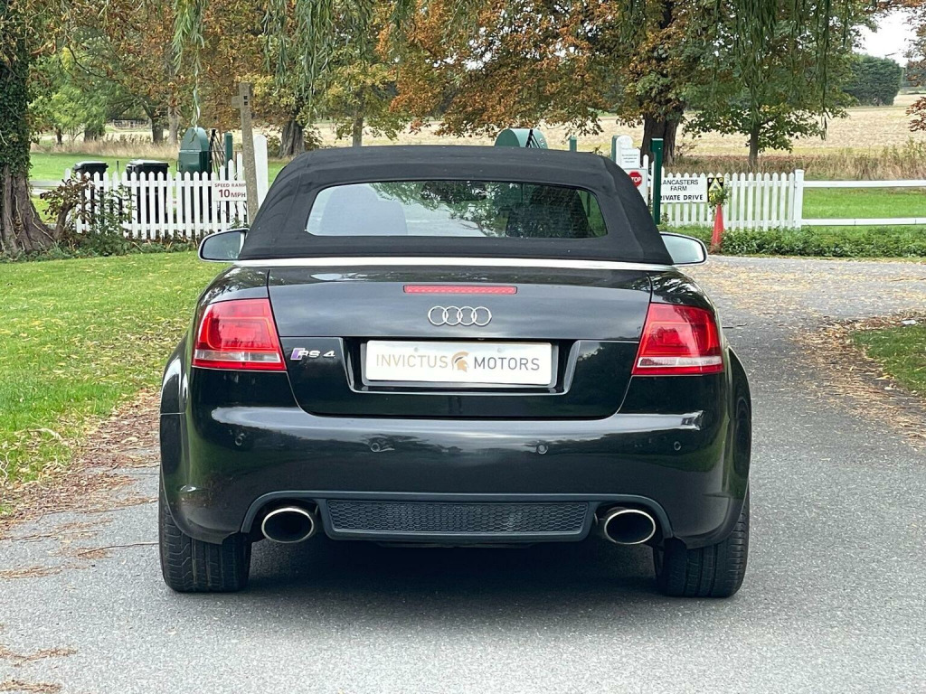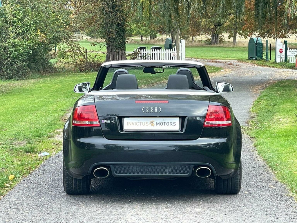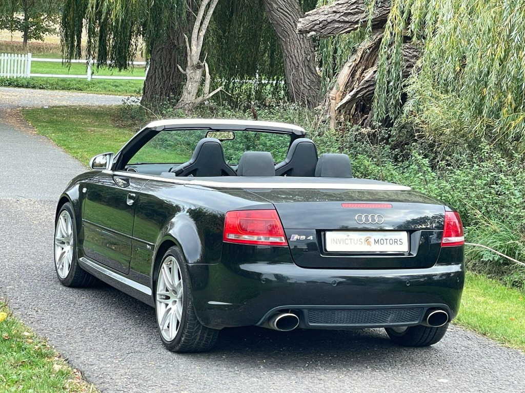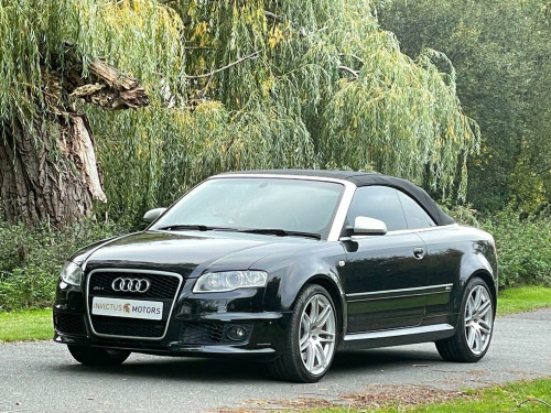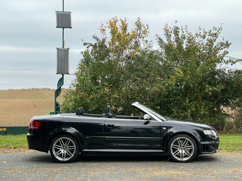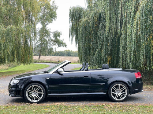 FULL AUDI MAIN DEALER & SPECIALIST HISTORY + PHANTOM BLACK METALLIC + BLACK LEATHER INTERIOR + SUPER SPRINT REAR SILENCERS WITH CENTRE X-PIPE + BOSE SOUND SYSTEM + RS BUCKET SEATS + SPORTS SUSPENSION + 19 ALLOY WHEELS + CRUISE CONTROL & MORE, This Audi RS4 Cabriolet has had no expense spared, presented with a Full Audi Main Dealer & Specialist Service History and maintained to an exceptional standard throughout its life, covering just 77,805 miles: (1) 17,377 Miles – Maidstone Audi, (2) 35,895 Miles – Maidstone Audi, (3) 43,538 Miles – Maidstone Audi, (4) 47,212 Miles – Maidstone Audi, (5) 51,466 Miles – Maidstone Audi, (6) 52,941 Miles – Maidstone Audi, (7) 59,581 Miles – Autoumbau Porsche, (8) 61,167 Miles – Harpenden Auto Services, (9) 67,165 Miles – Evron Prestige, (10) 69,957 Miles – Evron Prestige, (11) 73,345 Miles – KMAC Auto Repair, (12) 74,245 Miles – KMAC Auto Repair, (13) 75,046 Miles – KMAC Auto Repair. It has also benefitted from Super Sprint Rear Silencers and a Centre X-Pipe installed by RTEC Shop, along with regular brake, suspension and carbon cleaning maintenance. This 2007 Audi RS4 Cabriolet is finished in Phantom Black Metallic with Black Leather Interior. Powered by the naturally aspirated 4.2L V8 (BNS engine) producing 420PS, paired with a 6-speed manual gearbox and quattro all-wheel drive, it delivers an engaging and dynamic performance. The Optional Specification is as follows: (1) RS Bucket Seats, (2) BOSE Sound System, (3) Heated Front Seats, (4) Cruise Control, (5) Electric Folding & Auto-Dimming Mirrors, (6) Sports Suspension with Variable Damping, (7) Climate Control, (8) Power-Adjustable Lumbar Support, (9) Wind Deflector, (10) Ambient Interior Lighting and more. ANY PART EXCHANGE IS WELCOME. VIEWING IS STRICTLY APPOINTMENT ONLY. 3 MONTHS WARRANTY, EXTENDED WARRANTY AVAILABLE, HPI CLEAR AND VEHICLE TRACKING SOLUTIONS. ALL TRANSACTIONS SUBJECT TO A £199 ADMIN FEE. £100 OF EVERY SALE IS DONATED TO CHARITY. FINANCE AVAILABLE AT COMPETITIVE RATES. CM22 7AA