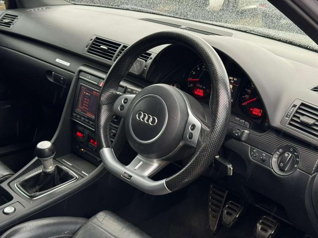 Selling this 2006 (56) Audi RS4 4.2 V8 Saloon with a manual gearbox and quattro all-wheel drive, producing 415 bhp. The car comes with MOT and warranty included and is supplied with two keys. It has a full service history, including Audi main dealer and specialist servicing, with the most recent service carried out at 95,000 miles. Significant preventative maintenance has been carried out, with a Bilstein B4 suspension kit fitted at 76,000 miles, PCV valve replacement, differential and gearbox oil changes, and a carbon clean with inlet manifold de-flap at the same mileage. Just prior to its 2025 MOT, the car benefitted from extensive work including new front brake discs and pads, refurbished front and rear brake calipers with new seals and pistons, upgraded front and rear brake lines, two new front driveshafts, two new wheel bearings, a complete replacement of the front control arms, and two new catalytic converters. The car is fitted with Maxton front bumper and rear bumper spoilers, enhancing the appearance while keeping the RS4's aggressive factory styling. Receipts are present for all work carried out, giving peace of mind to the next owner. Adjustable Steering Column/Wheel, Air Bag Driver, Air Bag Passenger, Air Bag Side, Alarm, Alloy Wheels (19in), Anti-Lock Brakes, Body Coloured Bumpers, Central Door Locking, Centre Rear Seat Belt, Climate Control, Computer (Driver Information System), Cruise Control, Electric Windows (Front/Rear), Electronic Stability Programme, Front Fog Lights, Head Air Bags, Head Restraints, Immobiliser, In Car Entertainment (Radio/CD), Mirrors External, Parking Aid (Front/Rear), Power Socket, Power-Assisted Steering, Seat - ISOFIX Anchorage Point (Three Sea, Seat Height Adjustment, Seat Lumbar Support (Driver/Passenger El, Seats Heated (Driver/Passenger), Side Protection Mouldings, Speakers, Steering Whe