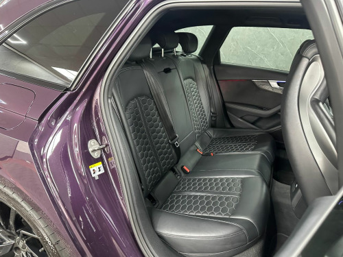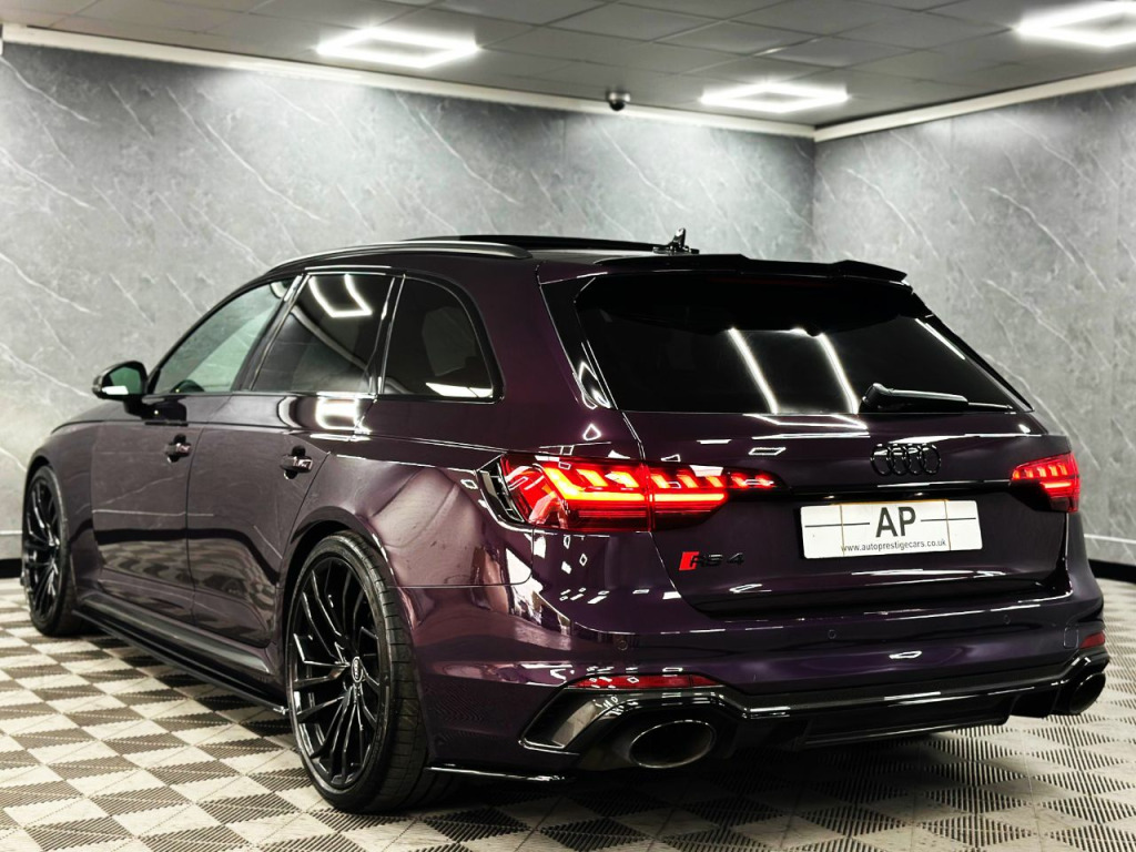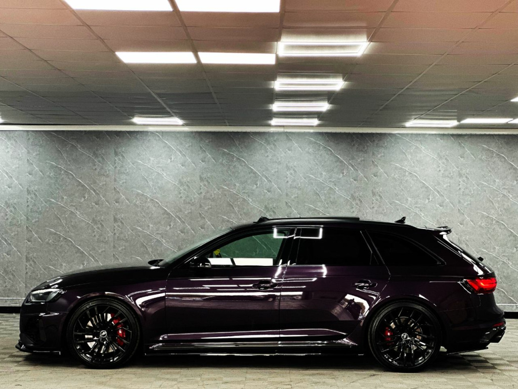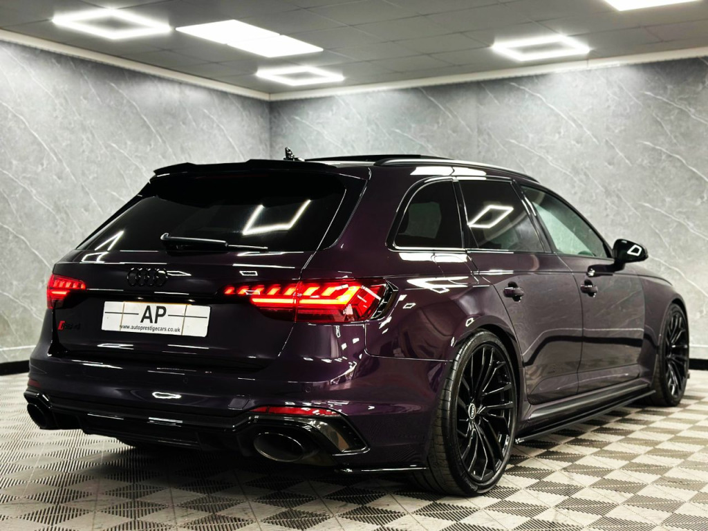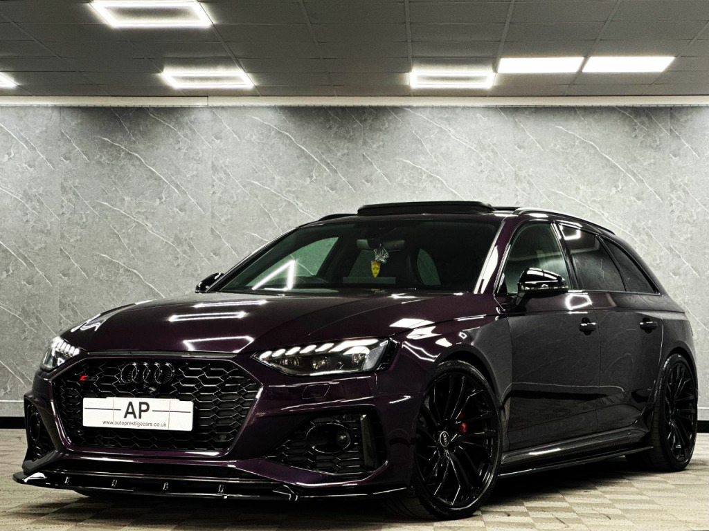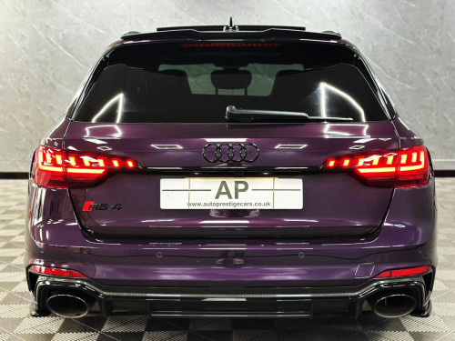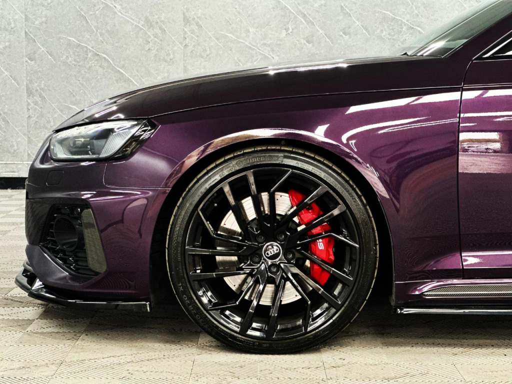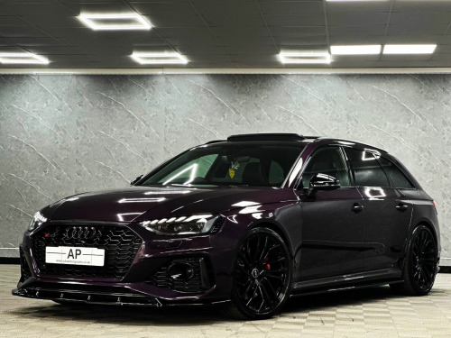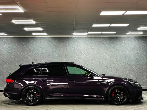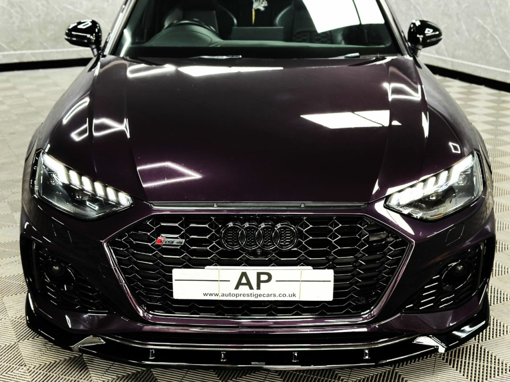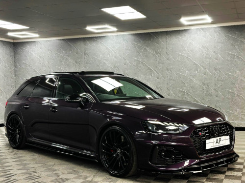 YORKSHIRE'S LARGEST PROVIDERS OF BESPOKE PERFORMANCE AND PRESTIGE VEHICLES..BUY WITH COMPLETE CONFIDENCE...AUTOPRESTIGE ARE PROUD TO PRESENT THIS STUNNING VERY RARE OPPURTUNITY TO BUY A 2021 AUDI RS4 B9.5 CARBON BLACK EDITION FINISHED IN THE AUDI EXCLUSIVE OPTIONAL EXTRA PAINT, PEARLESCENT CRYSTAL EFFECT MERLIN PURPLE WHICH CHANGES COLOUR IN DIFFERENT LIGHTS - BELIEVED TO BE ONLY A FEW IN THIS ULTRA RARE PAINT - OVER 3 STAGE HEATED BLACK FINE NAPPA LEATHER RS SUPER SPORT QUILTED BUCKET SEATS WITH MASSAGE AND LUMBAR SUPPORT FUNCTION - THE CLEANEST UNABUSED RS4 AROUND WITH FULL FRONT END AND REAR BUMPER PPF PAINT PROTECTION FILM BACKED BY A FULL COMPREHENSIVE AUDI SERVICE HISTORY - HAS ALWAYS BEEN UNDER MANUFACTURERS WARRANTY AND AUDI SERVICE PACK TILL JULY 2025 - RECENTLY SERVICED AT 33000 MILES - FRESH NEW BRAKE PADS ALL ROUND - NO EXPENSE FOR THE NEW KEEPER - A LOW OWNER,LOW MILES AND HIGH SPEC RS4 CARBON BLACK EDITION IN MERLIN PURPLE IS EXTREMELY DIFFICULT TO COME ACROSS, AND HERE AT AUTOPRESTIGE WE HAVE THE ONLY ONE AVAILABLE WITH THE MUST HAVE PANROOF OPTION - EVERY OPTION FROM FACTORY...STAGE 1 ECU AND TCU TUNE BY AUDI SPECIALISTS INFINIT PERFORMANCE (FLASHED ON 100 MILES AGO CAN BE REMOVED) PRODUCING APPROXIMATELY 520BHP WITH REVISED CRACKLES IN SPORT MODES...MAIN DEALER APPROVED BRAND NEW CARBON EVENTURI INTAKE SYSTEM COSTING £1600 - RATED BEST FOR COOLING (ORIGINAL INCLUDED), UPGRADED MID-PIPE SYSTEM (ORIGINAL INCLUDED) FULL MAXTON DESIGN AERO PACKAGE FINISHED IN GLOSS BLACK CONSISTING OF FRONT SPLITTER, SIDE SKIRTS, REAR SPATS AND REAR SPOILER CAP - THE BEST LOOKING B9.5 AROUND...SPACER STANCE PACKAGE...HUGE FACTORY SPECIFICATION WHICH INCLUDES FULL EXTERIOR FACTORY BLACK OPTICS PACK,EXTERIOR FACTORY CARBON PACK,RARE TILT AND SLIDE PANORAMIC GLASS SUNROOF WITH AUTO BLIND,COMFORT AND SOUND PACK,BANG AND OLUFSEN SURROUND SOUND,360 PARKING CAMERAS WITH BIRD EYE VIEW,SIDE VIEW AND REAR VIEW,CARBON INTERIOR INLAYS WITH GLOSS BLACK,HEATED MULTI-FUNCTION STEERING WHEEL,TECHNOLOGY PACK,HEATED ELECTRIC AUTO DIMM POWER FOLD WING MIRRORS,AUTO DIMM INTERIOR MIRRORS,AUDI MATRIX LED HEADLIGHTS WITH HIGH BEAM ASSIST AND ADAPTIVE FUNCTION,RS SPORTS EXHAUST,20"AUDI SPORT CARBON BLACK EDITION MULTI-SPOKE ALLOYS FINISHED IN GLOSS BLACK OVER CANDY RED RS CALIPERS,BT AUDIO,USB AUDIO,WIRELESS APPLE CARPLAY,INTERIOR AMBIENT LIGHTING,WIRELESS PHONE CHARGE,LANE ASSIST,BLIND SPOT,GHOST IMMOBILISER..2 KEYS..THIS IS THE ONE TO HAVE..RARE OPPORTUNITY..VERY WELL LOOKED AFTER..WE DO ACCEPT PART EXCHANGES..
