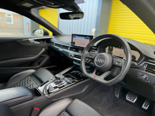 This 2021 Audi RS5 TFSI V6 Carbon Black presents an exceptional opportunity with its remarkably low mileage of just 23,750 miles. This striking example, finished in the Carbon Black trim, boasts a powerful 2.9 litre V6 petrol engine paired with a sophisticated four wheel drive system, ensuring dynamic performance and assured handling. As a Euro 6 compliant vehicle, it meets modern emissions standards. The RS5 is equipped with the desirable Comfort and Sound Package, which includes keyless entry for effortless access, a luxury Bang & Olfusen sound system for an immersive audio experience, and comprehensive parking assistance with a 360 degree camera. Further enhancing its practicality are the rear view camera, light and rain sensors for automatic headlight activation, Audi Side Assist for blind spot monitoring, and advanced Audi Matrix LED headlights complemented by dynamic LED indicators. The performance of this Audi RS5 is truly a standout feature, capable of accelerating from 0 to 60 miles per hour in a mere 3.9 seconds, demonstrating its exhilarating pace. This rapid acceleration, combined with its advanced four wheel drive, places it ahead of many comparable vehicles. Furthermore, its position within a low insurance group makes it a more accessible choice for many drivers, offering a compelling blend of performance, technology, and cost effectiveness. Comfort and Sound Package, 2 USB Charging Ports, 20in Alloy Wheels - 9.0J 5-Segment-Spoke, 6-Airbag System, Anti Theft Locking Wheel Bolts, Anti-Theft Alarm, Audi Beam, Audi Connect Infotainment Services (36 M, Audi Connect Safety and Service, Audi Matrix LED Headlights with LED Rear, Audi Phone Box with Wireless Charging, Audi Rings and Lettering - Glossy Black, Audi Side Assist, Audi Smartphone Interface, Audi Sound System, Audi Virtual Cockpit, Auto-Dimming Rear-View Mirror, Automatic Start-Stop with Coasting Funct, Brake Calipers Painted in Black with RS , Carbon Black Styling Pack, Cruise Control System with Speed Limiter, DAB Digital Radio Reception, Deluxe 3-Zone Electronic Climate Co