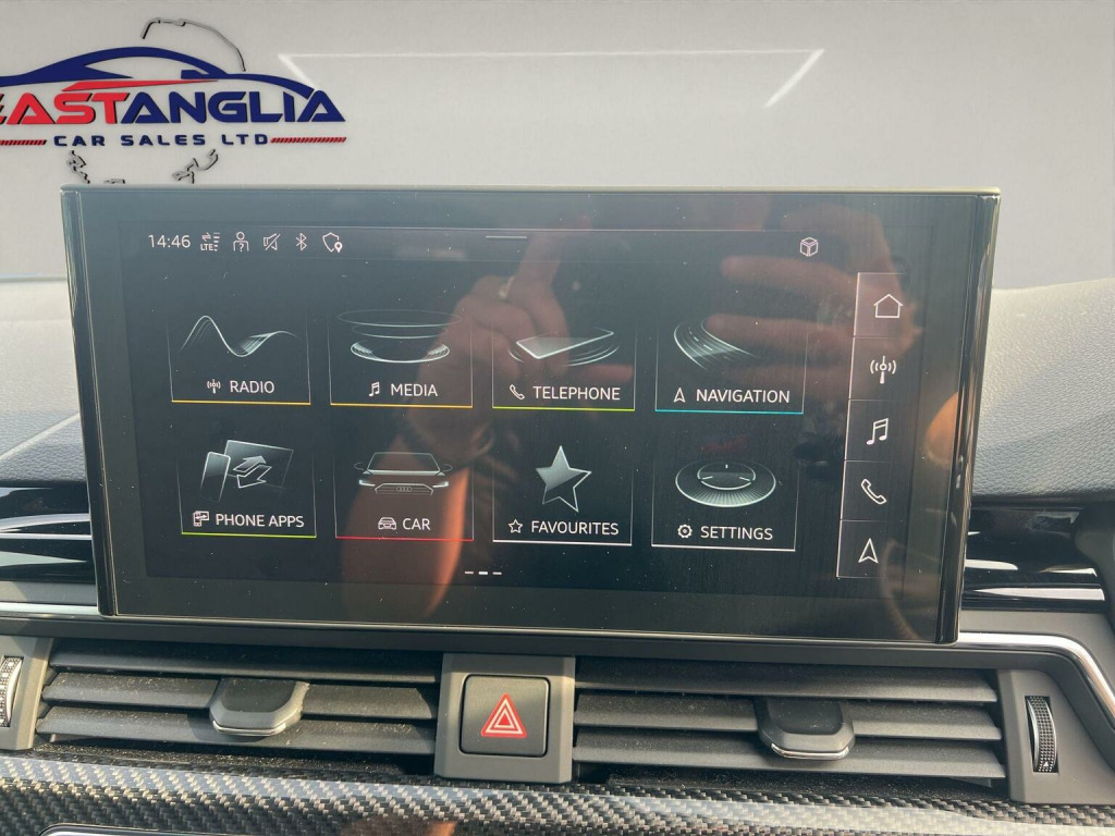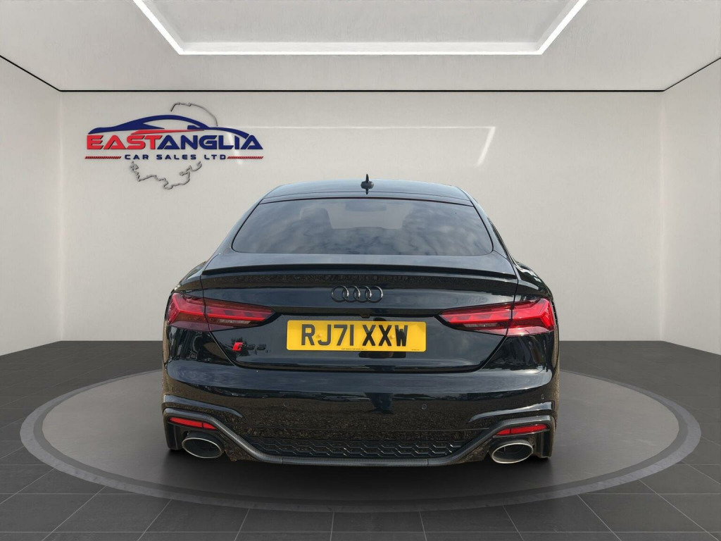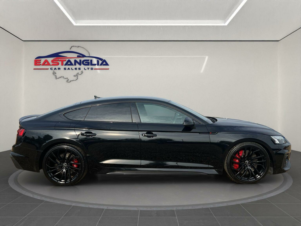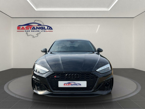 At East Anglia Car Sales we are proud to present this stunning 2022 Audi RS5 TFSI V6 Carbon Black is a remarkable example, boasting a single owner and an exceptionally low mileage of just 13,350 miles, This Euro 6 compliant, four wheel drive model features a powerful 2.9 litre petrol engine, capable of exhilarating acceleration from 0-62mph in a mere 3.9 seconds. The Carbon Black trim enhances its appeal, and it comes equipped with a comprehensive Driver Assistance Pack including adaptive cruise control, a Comfort and Sound Package with keyless entry and a luxury branded sound system, and advanced parking assistance with a 360 degree camera. Further enhancing convenience are the Storage and Luggage Compartment Package and a rear view camera system, complemented by front and rear parking sensors. The generous boot space offers practicality for everyday use and longer journeys, making this RS5 as versatile as it is dynamic. The inclusion of a 12 month MOT provided on purchase and a 3 month warranty offer peace of mind for the new owner. These carefully selected features and its outstanding provenance demonstrate how this Audi RS5 stands out from other vehicles in its class, offering a superior combination of performance, technology, and condition. Call now to arrange a viewing or book a test drive! , Part exchange is welcome and finance options are available. Any of our vehicles can be secured by a refundable deposit. This is only subject to a refund if the buyer pays the deposit prior to viewing and on viewing is not happy with the sale.