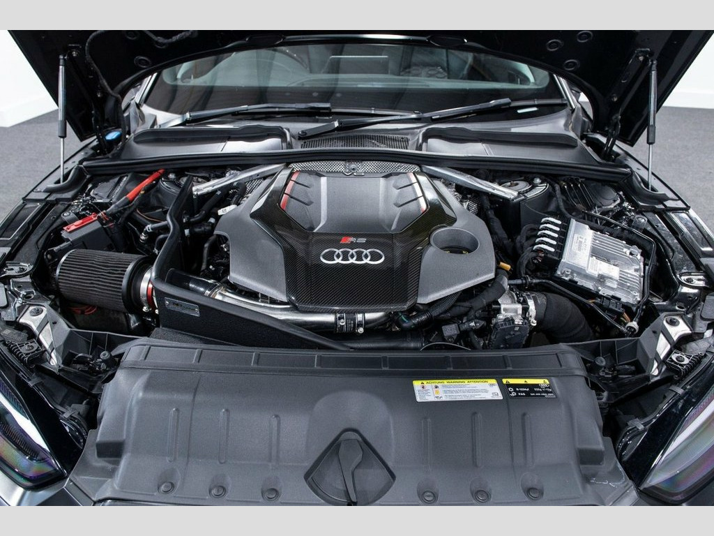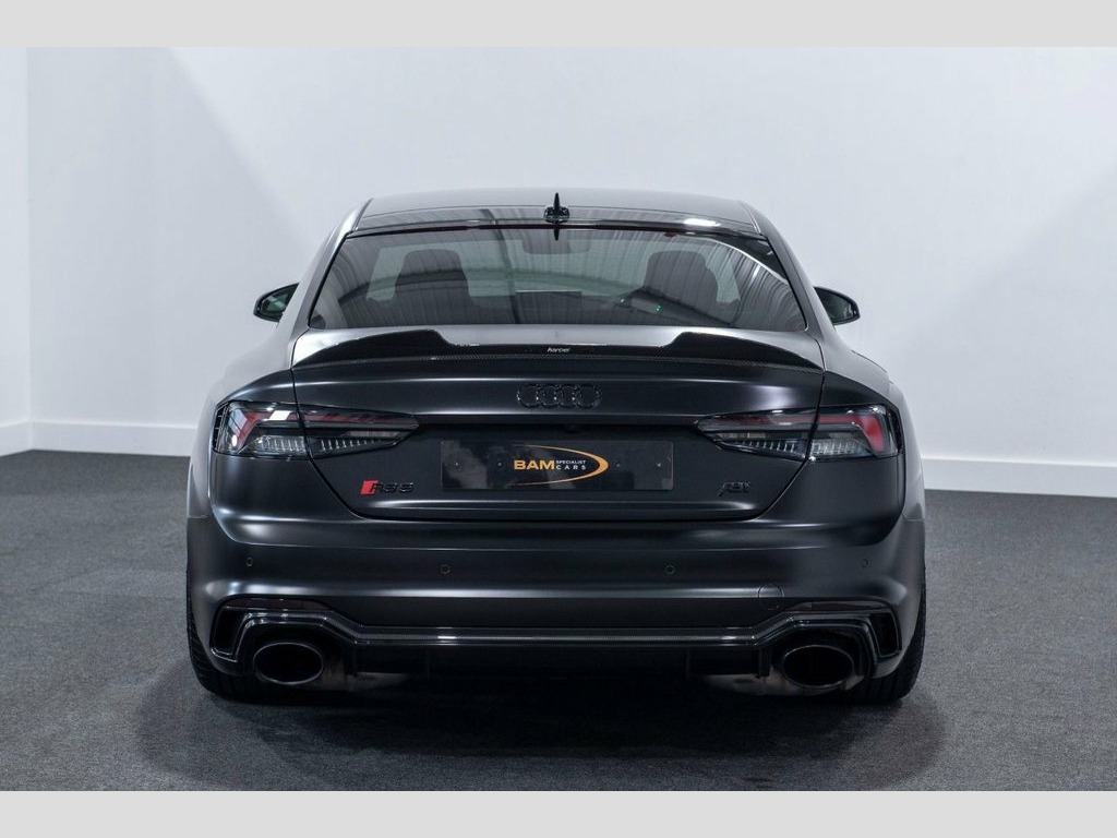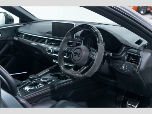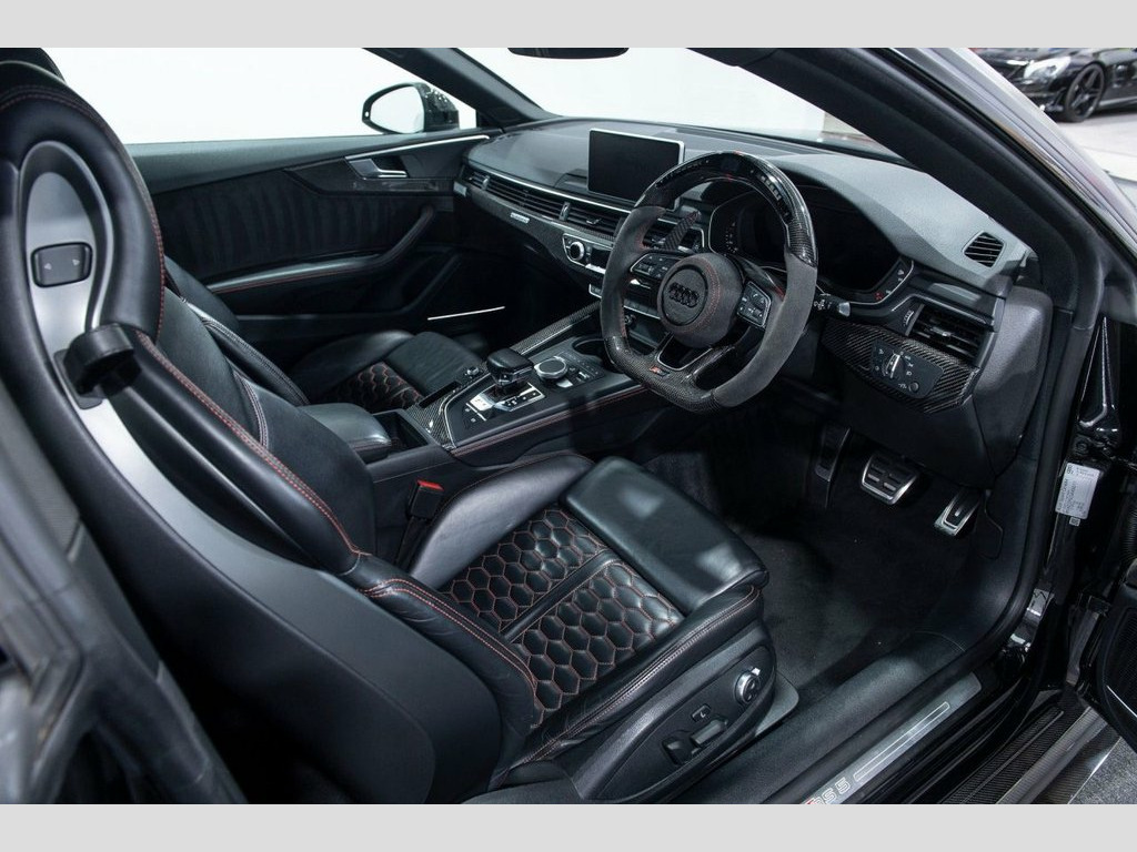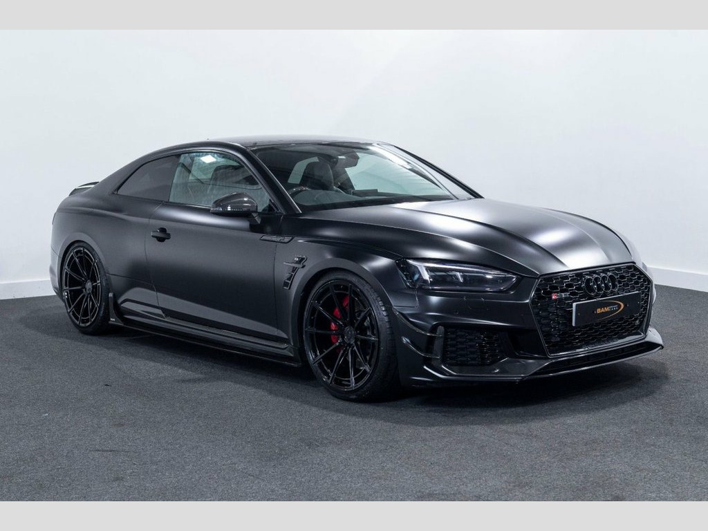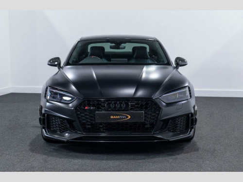 2018, Audi RS 5 2.9 Quattro V6 TFSI Carbon Edition, Showing just 37957 miles with comprehensive service history, This very special car has benefitted from a stage 2 Lichfield power upgrade to around 550 BHP (Dyno printouts supplied) with stage 3 gearbox ECS Downpipe and intake, Originally finished in Mythos black metallic paint now wrapped in black matt PPF, Exterior upgrades include, Carbon fibre roof panel, front bumper blades, Karbel rear spoiler and mirror casing, Front and rear parking sensors with reverse camera,20" Ispiri alloys with red calipers, ABT vents and badging, Darkened front and rear light lenses, ABT Sports exhaust, Rear privacy glass, Puddle lights, RS5 doorsill protectors, Interior includes, Alcantara multi function steering wheel with digital display, Quilted black leather seats with contrast red stitching, Electric operation, Memory function and massage function and RS headrest logo, Bang and Olufsen sound pack, Wireless charging, Variable view virtual cockpit, Touchscreen media system with integrated Satellite navigation, Bluetooth telephone preparation inc music streaming, CD player, DAB Radio, Keyless entry - stop/start, 3 zone climate control, Lane assist, Audi drive select, Interior ambient lighting and more Electrically Adjustable Front Seats with, Comfort and Sound Package, Mythos Black, Audi Virtual Cockpit, Brake Calipers - Red, Carbon Matt Aluminium Styling Pack, Carbon Roof, DAB Digital Radio Reception, Deluxe 3-Zone Electronic Climate Control, Electric Windows - Front, Electrically Adjustable Front Seats, Extended LED Interior Lighting Package -, Flat-Bottomed High Multi-function 3-Spok, Heated Front Seats, High-Beam Assist, Hill Hold Assist, Lumbar Support - Pneumatically Adjustabl, Privacy Glass, RS Audi Drive Select, RS Matrix LED Headlights with LED Rear L, RS Sports Exhaust System, RS Sports Suspension