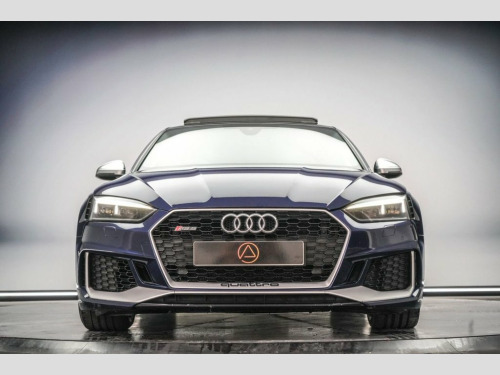 This Audi RS5 2.9 V6 Coupe is finished in Navarra Blue. STAND-OUT FEATURES - Panoramic Glass Sunroof | 20in Alloy Wheels - 5-Arm-trapezoid Design Forged in Silver | Electric Memory Heated Front Seats. Navarra Blue, Electrically Adjustable Front Seats with, Carbon Matt Aluminium Styling Pack, Privacy Glass, Panoramic Glass Sunroof, Brake Calipers - Red, 20in Alloy Wheels - 5-Arm-trapezoid Desi, 19in Alloy Wheels - 10-Spoke-Star Design, 6-Airbag System, ABS - Anti-Lock Braking System, Anti-Theft Alarm, Audi Connect Infotainment Services - 36 , Audi Connect Safety and Service, Audi Side Assist, Audi Smartphone Interface, Audi Sound System, Audi Virtual Cockpit, Auto-Dimming Rear-View Mirror, Cloth Headlining in Black, DAB Digital Radio Reception, Deluxe 3-Zone Electronic Climate Control, Door Mirrors - Electrically Folding - Ad, Door Mirrors - Matt Aluminium Look Housi, Door Sill Trims - Ill