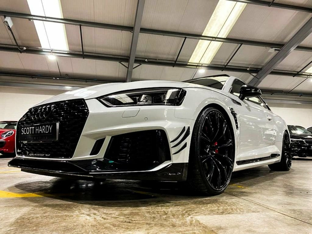 Scott Hardy are delighted to offer this stunning ABT RS5 for sale, the car is finished in Glacier white metallic with contrasting black optics pack, panoramic sunroof- TTE720 HYBRID TURBO- ABT INTERCOOLER- AWE AIR GATE INTAKE- AMYTRIX DOWNPIPES HI FLOW CATS- MILTEK NON RES EXHAUST- ECU STAGE 3 RE MAP 660 BHP 908NM- HIGHT PREASURE FUEL PUMP- 4 BAR MAP SENSORS- ENGINE MOUNT UPGRADES- TRANSMISSION MOUNT UPGRADE- GEARBOX TUNE- KW V3 COIL OVER SUSPENTION KIT- VOSSEN HF-2 ALLOY WHEELS 10.5 X 2- ABT SportsLine kit has been added including canards, side vents, rear lip spoiler, full carbon interior pack, virtual cockpit, front and rear parking sensors, with reverse camera, sat nav, Bluetooth phone and media prep, heated super sports seats finished in diamond stitched nappa leather /electrically adjustable with massage function. without exaggeration the best looking RS5 we have seen. for any further info please call us on 01625353322 19in Alloy Wheels - 10-Spoke-Star Design, 6-Airbag System, ABS - Anti-Lock Braking System, Anti-Theft Alarm, Audi Connect Infotainment Services - 36 , Audi Connect Safety and Service, Audi Side Assist, Audi Smartphone Interface, Audi Sound System, Audi Virtual Cockpit, Auto-Dimming Rear-View Mirror, Cloth Headlining in Black, DAB Digital Radio Reception, Deluxe 3-Zone Electronic Climate Control, Door Mirrors - Electrically Folding - Ad, Door Mirrors - Matt Aluminium Look Housi, Door Sill Trims - Illuminated with RS5 L, Electric Windows - Front, Electrically Adjustable Front Seats, Electromechanical Power Steering, First Aid Kit and Warning Triangle, Flat-Bottomed High Multi-function 3-Spok,