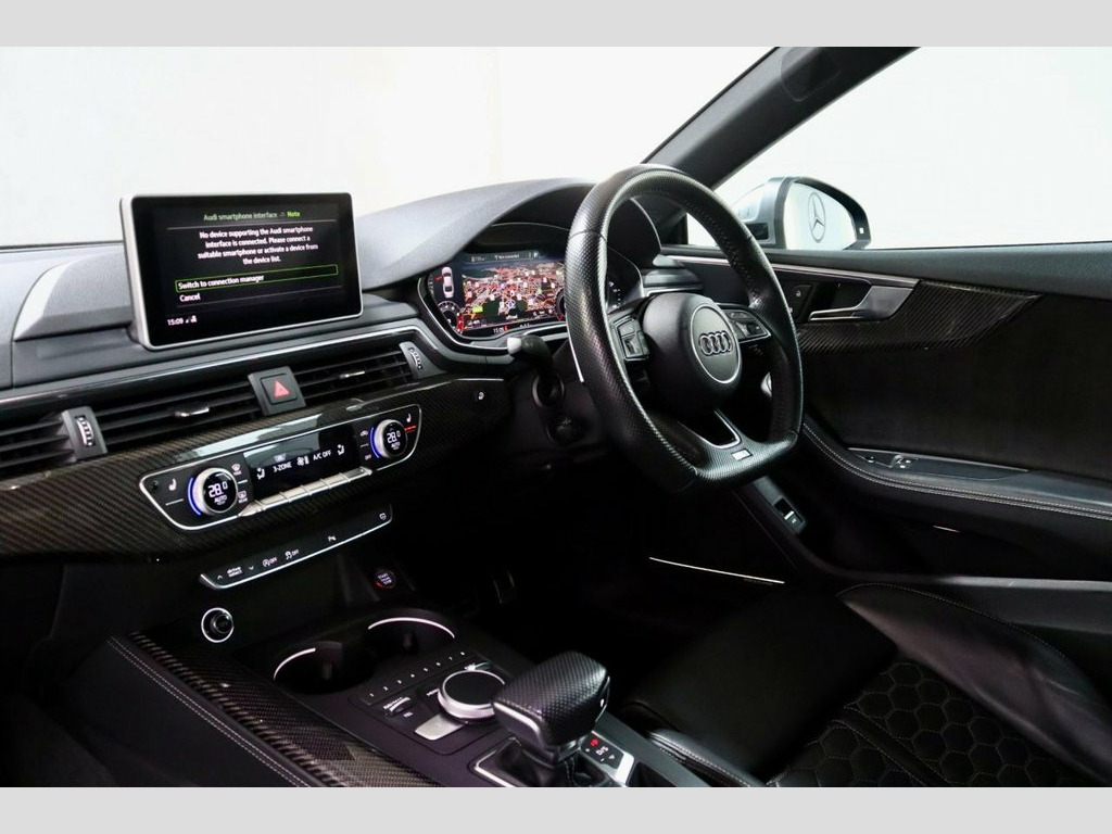 ***OVER 25K FACTORY UPGRADES*** NIMBUS GREY, PLEASE READ FULL SPEC, COMES WITH FULL AUDI MAIN DEALER SERVICE HISTORY, 2 KEYS, COMFORT/SOUND PACK, CARBON CERAMIC BRAKES, CARBON MATT ALUMINIUM STYLING PACK, RS sports suspension plus with Dynamic Ride Control (DRC) Top speed restriction increase to 174mph, RS SPORTS EXHAUST SYSTEM, CARBON INTERIOR/EXTERIOR PACK, DYNAMIC STEERING, HEAD-UP DISPLAY, BANG & OLUFSEN 3D SOUND AUDIO SYSTEM, Matrix LED headlights with LED rear lights and dynamic front and rear indicators, Audi side assist including Pre-sense rear, CARBON ENGINE COVER, REAR VIEW CAMERA, Audi Phone Box with wireless charging, PRIVACY GLASS, Electrically adjustable front seats with memory function for the driver's side, Door mirrors (folding with auto-dimming and memory function) Extended LED Interior Lighting Pack – multi-coloured, SAT NAV, BLUETOOTH, HEATED SEATS, FINE NAPPA LEATHER SUPERSPORT SEATS, VERY RARE 20in DIAMOND CUT FORGED ALLOYS, AUTO DIM/FOLDING MIRRORS, ABSOLUTELY PRISTINE UN-MODIFIED AND UN-ABUSED EXAMPLE, MUST BE ONE THE BEST SPEC'D RS5'S AVAILABLE, PLEASE CALL FOR FURTHER DETAILS 19in Alloy Wheels - 10-Spoke-Star Design, 20in Alloy Wheels - 5-Arm-trapezoid Desi, 6-Airbag System, ABS - Anti-Lock Braking System, Anti-Theft Alarm, Audi Connect Infotainment Services - 36 , Audi Connect Safety and Service, Audi Phone Box with Wireless Charging, Audi Side Assist, Audi Smartphone Interface, Audi Sound System, Audi Virtual Cockpit, Auto-Dimming Rear-View Mirror, Carbon Engine Cover, Carbon Matt Aluminium Styling Pack, Ceramic Brakes, Cloth Headlining in Black, Comfort and Sound Package, DAB Digital Radio Reception, Deluxe 3-Zone Electronic Climate Control, Door Mirrors - Electrically Folding - Ad, Door Mirrors - Folding with Auto-Dimming, Door Mirrors - Matt Aluminium Look H