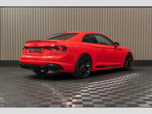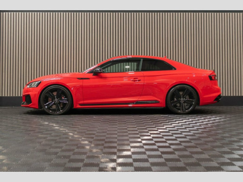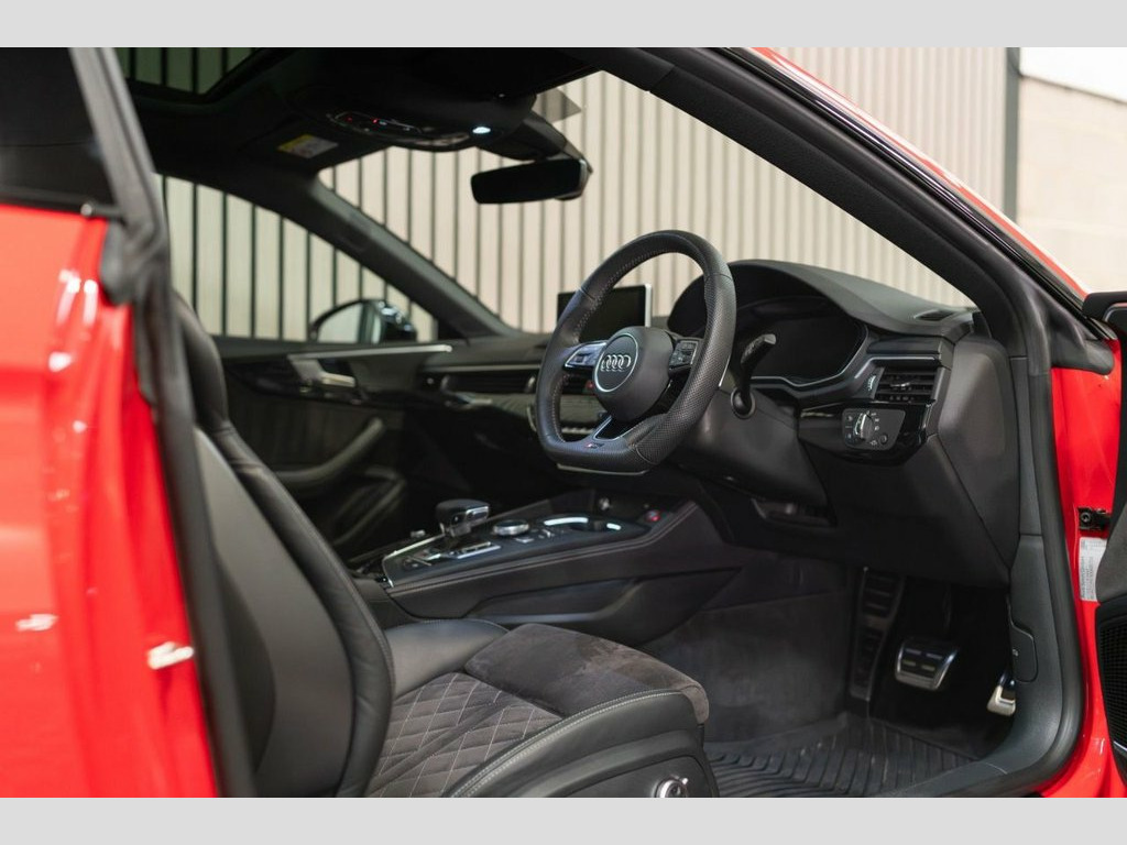 Introducing our stunning 3 owner from new Audi RS5 Sport Edition. This particular example has covered just 21,850 miles from new and has recently undergone a full service and healthcheck from an Audi main dealer. This vehicle comes inclusive of a comprehensive 12 month warranty. Specified from new with a fantastic factory specification including: Misano Red Pearlescent Paint, 20" Gloss Black 5 Arm-Spoke Alloy Wheels, Black Quilted Interior, Electronic Tilt / Slide Glass Panoramic Roof, Sports Exhaust, Bang & Olufsen Stereo, Massaging Seats, Flat Bottom Sports Steering Wheel, Audi Virtual Cockpit With 'RS' Specific Displays, Reversing Camera, Smart Phone Connectivity Along With Charging Mat, Comfort and Sound Pack, Black Styling Pack, Gloss Black Interior Trim,  Leather-Alcantara - RS Super Sports with, Misano Red, Comfort and Sound Package, 20in Alloy Wheels - 5-Arm Peak Design Gl, 6-Airbag System, ABS - Anti-Lock Braking System, Anti Theft Locking Wheel Bolts, Anti-Theft Alarm, Audi Connect Infotainment Services - 36 , Audi Connect Safety and Service, Audi Phone Box with Wireless Charging, Audi Side Assist, Audi Smartphone Interface, Audi Sound System, Audi Virtual Cockpit, Auto-Dimming Rear-View Mirror, Black Styling Package, Brake Calipers Painted in Black with RS , Cloth Headlining in Black, DAB Digital Radio Reception, Deluxe 3-Zone Electronic Climate Control, Door Handles - Body Coloured, Door Mirrors - Electrically Folding - Ad, Door Sill Tr