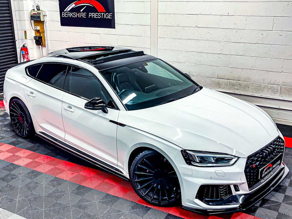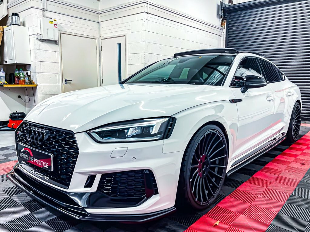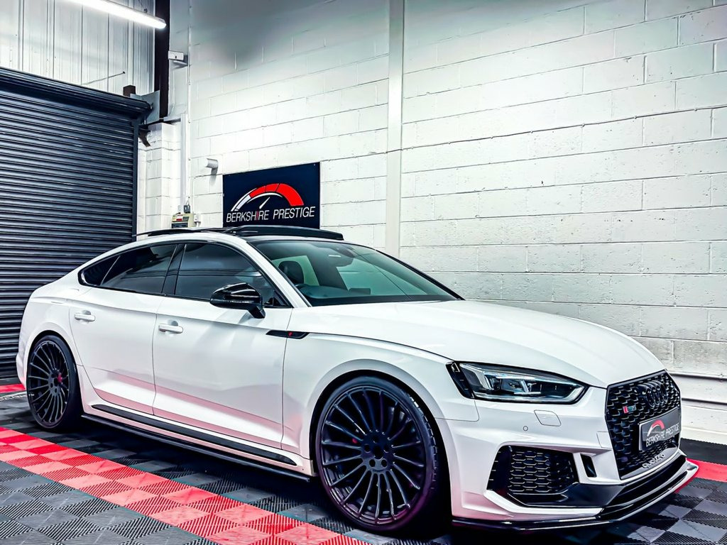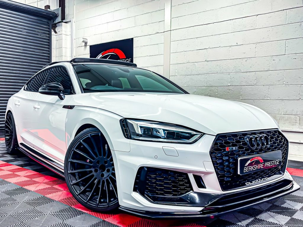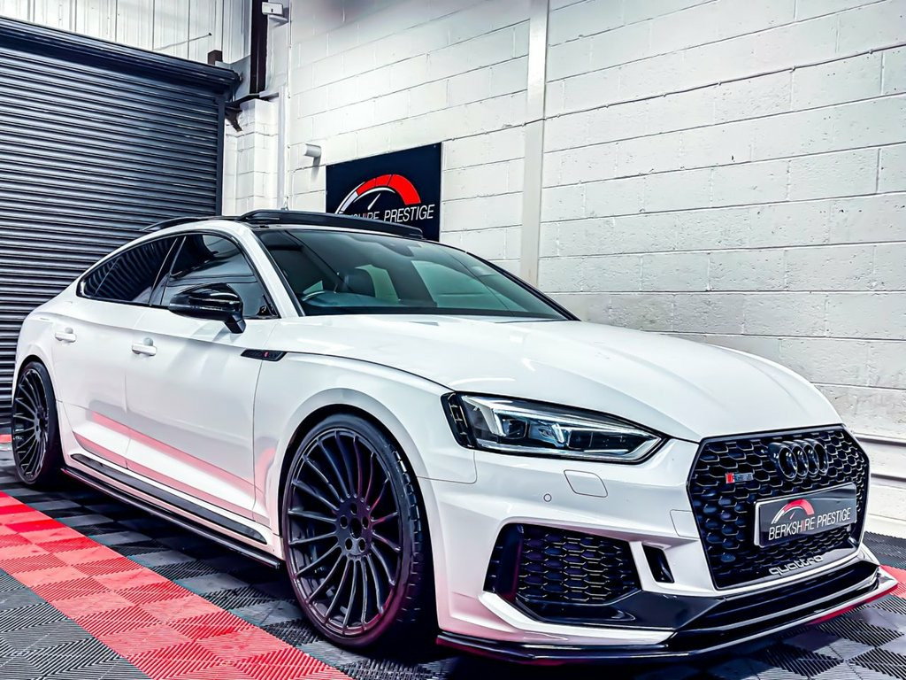ONE OF A KIND AUDI RS5 FINISHED IN WHITE, PANORAMIC GLASS SUNROOF, COMFORT AND SOUND PACK, RS SPORTS EXAUST, 21 INCH HAMAN ALLOY WHEELS, MAXTON DESIGN BODYKIT, VIRTUAL COCKPIT, APPLE CAR PLAY, SAT NAV, REVERSE CAMERA, PLUS MUCH MORE. FULL SERVICE HISTORY 20in Alloy Wheels - 5-Arm Peak Design Gl, 6-Airbag System, ABS - Anti-Lock Braking System, Anti Theft Locking Wheel Bolts, Anti-Theft Alarm, Audi Connect Infotainment Services - 36 , Audi Connect Safety and Service, Audi Phone Box with Wireless Charging, Audi Side Assist, Audi Smartphone Interface, Audi Sound System, Audi Virtual Cockpit, Auto-Dimming Rear-View Mirror, Black Styling Package, Brake Calipers Painted in Black with RS , Cloth Headlining in Black, DAB Digital Radio Reception, Deluxe 3-Zone Electronic Climate Control, Door Handles - Body Coloured, Door Mirrors - Electrically Folding - Ad, Door Sill Trims - Illuminated with RS5 L, Electric Windows - Front, Electrically Adjustable F