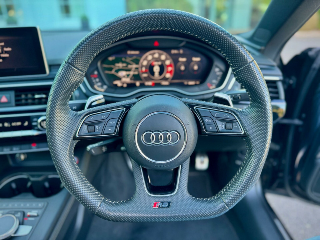 GHOST ALARM+FULL STARLIGHT ROOF + FULL CUSTOM AMBIENT LIGHTING + BACKBOX DELETE SPORTS EXHAUST + CAMELEON TINTED WINDSCREEN + MAXTON BODYKIT (SPOILER, DIFFUSER, SIDE SKIRTS) + B&O ADVANCED SURROUND SOUND SYSTEM + APPLE CARPLAY + RED RS BRAKE CALIPERS + GHOST IMMOBILISER + WIRELESS CHARGING + POWDER COATED BLACK ALLOYS + REVERSE CAMERA + PANORAMIC SUNROOF + PRIVACY GLASS - STUNNING LOW MILEAGE EXAMPLE WITH FULL SERVICE HISTORY AND TASTE FULL MODIFICATIONS - FINANCE FROM 8.9% APR - 6 MONTHS WARRANTY WITH ALL OUR VEHICLES - PART EXCHANGE WELCOME - ONLY AT A&S CARS LIMITED. 20in Alloy Wheels - 5-Arm Peak Design Gloss Milled Aluminium in Anthracite Matt Black, 6-Airbag System, ABS - Anti-Lock Braking System, Anti Theft Locking Wheel Bolts, Anti-Theft Alarm, Audi Connect Infotainment Services - 36 Month Trial, Audi Connect Safety and Service, Audi Phone Box with Wireless Charging, Audi Side Assist, Audi Smartphone Interface, Audi Sound System, Audi Virtual Cockpit, Auto-Dimming Rear-View Mirror, Black Styling Package, Brake Calipers Painted in Black with RS 5 Logo at the Front, Cloth Headlining in Black, DAB Digital Radio Reception, Deluxe 3-Zone Electronic Climate Control, Door Handles - Body Coloured, Door Mirrors - Electrically Folding - Adjustable and Heated with Integrated LED Side Indicators and Kerb-view Function for Passenger Side, Door Sill Trims - Illuminated with RS5 Logo, Electric Windows - Front, Electrically Adjustable Front Seats, Electromechanical Power Steering, First Aid Kit and Warning Triangle, Flat-Bottomed High Multi-function 3-Spoke Leather Sport Steering Wheel with RS Badging, Front Centre Armrest, Front and Rear Floor Mats, High-Beam Assist, Hill Hold Assist, Inlays - Piano Finish - Black, LED Headlights with RS Air Intake, LED Interior Light Package, Leather Door Armrests and Knee Pad, Light and Rain Sensor, MMI Navigation Plus including MMI Touch, Multi Collision Brake Assist, Panoramic Glass Sunroof, Pedals in Stainless Steel, Pneumatic Massage Function, Pop-Up Bonnet for Pedestrian Protection, Pre-Sense City, Privacy Glass with Rear Acoustic Glazing, RS Audi Drive Select, RS Body Styling, RS Dual-branch Chrome Tailpipes with Large Oval Pipes Each on Left and Right, RS Model Enhanced Braking System, RS Sports Exhaust System, RS Sports Suspension, RS-Specific Gear Lever Knob in Perforated Leather with Contrast Stitching, RS5 Badges on Grille - Front Wing Panels and Rear, Remote Control Key with RS Emblem, Seat Belt Monitoring, Split-Folding 3-Seater Rear Seat Bench in 3 Parts - 40-20-40, Tool Kit, Windscreen with Acoustic Glazing, quattro with Sports Differential, Comfort and Sound Package, UPGRADED SPORTS EXHAUST, GHOST IMMOBILISER, PAINTED BRAKE CALIPERS, CAMELEON TINT WINDSCREEN, APPLE CAR PLAY, STARLIGHT ROOF, FULL AMBIENT LIGHTING UPGRADE, B&O ADVANCED SURROUND SOUND SYSTEM, POWDER COATED BLACK ALLOYS, PANORAMIC SUNROOF, PRIVACY GLASS, REVERSE CAMERA, WIRELESS CHARGING, FULL MAXTON BODYKIT, Extended LED Interior Lighting Package - Multi-Coloured, 20in Alloy Wheels - 5-Arm-trapezoid Design Forged in Anthracite Black - Diamond Cut Finish. Full dealership history