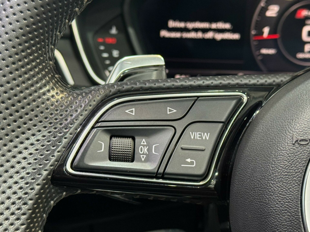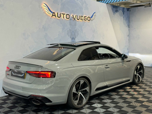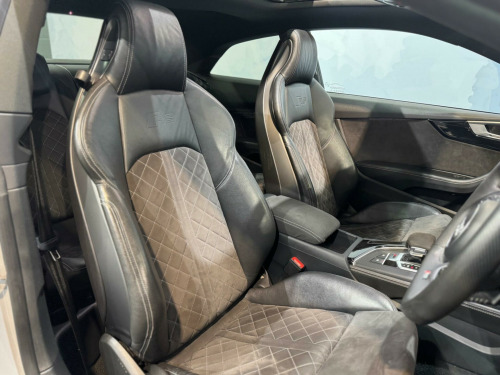 This 2019 Audi RS5 TFSI V6 Sport Edition offers an exceptional blend of performance and refinement, boasting a powerful 2.9 litre petrol engine and a sophisticated four wheel drive system. As a Euro 6 compliant vehicle, it meets modern emissions standards. This Sport Edition comes equipped with a range of desirable features, including Deluxe 3-Zone Electronic Climate Control for personalised comfort, Audi Side Assist for enhanced safety by monitoring blind spots, and a Light and Rain Sensor that automatically adjusts headlights and wipers. Furthermore, the Audi Phone Box provides convenient wireless charging for your mobile device, and the LED Headlights with RS Air Intake ensure excellent visibility.The RS5 truly stands out with its impressive acceleration, achieving 0-62mph in a remarkable 3.9 seconds, demonstrating its superior performance compared to many vehicles in its class. This model also benefits from a low insurance group, making it a more economical choice for owners. Practicality is not overlooked, with a large boot space offering ample room for luggage or shopping. These highlights collectively underscore the RS5's position as a compelling and capable performance car. mfort and sound package, 20in alloy wheels - 5-arm peak design gloss milled aluminium in anthracite matt black, 6-airbag system, abs - anti-lock braking system, anti theft locking wheel bolts, anti-theft alarm, audi connect infotainment services - 36 month trial, audi connect safety and service, audi phone box with wireless charging, audi side assist, audi smartphone interface, audi sound system, audi virtual cockpit, auto-dimming rear-view mirror, black styling package, brake calipers painted in black with rs 5 logo at the front, cloth headlining in black, dab digital radio reception, deluxe 3-zone electronic climate control, door handles - body coloured, door mirrors - electrically folding - adjustable and heated with integrated led side indicators and kerb-view function for passenger side, door sill trims - illuminated with rs5 logo, electric windows - front, electrically adjustable front seats, electromechanical power steering, first aid kit and warning triangle, flat-bottomed high multi-function 3-spoke leather sport steering wheel with rs badging, front centre armrest, front and rear floor mats, high-beam assist, hill hold assist, inlays - piano finish - black, led headlights with rs air intake, led interior light package, leather door armrests and knee pad, light and rain sensor, mmi navigation plus including mmi touch, multi collision brake assist, panoramic glass sunroof, pedals in stainless steel, pneumatic massage function, pop-up bonnet for pedestrian protection, pre-sense city, privacy glass with rear acoustic glazing, rs audi drive select, rs body styling, rs dual-branch chrome tailpipes with large oval pipes each on left and right, rs model enhanced braking system, rs sports exhaust system, rs sports suspension, rs-specific gear lever knob in perforated leather with contrast stitching, rs5 badges on grille - front wing panels and rear, remote control key with rs emblem, seat belt monitoring, split-folding 2-seater rear seat bench in 3 parts - 40-20-40 with rear centre armrest, tool kit, windscreen with acoustic glazing, quattro with sports differential