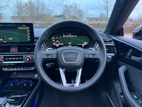 2022 (72) Audi RS5 2.9 TFSI V6 Vorsprung Sportback Quattro - 59,500 miles - £47,489Finished in Black with S Super Sport Fine Nappa Leather seats in Black, this high-spec Audi RS5 Vorsprung Sportback offers the perfect balance of luxury, technology, and performance. Backed by a full Audi service history.This RS5 is a Vorsprung model, Audi's highest specification, offering an exceptional level of standard equipment. Vorsprung trim includes Quattro with sports differential, panoramic glass roof, Bang & Olufsen 3D sound system, advanced driver assistance systems, and a host of luxury and RS-specific features, making it the most comprehensively equipped RS5 available.___________Spec Highlights Include:•Driver Assistance Pack - Tour•Comfort & Sound Pack - incl. Bang & Olufsen 3D Sound + Keyless Entry•Vision Pack + Light & Vision Pack•Matrix LED Headlights with Dynamic Front & Rear Indicators•Head-Up Display • Quattro with Sports Differential • 360 camera•Camera-Based Traffic Sign Recognition•Audi Side Assist + Rear Cross Traffic Assist (Pre-Sense Rear)•Flat-Bottomed Multi-Function Steering Wheel (Trimmed Leather)•Audi Virtual Cockpit•Extended LED Interior Lighting Pack (Multi-Coloured)•Electrically Adjustable Front Seats•Massage Front Seats with Electric Lumbar Supports •Heated Folding Door Mirrors - Auto-Dimming + Memory•Privacy Glass•Panoramic Glass Sunroof • Hill Hold Assist?Dealer Benefits Included:•ULEZ Compliant•Full Service History (just serviced at Audi Main Dealer)•12 Months MOT•6-Month Warranty Included (extendable up to 3 years)•AA Approved Dealer with 6 Months Roadside Cover•£0 Deposit Finance Options•HPI Clear (report available)•Competitive Part Exchange Welcome•Nationwide Delivery AvailableThis is a rare spec RS5 that ticks all the boxes, luxury, looks, tech, and Quattro performance. Contact us today to book a viewing, secure finance, or arrange delivery, we're here to help every step. usb charging ports, 20in alloy wheels - 9.0j 5-segment-spoke - evo style design - in matt titanium look - high sheen finish - audi sport, 6-airbag system, anti theft locking wheel bolts, anti-theft alarm, audi beam, audi connect infotainment services (36 month subscription from new), audi connect safety and service, audi connect with amazon alexa integration, audi side assist, audi smartphone interface, audi virtual cockpit, auto-dimming rear-view mirror, automatic start-stop with coasting functionality and efficiency programme, black styling package, bluetooth interface, brake calipers painted in black with rs 5 logo at the front, cloth headlining in black, comfort and sound package, dab digital radio reception, deluxe 3-zone electronic climate control, door handles - body coloured, door mirrors - heated-electrically adjustable-folding-auto-dimming, door sill trims - illuminated with rs5 logo, driver assistance pack - tour, dynamic steering, esc - electronic stabilisation control inc abs - asr and edl, electric windows - front, electrically adjustable front seats, email - calendar and text messages can be displayed on your vehicles mmi, exterior mirror housings in high-gloss black, first aid kit and warning triangle, front centre armrest, front and rear floor mats, head-up display, heated front and outer rear seats, hill hold assist, isofix child seat mounting and top tether, inlays - piano finish - black, keyless go, led interior light package, leather door armrests and knee pad, leather steering wheel in 3-spoke design with multi-function plus and heating with rs badging, light and rain sensor, mmi navigation plus with mmi touch, matrix led headlights with audi laser light - dynamic light sequencing - dynamic indicator, multi collision brake assist, panoramic glass sunroof, park assist, pedals in stainless steel, pop-up bonnet for pedestrian protection, pre-sense city, privacy glass and front acoustic glazing, rs audi drive select, rs dual-branch chrome tailpipes with large oval pipes each on left and right, rs model enhanced braking system, rs sports exhaust system, rs suspension plus with dynamic ride control - drc, rs-specific gear lever knob in perforated leather with contrast stitching, rs5 badges on grille - front wing panels and rear, remote control key with rs emblem, seat belt monitoring, split-folding 3-seater rear seat bench in 3 parts - 40-20-40, tool kit, top speed restriction increase to 174mph, tyre repair kit, voice control, windscreen with acoustic glazing, quattro with sports differential, fine nappa leather - rs super sports with pneumatic massage function - black with rock grey honeycomb contrast stitching, audi warranty - covering you for up to 5 years or 90000 miles - whichever comes first, ceramic brakes