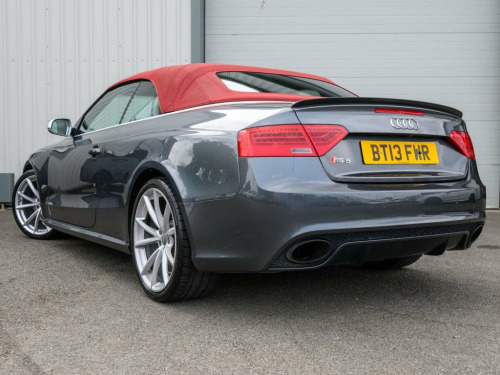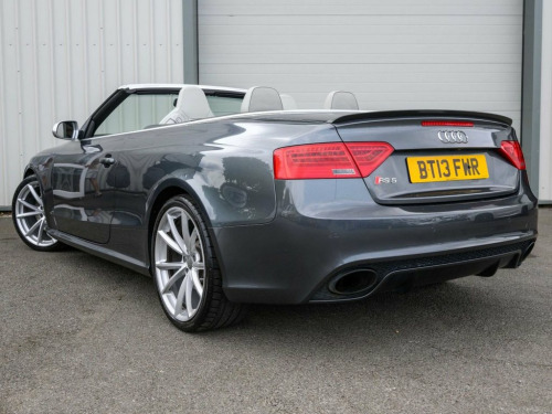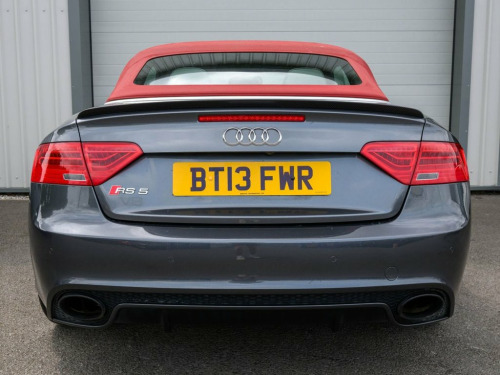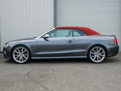 Sagitta is delighted to present for sale this stunning Audi RS5 4.2 V8 Cabriolet Automatic in Metallic Daytona Grey with a Full Ivory Leather Interior with a Contrast Red Hood, the car benefits from the following specifications, HDD Satellite Navigation System, Bluetooth, Voice Control, DAB Radio, Multi-Function Flat Bottomed Steering Wheel, Cruise Control, Park Distance Control Front and Rear,, Audi Sound System, Ambient Lighting, Electric Heated Front Seats, RS5 Embossed on to the Front Headrests, Carbon Interior Finish, Interior Light Package, Wind Deflector, 20" V Spoke Alloys, Rear Spoiler, LED Running Lights, Service History with Audi at 18,427 miles, 20,743 miles, 33,175 miles, 42,806 miles, 54,113 miles, 60,594 miles, and a Service at an Independent on the 18.02.2026 at 77,214 miles,Gearbox Service carried out at Audi on the 19.12.2025, 4 New Goodyear Tyres fitted on the 24.12.2025 , MOT till 16.02.2027, 2 Keys, More photos are available on our website, Part Exchange Welcome, all our cars come with a 6-month Warranty and 6 months of Roadside Assistance. Nationwide delivery is available, please contact us for a quote. Deposits can be taken over the phone. Payments can be made via bank transfer and Finance applications can be completed online. Whilst every effort is made to ensure the above details are correct, there may be some discrepancies, so please make sure to contact us for exact specifications and history on this vehicle. The vehicle specification displayed 19in Alloy Wheels - 10-Spoke Design, 6.5in Display Screen, ABS - Anti-Lock Braking System, AMI - Audi Music Interface, Adaptive Lights, Airbags - Driver, Airbags - Front Passenger, Airbags - Front Side, Alarm - Thatcham Category 1, Aluminium-Effect Door Mirror Housings, Audi Drive Select, Audi Parking System Plus, Audi Sound System, Auto-Dimming Rear-View Mirror, Automatic Wipers with Rain Sensor, Car Jack, Climate Control - Electronic 3-Zone, Colour Drivers Information System - DIS, Cruise Control, DAB Digital Radio, Door Mirrors - Electrically Adjustable a, ESP - Electronic Stability Programme, Electric Windows - Front and Rear, Electromechanical Parking Brake, Electromechanical Power Stee