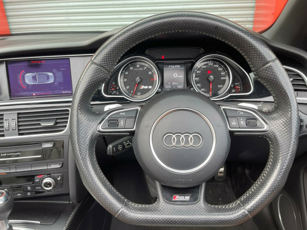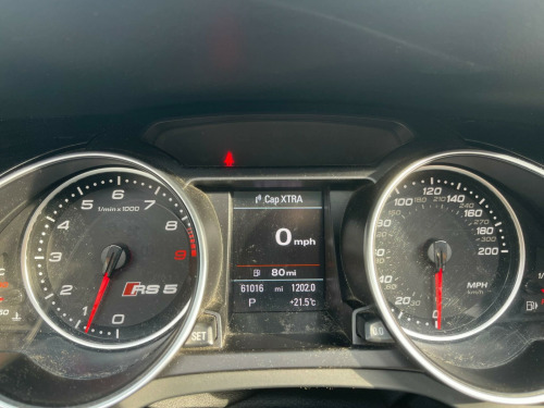 Audi RS5 4.2 FSI V8 Petrol Automatic - Just Arrived in Mint ConditionWe are excited to offer this stunning Audi RS5 4.2 FSI V8 Petrol Automatic in sleek black, just arrived and in immaculate condition for its age. This is a rare opportunity to own a high-performance vehicle that not only looks awesome but drives like a dream. With its combination of powerful engineering, premium features, and outstanding condition, this RS5 is truly one of a kind.Key Features:Mint Condition for Its Age: This Audi RS5 has been meticulously maintained by its previous owner, and it shows. The exterior is flawless with its rich black paintwork, and the interior is in fantastic condition, showcasing the car's care and attention to detail.Exhilarating Performance: Under the bonnet, the 4.2 FSI V8 engine offers a thrilling driving experience. Paired with an automatic transmission and Audi's Quattro all-wheel-drive system, the RS5 delivers superb power, acceleration, and handling. Whether you're cruising or pushing it to the limit, it's an absolute joy to drive.Lots of Extras: This RS5 comes loaded with high-end features, including upgraded 20-inch alloy wheels that enhance its stance, a flat-bottom steering wheel for a sportier feel, and many more premium extras. These upgrades were carefully selected by the previous keeper, making this particular RS5 truly stand out.2 Keys & Full Book Packs: With two keys and the complete set of original book packs, you can rest assured this car has been properly cared for throughout its life.HPI Clear & Low Mileage: This RS5 is HPI clear, ensuring it has a clean history. Given its condition and low mileage, it's a rare find and a fantastic investment.Why Choose the Audi RS5?The Audi RS5 is a true performance icon. With its legendary 4.2 FSI V8 engine, Quattro all-wheel-drive system, and aggressive yet elegant styling, the RS5 provides an unmatched driving experience. It blends the thrill of performance with the luxury of a high-end Audi, making it the perfect car for anyone who appreciates power, precision, and style., v power socket, 19in alloy wheels - 10-spoke design, 20gb jukebox for storing and managing music files - wma and mp3 format, abs - anti-lock braking system, ami - audi music interface, asr - anti slip regulation, active door reflectors, adaptive lights, air conditioning - deluxe automatic at the rear, airbags - driver, airbags - front passenger, airbags - front side, alarm - thatcham category 1, amplifier - 180 watt, audi drive select, audi parking system plus, audi sound system speaker package, auto-dimming rear-view mirror, automatic wipers with rain sensor, bi-xenon headlights, cd player, cables x2 - mp3 connection including ipod, car jack, colour drivers information system - dis, cruise control, deluxe 3-zone climate control, display screen colour tft 7in high resolution, door mirrors - electrically adjustable and heated, door mirrors - matt aluminium look housings, dynamic route guidance - tmc, esp - electronic stability programme, electric windows - front and rear, electromechanical parking brake, electromechanical power steering, entrance lights, european navigation data, exhaust tailpipe - two oval, first aid kit, front centre armrest, front passenger airbag deactivation switch, front and rear footwell lighting, fully automatic hood, glovebox - illuminated, hard drive - 40gb, headlight washers, headlights - automatic dynamic range control, headlights - coming-leaving home function, headlights - light sensor, high performance braking system - rs models, isofix child seat preparation front and rear, illuminated vanity mirrors, illuminated vents and internal door controls, inlays - carbon, interior light package, led daytime running lights, led rear lights, leather armrests, leather door armrests, manual height adjustment for front seats, mobile telephone preparation - bluetooth interface, parking sensors - front, pollen filter, quattro sports differential, rs body styling, rs instrument panel, rs sports suspension, radiator grille - single frame, radiator grille frame - matt aluminium look, rear parking sensors, rear reading lights, remote boot release, remote central locking, rest recommendation system, sd card reader x2, satellite navigation system with mmi 3g - hdd-based, seats - front electric adjustment, seats - front electric height adjustment, seats - front sports with electric lumbar support, seats - rs super sports, single cd-dvd player, speakers x10, split-folding rear seats, spoiler - fixed carbon finish, steering wheel - 3-spoke perforated leather/multifunction/flat bottomed/shift paddles, steering wheel - multi-function, subwoofer, through-load facility, tool kit, tyre mobility system, tyre pressure monitoring system, warning triangle, wind deflector, window surrounds - aluminium