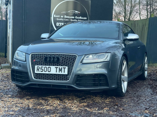 This Audi RS5 4.2 FSI V8 S Tronic quattro is a true performance coupe that delivers breathtaking power, unmistakable sound, and everyday usability. Powered by the legendary naturally aspirated 4.2-litre V8, it produces an exhilarating driving experience paired perfectly with the lightning-fast S Tronic automatic gearbox and Audi’s renowned quattro all-wheel-drive system for exceptional grip and confidence in all conditions.The RS5’s aggressive yet refined styling ensures it stands out wherever it goes, with its wide stance, sculpted bodywork, and signature RS detailing. Inside, the cabin offers a premium driving environment, combining luxury materials, RS sports seats, and a driver-focused layout that reflects Audi’s attention to detail and quality craftsmanship.On the road, this RS5 feels as special as it looks. The V8 soundtrack is addictive, acceleration is relentless, and handling is precise, making every journey an event whether cruising or pushing on. Despite its performance credentials, it remains comfortable and composed, perfectly suited to both daily driving and weekend enjoyment.This is a rare opportunity to own a naturally aspirated V8 RS model, increasingly sought after by enthusiasts and collectors alike. A superb example of Audi’s performance engineering, this RS5 offers an exciting blend of power, luxury, and presence that few cars can match.. 12V Power Socket, 19in 5Spoke aero design Alloy Wheels, 19in Alloy Wheels - 5-Spoke Aero Design, ABS - Anti-Lock Braking System, Acoustic Parking System - Rear, Adaptive Lights, Airbags - Driver, Airbags - Front Passenger, Airbags - Front Side System, Airbags - Sideguard Curtain, Alarm - Thatcham Category 1, Audi Drive Select, Audi Parking System Plus, Audi Sound System with 10 Speakers, Automatic Wipers with Rain Sensor, Bi-Xenon Headlights, Carbon Atlas inlays, Climate Control - Electronic 3-Zone, Concert Radio & CD player with MP3 SD card reader & Aux input socket, Concert Radio - MP3-CD Player, Door Mirrors - Electrically Adjustable and Heated, Drive select with Damper Control, Drivers Information System - DIS, ESP - Electronic Stability Programme, Electric Windows - Front, Electrically Adjustable 4-Way Lumbar Support, First Aid Kit, Front Centre Armrest, Front Sport Seats, Headlights - Automatic Adjustment, Headlights Washers, High Performance braking System, ISOFIX child seat preparation Front and Rear with passenger airbag deactivation switch, Inlays - Carbon, Matt brushed Aluminium inlay, Piano Black finish inlay, Power Steering - Servotronic Speed-Dependent, Remote Central Locking, Seats - Front Electric Adjustment, Split-Folding Rear Seats, Stainless Steel mesh & Piano Black inlay, Steering Wheel - Leather/Multifunction/Flat Bottomed/Aluminium Look Paddle Shift, Steering Wheel - Multi-function, Through-Load Facility, Tyre Pressure Monitoring System. Part service history