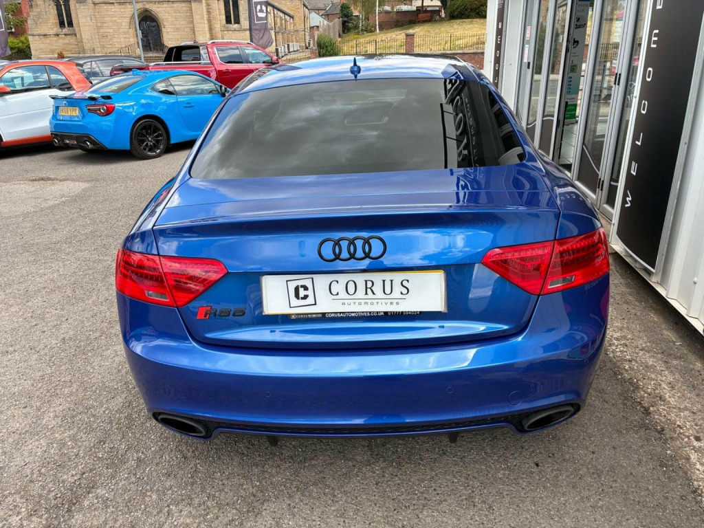 This 2013 Audi RS5 4.2 FSI V8 S Tronic quattro Euro 5 2dr Coupe is currently available for £18,498 in Worksop Nottinghamshire with Petrol engine and Auto Clutch Manual gearbox. For more information or to arrange a viewing, click here to send us an email using form below.
