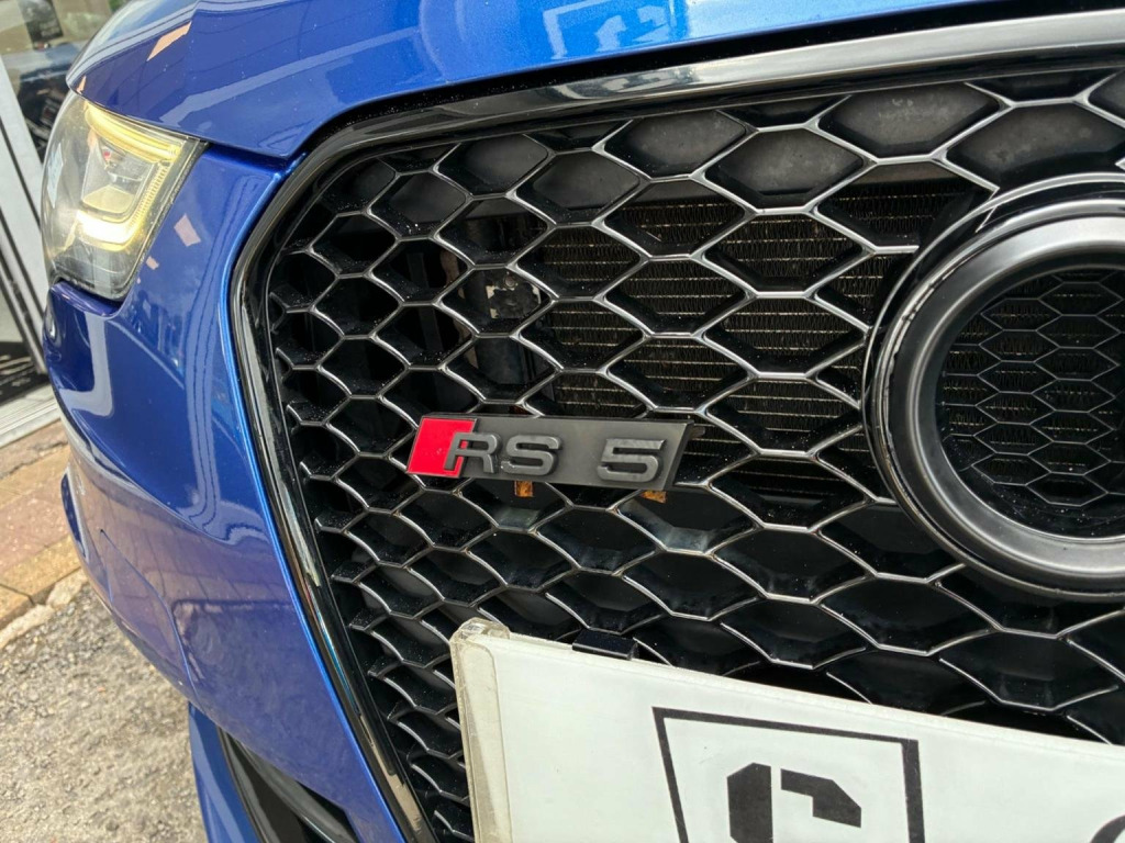 With only 67710 miles on the clock, this 2013 Audi RS5 is a rare find. The RS5, with its powerful 4.2L petrol engine and four-wheel drive, represents a superb blend of performance and style. This particular model, the FSI V8 variant, comes equipped with impressive features, including striking 20in Alloy Wheels with a 5-Arm Rotor Design in Titanium Look, as well as standard 20in Alloy Wheels with a 5-Arm Rotor Design. Electrically folding door mirrors add convenience, while the Sound Package and CD Changer enhance the in-car entertainment experience. This RS5 stands out from the crowd with its low mileage, especially for a vehicle of its age, offering reassurance of its well-maintained condition. It also falls into a low insurance group, which means you could save money on your premiums. The large boot space is another advantage, providing ample room for luggage, shopping, or sports equipment. Finally, the cars impressive acceleration, achieving 0-62mph in just 4.5 seconds, demonstrates its exceptional performance capabilities. This car comes with full service history and has just had a fresh service by ourselves and a 200 point health check in our workshop. Included in the preparation we also do a full electronic diagnostic health check with a printout for peace of mind. We have also had the car through our bodyshop for inspection and quality checks, All our cars come fully valeted including a full polish and wax. Please contact a member of our team to arrange a private viewing appointment at our forecourt in Retford, Nottinghamshire . With all main dealership facilities, we offer extremely competitive part exchange prices, finance options and nationwide delivery at a time convenient to you!, # Every Vehicle comes with 3 months warranty as standard and breakdown cover and a full Hpi Certificate # please check specifications prior to purchase