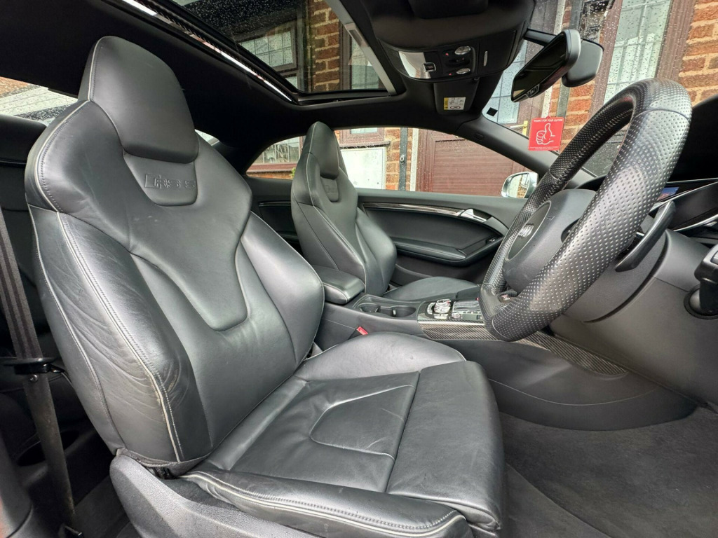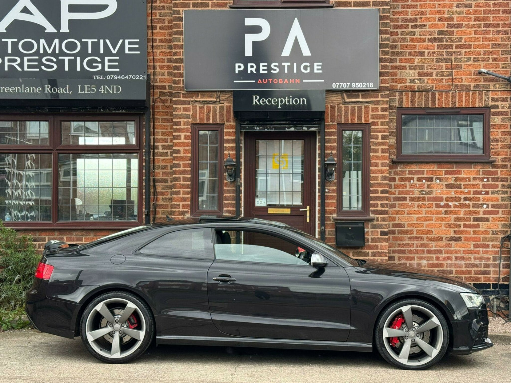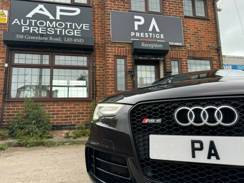 Prestige Autobahn are proud to present a Audi RS5 4.2 FSI V8 S Tronic Quattro. A well-cared for and maintained vehicle covering just over 94,800 Reliable miles backed by service history for your peace of mind. Factory fitted extras include, Full Leather Interior, Panoramic Electric Sunroof, Memory Seats, Rear Electric Spoiler, Bang & Olufsen Sound System, Cruise control, multi function steering wheel, bluetooth telephone, bt audio, aux port and usb port. The car is fully stock with no modifications. The car drives absolutely superb. Any inspections & test drives are most welcome. All dealer facilities are available. We can arrange finance, low cost delivery, extended warranties and accept any car as part exchange for a hassle free purchase. At prestige autobahn we are confident in providing first class customer service. We provide you with as much information about our vehicles as possible. Payments can be made via cash, bank transfer or debit card. Please call us on 07707 950218 or email us at prestigeautobahngmail.Com for any questions or enquiries. Thank you. ng and olufsen sound system, audi hill hold assist, 20in alloy wheels - 5-arm rotor design, brake calipers - red, electric panoramic sunroof - tilt, door mirrors - heated-electrically adjustable-folding-auto-dimming, privacy glass, leather-alcantara - super sports seats - black, 12v power socket, 19in alloy wheels - 10-spoke design, 6.5in display screen, abs - anti-lock braking system, ami - audi music interface, adaptive lights, airbags - driver, airbags - front passenger, airbags - front side, airbags - sideguard curtain, alarm - thatcham category 1, aluminium-effect door mirror housings, anti theft locking wheel bolts, audi drive select, audi parking system plus, audi sound system, auto-dimming rear-view mirror, automatic headlight range adjustment, automatic wipers with rain sensor, car jack, climate control - electronic 3-zone, colour drivers information system - dis, cruise control, dab digital radio, door mirrors - electrically adjustable and heated, esp - electronic stability programme, electric windows - front, electromechanical parking brake, electromechanical power steering, first aid kit, front centre armrest, fully automatic hood, headlights - bi-xenon plus, headlights - light sensor, headlights washers, high performance braking system - rs models, isofix child seat preparation front and rear, inlays - carbon, interior light package, led daytime running lights, leather armrests, mobile telephone preparation - bluetooth interface, parking sensors - front, quattro sports differential, rs body styling, rs instrument panel, rs sports suspension, rear parking sensors, rest recommendation system, satellite navigation system - hdd based, seats - super sports with electric adjustment and lumbar support - rs, spoiler - speed activated, steering wheel - 3-spoke multifunction flat bottomed, through-load facility with ski-snowboard bag, tool kit, tyre mobility system, tyre pressure monitoring system, warning triangle
