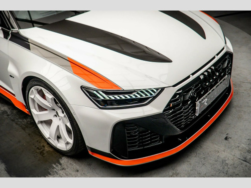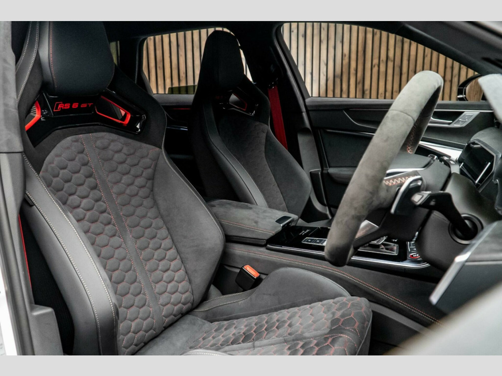 This 2025 Audi RS6 Avant TFSI V8 GT represents the pinnacle of performance estate cars, offering an exhilarating driving experience. Powered by a potent 4.0 litre V8 petrol engine and featuring Audi's renowned four wheel drive system, this Euro 6 compliant model delivers exceptional power and control. Inside, you'll find a sophisticated cabin equipped with an RS flat bottomed Alcantara multifunction steering wheel, complete with aluminium shift paddles and heating for added comfort. Connectivity is seamless thanks to the Bluetooth interface and the Audi Smartphone Interface, which includes wireless Apple CarPlay, Android Auto, and Amazon Alexa integration. For effortless parking and manoeuvring, the Surround View Cameras provide a 360 degree view, complemented by the Tour Pack which includes adaptive cruise control. Furthermore, the generous boot space ensures practicality for all your needs.The performance of this RS6 Avant is truly remarkable, achieving 0 to 62 miles per hour in a mere 3.3 seconds, a figure that clearly sets it apart from many other vehicles in its class. This rapid acceleration, combined with the advanced technology and luxurious appointments, showcases how this Audi RS6 Avant TFSI V8 GT offers a superior blend of speed, comfort, and everyday usability.. 22in Alloy Wheels - 6 Arm - White, ABS - Anti-Lock Braking System, AMI - Audi Music Interface, Air Quality Pack, Ambient Lighting Package Plus, Anti-Theft Alarm with Tow-Away Protection, Audi Connect Navigation and Infotainment, Audi Connect Safety and Service - e-call, Audi Connect with Amazon Alexa Integration, Audi Drive Select, Audi Infotainment with MMI Navigation and MMI Touch, Audi Phone Box Light, Audi Pre City, Audi Pre-Sense Basic, Audi Smartphone Interface including Application Store - Includes Wireless Apple CarPlay - Android Auto and Amazon Alexa Intergration, Audi Virtual Cockpit Plus with RS Specific Design and 12.3in Display, Auto Dimming and Frameless Rear View Mirror, Bang and Olufsen Premium Sound System with 3D Sound, Black Audi Rings and Black RS Badges, Black Dinamica Headlining, Bluetooth Interface, Camera Based Traffic Sign Recognition, Carbon Bonnet with Visible Stripes, Comfort Key with Sensor-Controlled Luggage Compartment Release with Safelock, DAB Digital Radio, Deluxe 4-Zone Automatic Climate Control, Dinamica Microfibre - Deep Black, Dinamica Microfibre Decorative Inlays - Black, Direct Tyre Pressure Monitoring System, Door Sill Inlay in Gloss Carbon, Door Sill Trims with Aluminium Inlays - Front and Rear - Illuminated - Front with RS6 GT Logo, Dynamic All-Wheel Steering, Electric Steering Column Adjustment, Electric Windows - Front and Rear, Electromechanical Parking Brake, Entry LED with RS Performance Projection - Front and Rear - Audi Beam, Extended Pedestrian Protection Measures, Exterior Mirrors in Gloss Carbon - Electrically Folding - Adjustable and Heated - Integrated LED Side Indicators and Kerb View Function for Passenger Side, First Aid Kit and Warning Triangle, Front Centre Armrest, Front Floor Mats with Coloured RS Logo and Rear Floor Mats, HD Matrix LED Headlamps with Audi Laser Light with Dynamic Light Design and Dynamic Turn Signal, Head-Up Display, Heated Front Seats, LED Rear Combination Lamps with Dynamic Light Design and Dynamic Turn Signal, Lane Departure Warning, Operating Buttons in Gloss Black, Park Assist Pack with Park Assist Plus, Pedals and Footrest - Stainless Steel, Performance Tyres, Power Operated Tailgate, Privacy Glass, RS Ceramic Brakes with Red Calipers, RS Flat Bottomed Alcantara Multifunction Steering Wheel with Aluminium Shift Paddles, RS Sport Exhaust System, RS6 GT Adjustable Coilover Suspension, RS6 GT Badging in the Radiator Grille and at the Rear in Heritage Design, RS6 GT Livery - Heritage Livery or Ghost Wrapping, RS6 GT Rear Spoiler, Seat Belts in Crimson Red, Side Airbags - Front and Rear including Head Airbag System and Illuminated Belt Buckles, Side Airbags and Front and Rear -Including Head- Airbag system, Specific Front Bumper with Differentiating Features in Gloss Black, Storage Package, Surround View Cameras, Tool Kit, Tour Pack, Tyre Repair Kit, Upper and Lower Interior Elements with Controls in Alcantara-Leather, Voice Control System, quattro with Sports Differential.