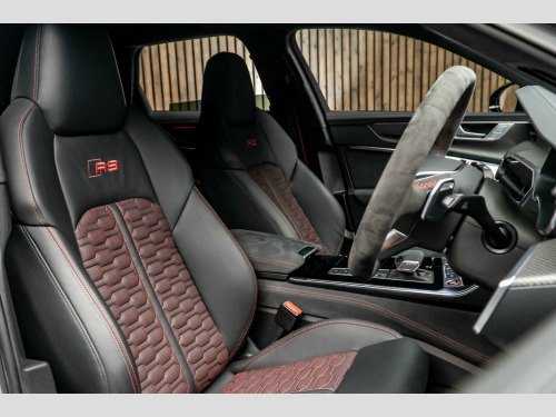This 2023 Audi RS6 Avant TFSI V8 Performance Carbon Vorsprung is a remarkable example, having had only one owner since new. This exceptional estate car boasts a powerful 4.0 litre petrol engine, delivering exhilarating performance through its four wheel drive system. As a Euro 6 compliant vehicle, it meets stringent emission standards. Inside, you'll find a luxurious cabin featuring a panoramic glass sunroof that can be opened, a Bluetooth interface for seamless connectivity, and surround view cameras for effortless parking assistance. Comfort is paramount with electrically adjustable front seats that include a memory function for the driver, and both front and rear seats are heated, ensuring a pleasant journey in all conditions.The RS6 Avant Performance Carbon Vorsprung truly stands out with its impressive acceleration, achieving 0-62mph in a mere 3.4 seconds, a testament to its superior engineering compared to other vehicles in its class. This performance is complemented by its generous boot space, making it as practical as it is powerful. The combination of its advanced technology, luxurious appointments, and dynamic capabilities makes this Audi RS6 Avant a truly desirable and capable estate car.. 2 USB-C Ports with Charging Functionality in the Rear, 22in Alloy Wheels - 5 Y-Spoke - Matt Black, 3-Spoke Design Multifunction Steering Wheel in Alcantara Leather, 4-Way Electric Lumbar Support, ABS - Anti-Lock Braking System, AMI - Audi Music Interface, Air Quality Pack, Airbags - Driver, Airbags - Front Passenger, Ambient Lighting Package Plus, Anti-Theft Alarm with Tow-Away Protection, Audi Connect Navigation and Infotainment, Audi Connect Safety and Service - e-call, Audi Connect with Amazon Alexa Integration, Audi Drive Select with Two Configurable RS Modes, Audi Pre-Sense Basic, Audi Pre-Sense Front, Audi Smartphone Interface, Audi Virtual Cockpit with RS Specific Design and 12.3in Display, Auto Dimming and Frameless Rear View Mirror, Bang and Olufsen Premium Sound System with 3D Sound, Black Dinamica Headlining, Black Roof Rails, Bluetooth Interface, Camera Based Traffic Sign Recognition, City Assist Pack, Controls in Alcantara - Black with Contrasting Stitching in Grey, DAB Digital Radio, Deluxe 4-Zone Automatic Climate Control, Direct Tyre Pressure Monitoring System, Door Armrest in Fine Nappa Leather - Black with Contrasting Stitching in Grey, Door Sill Trims with Aluminium Inlays - Front and Rear - Illuminated - Front with RS6 Logo, Dynamic All-Wheel Steering, Electric Steering Column Adjustment, Electric Windows - Front and Rear, Electrically Adjustable Front Seats with Memory Function for Drivers Side, Electromechanical Parking Brake, Entry LED with RS Performance Projection - Front and Rear - Audi Beam, Extended Pedestrian Protection Measures, Exterior Mirrors - Electrically Folding - Adjustable and Heated with Memory Function - Integrated LED Side Indicators and Kerb View Function for Passenger Side, First Aid Kit and Warning Triangle, Front Centre Armrest, Front and Rear Floor Mats in Black with Contrast Stitching in Grey and RS Logo at Front, Front and Rear Side Airbags with Head Airbag System, HD Matrix LED Headlamps with Audi Laser Light with Dynamic Light Design and Dynamic Turn Signal, Head-Up Display, Headlight Washers, Heated Front and Rear Seats, ISOFIX Child Seat Mounting and Top Tether - Front Passenger Airbag Deactivation, ISOFIX and Top Tether Child Seat Mountings for the Outer Rear Seats, Inlays - Carbon Twill with Blue Accent, Instrument Panel and Door Rails in Fine Nappa Leather - Black, Keyless Go, LED Rear Combination Lamps with Dynamic Light Design and Dynamic Turn Signal, Lane Departure Warning, MMI Navigation with MMI Touch, Matt Carbon Black Styling Package, Mirror Housing - Matt Carbon, Night Vision Assistant, Operating Buttons in Gloss Black, Panoramic Glass Sunroof, Park Assist Pack with Park Assist Plus, Pedals and Footrest - Stainless Steel, Performance Tyres, Power Operated Tailgate, Power-Assisted Door Closure, Privacy Glass, RS Design Pack Plus - Blue, RS Rear Spoiler in Body Colour, RS Specific Bumpers - Front Bumper Air Inlets on Both Sides, RS Sport Exhaust System, RS Sports Suspension Plus with Dynamic Ride Control - DRC, RS Steel Brakes with Black Calipers, Radiator Protective Grille in Honeycomb Structure - Gloss Black with Large Front Air Inlets and Rear Diffuser in Gloss Black, Rear Side Airbags, Seat Belts in Black with Grey Edge, Seat Ventilation for Front Seats, Selector Lever Gaiter in Fine Nappa Leather - Black with Contrasting Stitching in Grey, Sides of the Centre Console in Alcantara - Black with Contrasting Stitching in Grey, Storage Package, Surround View Cameras, Top Speed Restriction Increase to 174mph, Tour Pack, Towbar Preparation, Upper and Lower Interior Elements with Controls in Alcantara-Leather, Voice Control System, Window Trims - Black, quattro with Sports Differential, Gloss Carbon Styling Pack, RS Design Pack Plus - Red, RS Steel Brakes with Brake Calipers in Red Gloss, Inlays - Carbon Twill, Mirror Housing - Gloss Carbon.