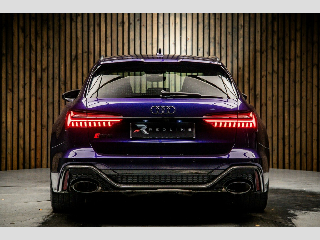 This 2024 Audi RS6 Avant TFSI V8 Performance Carbon Vorsprung is a truly exceptional example, boasting a full service history and having had only one owner from new. This striking vehicle is presented in the highly desirable Performance Carbon Vorsprung trim, featuring a potent 4.0 litre petrol engine and a sophisticated four wheel drive system, all meeting the Euro 6 emission standards. Inside, you'll find a host of premium features designed for comfort and convenience, including a heated RS flat bottomed Alcantara multifunction steering wheel with aluminium shift paddles, and heated front and rear seats.Experience unparalleled audio with the Bang and Olufsen premium sound system, complete with 3D sound. Navigating tight spaces is made effortless thanks to the surround view cameras offering a 360 degree view, enhancing the already impressive parking assistance. Stay seamlessly connected with the Audi Smartphone Interface, which includes wireless Apple CarPlay, Android Auto, and Amazon Alexa integration. This RS6 Avant also offers generous boot space, making it as practical as it is powerful. Its remarkable acceleration, capable of 0-62mph in just 3.4 seconds, clearly sets it apart from other vehicles in its class, demonstrating its superior performance capabilities.. 2 USB-C Ports with Charging Functionality in the Rear, 22in Alloy Wheels - 5 Y-Spoke - Matt Black, 4-Way Electric Lumbar Support, ABS - Anti-Lock Braking System, AMI - Audi Music Interface, Air Quality Pack, Ambient Lighting Package Plus, Anti-Theft Alarm with Tow-Away Protection, Audi Connect Navigation and Infotainment, Audi Connect Safety and Service - e-call, Audi Connect with Amazon Alexa Integration, Audi Drive Select with Two Configurable RS Modes, Audi Phone Box Light, Audi Pre-Sense Basic, Audi Pre-Sense Front, Audi Smartphone Interface including Application Store - Includes Wireless Apple CarPlay - Android Auto and Amazon Alexa Intergration, Audi Virtual Cockpit Plus with RS Specific Design and 12.3in Display, Auto Dimming and Frameless Rear View Mirror, Bang and Olufsen Premium Sound System with 3D Sound, Black Dinamica Headlining, Black Roof Rails, Bluetooth Interface, Camera Based Traffic Sign Recognition, City Assist Pack, DAB Digital Radio, Deluxe 4-Zone Automatic Climate Control, Direct Tyre Pressure Monitoring System, Door Sill Trims with Aluminium Inlays - Front and Rear - Illuminated - Front with RS6 Logo, Dynamic All-Wheel Steering, Electric Steering Column Adjustment, Electric Windows - Front and Rear, Electrically Adjustable Front Seats with Memory Function for Drivers Side, Electromechanical Parking Brake, Entry LED with RS Performance Projection - Front and Rear - Audi Beam, Extended Pedestrian Protection Measures, Exterior Mirrors - Electrically Folding - Adjustable and Heated with Memory Function - Integrated LED Side Indicators and Kerb View Function for Passenger Side, First Aid Kit and Warning Triangle, Front Centre Armrest, Front Floor Mats with Coloured RS Logo and Rear Floor Mats, HD Matrix LED Headlamps with Audi Laser Light with Dynamic Light Design and Dynamic Turn Signal, Head-Up Display, Headlight Washers, Heated Front and Rear Seats, ISOFIX Child Seat Mounting and Top Tether - Front Passenger Airbag Deactivation, ISOFIX and Top Tether Child Seat Mountings for the Outer Rear Seats, Inlays - Carbon Twill with Blue Accent, Keyless Go, LED Rear Combination Lamps with Dynamic Light Design and Dynamic Turn Signal, Lane Departure Warning, MMI Navigation with MMI Touch, Matt Carbon Black Styling Package, Mirror Housing - Matt Carbon, Night Vision Assistant, Operating Buttons in Gloss Black, Panoramic Glass Sunroof, Park Assist Pack with Park Assist Plus, Pedals and Footrest - Stainless Steel, Performance Tyres, Power Operated Tailgate, Power-Assisted Door Closure, Privacy Glass, RS Design Pack Plus - Blue, RS Flat Bottomed Alcantara Multifunction Steering Wheel with Aluminium Shift Paddles, RS Rear Spoiler in Body Colour, RS Specific Bumpers - Front Bumper Air Inlets on Both Sides, RS Sport Exhaust System, RS Sports Suspension Plus with Dynamic Ride Control - DRC, RS Steel Brakes with Black Calipers, Radiator Protective Grille in Honeycomb Structure - Gloss Black with Large Front Air Inlets and Rear Diffuser in Gloss Black, Seat Ventilation for Front Seats, Side Airbags - Front and Rear including Head Airbag System and Illuminated Belt Buckles, Side Airbags and Front and Rear -Including Head- Airbag system, Storage Package, Surround View Cameras, Top Speed Restriction Increase to 174mph, Tour Pack, Towbar Preparation, Upper and Lower Interior Elements with Controls in Alcantara-Leather, Voice Control System, Window Trims - Black, quattro with Sports Differential, Gloss Carbon Styling Pack, RS Design Pack Plus - Red, RS Dynamic Pack Plus, 22in Alloy Wheels - 5 Y-Spoke - Black Gloss Turned Finish, RS Ceramic Brakes -Red Calipers, Inlays - Carbon Twill, Mirror Housing - Gloss Carbon. Full service history