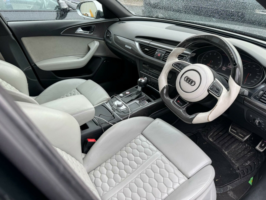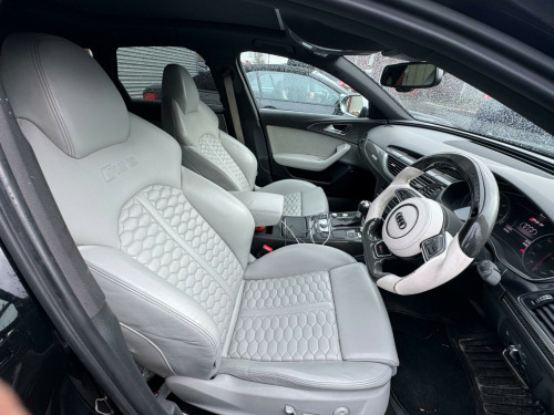 *PLEASE NOTE - ALL VIEWINGS ARE SUBJECT TO A 1 HOUR PRE ARRANGED NOTICE - OVER 200 VEHICLES IN STOCK - 07440 131 628* This 2017 Audi RS6 Avant TFSI V8 Performance is a remarkable example with exceptionally low mileage for its year, having covered just 55,000 miles. This Euro 6 compliant model boasts a powerful 4.0L petrol engine paired with Audi's renowned four wheel drive system, ensuring dynamic performance and assured handling. Inside, you'll find luxurious RS Super Sports front seats, complete with a driver's side memory function for personalised comfort, and heated front seats for those colder journeys. The Audi Parking System Plus, featuring front and rear sensors, makes manoeuvring effortless, while the light and rain sensor automatically adjusts headlights and wipers. Stay connected on the go with the integrated Bluetooth interface.The RS6 Avant is celebrated for its blend of supercar performance and everyday practicality, and this particular model excels in both areas. Its impressive acceleration, capable of reaching 0-60mph in a mere 3.6 seconds, places it firmly in the performance elite, offering a driving experience that surpasses many other vehicles in its class. Furthermore, the generous boot space ensures that this performance machine doesn't compromise on the practicality needed for family life or larger loads, making it a truly versatile choice. in alloy wheels - 5-v-spoke star design titanium-look, abs - anti-lock braking system, ami - audi music interface, asr - anti slip regulation, aux-in socket, airbags, all-led headlights with high-beam assist, aluminium-look pedals and footrest, ambient lighting package - interior and exterior, anti theft locking wheel bolts, anti-theft alarm, audi drive select, audi hill hold assist, audi matrix led headlights, audi parking system plus, bose surround sound system, bluetooth interface, colour drivers information system - dis, cruise control, deluxe 4-zone automatic climate control, door mirrors - heated-electrically adjustable-folding and auto dimming with memory function, door mirrors - titanium housing, door sill trims - aluminium with rs6 logo, door trim inserts - alcantara, edl - electronic differential lock, esc - electronic stabilisation control, electric windows - front and rear, electrically adjustable steering column, electromechanical parking brake, exhaust tailpipe - sports dual-branch oval twin in black gloss, front centre armrest, front passenger airbag deactivation switch, front and rear floor mats, headlight washers, heated front seats, high performance braking system - rs models, isofix child seat mounting, inlays - carbon with blue thread, keyless go, led rear lights - darkened, light and rain sensor, luggage compartment system, mmi navigation plus including mmi touch, mmi radio plus and dab, non-smoking package, pollen filter, power operated tailgate, power steering, privacy glass, rs adaptive air suspension, rs body styling, rs instrument dials, rs super sports front seats with drivers side memory function, remote central locking, roof rails in titanium finish, seat belt monitoring, split-folding rear seats, spoiler - front lip - titanium finish, start-stop button with red surround, steering wheel - rs 3-spoke leather multi-function contrast stitching-flat bottomed-rs badge, storage package, through-load facility, tool kit - warning triangle and car jack, tow bar bracket preparation, tracking system preparation, tyre mobility system, tyre pressure loss indicator, usb connection x2, window capping strips in titanium finish, quattro with sports differential