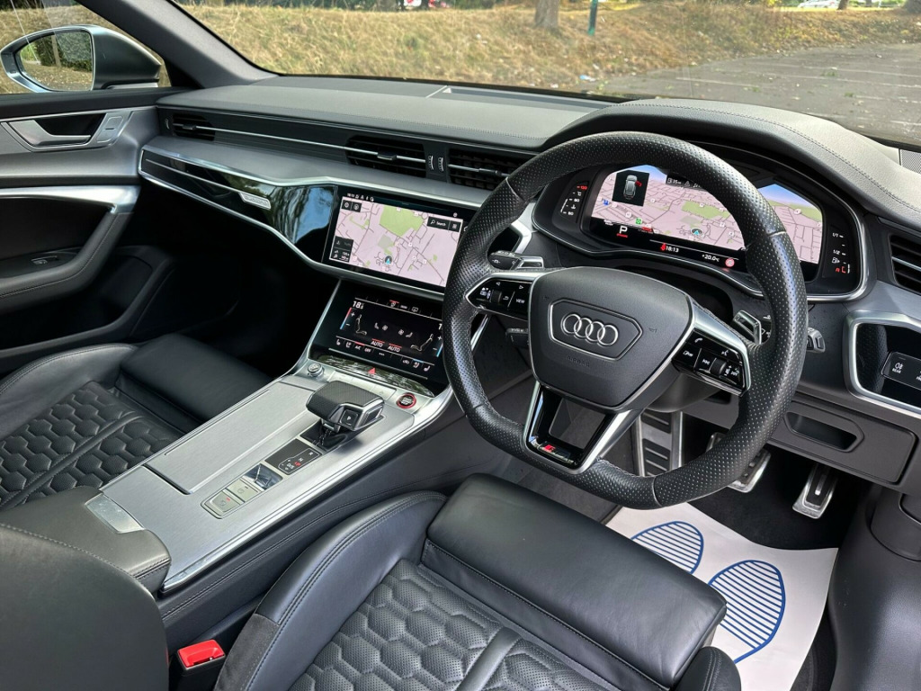 Please call for finance, 6 month warranty included, MOT June 2026, Maxton front and rear splitter, Full service history, Reverse camera, Heated and cooled seats, Wireless Apple CarPlay, Front and rear parking sensors, Satellite navigation, Bluetooth connectivity with audio playback, Rain sensing wipers, Automatic headlight activation, USB Connectivity, Dual climate control, Voice control, Cruise control, Bluetooth connectivity, Sun protection glass, Electric mirrors, Electric windows, Remote central locking, ULEZ Compliant, ULEZ Exempt, Euro 6, We are an AA Approved Dealer, This car has been checked by trained technicians and passed a multi-point inspection. All our cars come with a 12 Months free AA Membership as well as a free History Check. Finance options available with no administration fee and low interest rates, subject to status. Please ring for details. Part Exchange Welcome. Extended Warranties Available. HPI Clear, All major cards accepted, Nationwide delivery available, 5 Day drive-away insurance available; T's & C's apply in alloy wheels - galvano silver, 4-way electric lumbar support, ami - audi music interface, air quality pack, airbags - driver, airbags - front passenger, aluminium roof rails, aluminium-effect door mirror housings, anti-theft alarm with tow-away protection, audi beam, audi connect (3 year subscription from new), audi connect safety and service - e-call, audi drive select, audi phone box with wireless charging, audi pre-sense front, audi smartphone interface, audi sound system, audi virtual cockpit with rs specific design and 12.3in display, auto dimming and frameless rear view mirror, bluetooth interface, camera based traffic sign recognition, cloth headlining in black, cruise control system with speed limiter, dab digital radio, deluxe 4-zone automatic climate control, direct tyre pressure monitoring system, door mirrors - electrically folding - adjustable and heated with integrated led side indicators and kerb-view function for passenger side, dynamic all-wheel steering, electric steering column adjustment, electrically adjustable front seats with memory function for drivers side, electromechanical parking brake, extended led interior lighting package - multi-coloured, extended pedestrian protection measures, exterior styling package - aluminium matte, first aid kit and warning triangle, front centre armrest, front and rear floor mats, front and rear side airbags with head airbag system, hd matrix led headlamps with audi laser light with dynamic light design and dynamic turn signal, headlight washers, heated front seats, isofix child seat mounting and top tether - front passenger airbag deactivation, illuminated door sill trims with rs logo, inlays - matt brushed aluminium, keyless go, led rear combination lamps with dynamic light design and dynamic turn signal, lane departure warning, leatherette upper instrument panel and door shoulders, mmi navigation with mmi touch, operating buttons in gloss black, pedals and footrest - stainless steel, power operated tailgate, privacy glass, rs flat bottomed leather multifunction steering wheel, rs rear spoiler in body colour, rs specific bumpers - front bumper air inlets on both sides, rs steel brakes with black calipers, rs-air suspension - 4 corner - with electronic shock absorption control - sports version, radiator protective grille in honeycomb structure - gloss black with large front air inlets and rear diffuser in gloss black, rear-view camera, seat ventilation for front seats, storage package, towbar preparation, voice control system, wheel arch extensions - front and rear, window trims in matt aluminium, quattro with sports differential