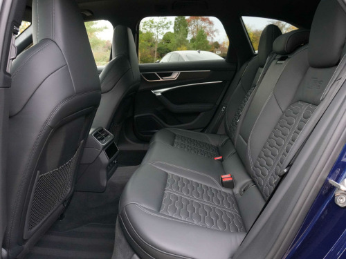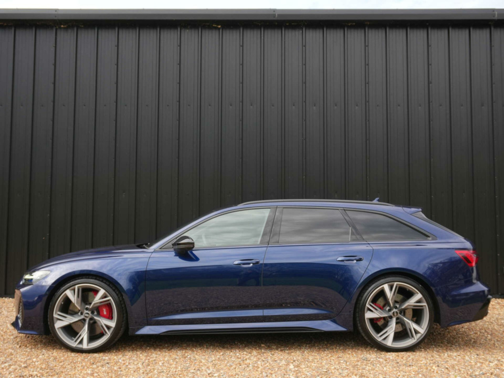 2021 Audi RS6 Avant Vorsprung TFSI Quattro23,800 miles - 2 owners from new - Full Audi main dealer service historyFinished in Navarra Blue Metallic with Black leather interior, this RS6 Vorsprung combines exceptional performance with luxury and practicality, featuring a comprehensive factory specification.Key details:- 2021 / 21 plate- 23,800 miles- Vorsprung edition- 4.0-litre twin-turbocharged V8 petrol engine (600 PS)- 8-speed Tiptronic automatic transmission- Quattro all-wheel driveVorsprung specification includes:- Panoramic glass sunroof- Electrically adjustable front sport seats with driver memory- Heated and ventilated front seats- Heated rear seats- Heated steering wheel- Head-up display- Bang & Olufsen 3D Advanced Sound System- Adaptive air suspension- RS Sports exhaust system- Matrix LED headlights with dynamic indicators- 360 camera system with Parking Assist- Adaptive cruise control with lane and side assist- Traffic sign recognition- Power tailgate- Privacy glass- 22'' alloy wheels (Vorsprung design)- Black styling pack with exterior gloss black detailing- Ambient interior lighting packageHistory & ownership:- 2 owners from new- Full Audi main dealer service historyDisclaimer: Whilst every effort has been taken to ensure accuracy of all our vehicles information, some inaccuracies may occur. It is important that you do not rely on this information but check with Boss motor company limited about any items which may affect your decision to buy this vehicle.Fuel consumption and power usage figures are for guidance only. Factors such as driving style, weather, loading, traffic conditions, all affect the rate at which fuel or power is consumed. It is likely that some journeys will result in greater fuel consumption for the same distance than other journeys. You would be wise to ensure the power range remains above 20% at all times. in alloy wheels - titanium matt gloss turned finish, 4-way electric lumbar support, ami - audi music interface, air quality pack, airbags - driver, airbags - front passenger, anti-theft alarm with tow-away protection, audi beam, audi connect safety and service - e-call, audi pre-sense front, audi smartphone interface, audi virtual cockpit with rs specific design and 12.3in display, auto dimming and frameless rear view mirror, black mirror housings, bluetooth interface, camera based traffic sign recognition, city assist pack, cloth headlining in black, comfort and sound package, dab digital radio, deluxe 4-zone automatic climate control, direct tyre pressure monitoring system, dynamic all-wheel steering, electric steering column adjustment, electrically adjustable front seats with memory function for drivers side, electromechanical parking brake, extended led interior lighting package - multi-coloured, extended pedestrian protection measures, exterior mirrors -? electrically adjustable - heated - folding and automatically-dimming, first aid kit and warning triangle, front centre armrest, front and rear floor mats, front and rear side airbags with head airbag system, gloss black styling package, hd matrix led headlamps with audi laser light with dynamic light design and dynamic turn signal, head-up display, headlight washers, heated front and rear seats, isofix child seat mounting and top tether - front passenger airbag deactivation, illuminated door sill trims with rs logo, inlays - fine grain ash - natural grey-brown, keyless go, led rear combination lamps with dynamic light design and dynamic turn signal, lane departure warning, leatherette upper instrument panel and door shoulders, mmi navigation with mmi touch, operating buttons in gloss black, panoramic glass sunroof, pedals and footrest - stainless steel, power door closure, power latching for the doors, power operated tailgate, privacy glass, rs flat bottomed leather multifunction steering wheel, rs rear spoiler in body colour, rs specific bumpers - front bumper air inlets on both sides, rs sports suspension plus with dynamic ride control - drc, rs steel brakes with black calipers, rs-air suspension - 4 corner - with electronic shock absorption control - sports version, radiator protective grille in honeycomb structure - gloss black with large front air inlets and rear diffuser in gloss black, rear sports exhaust system - black, seat ventilation for front seats, storage package, top speed restriction increase to 174mph, tour pack, towbar preparation, voice control system, wheel arch extensions - front and rear, quattro with sports differential, audi music interface in the rear, audi phone box with wireless charging, cruise control system with speed limiter, window trims in matt aluminium, audi connect (3 year subscription from new), aluminium roof rails, audi drive select, door mirrors - electrically folding - adjustable and heated with integrated led side indicators and kerb-view function for passenger side, rear-view camera, inlays - carbon twill, navarra blue, rs steel brakes with brake calipers in red gloss, valcona leather rs embossed - sport seats - black with rock grey stitching